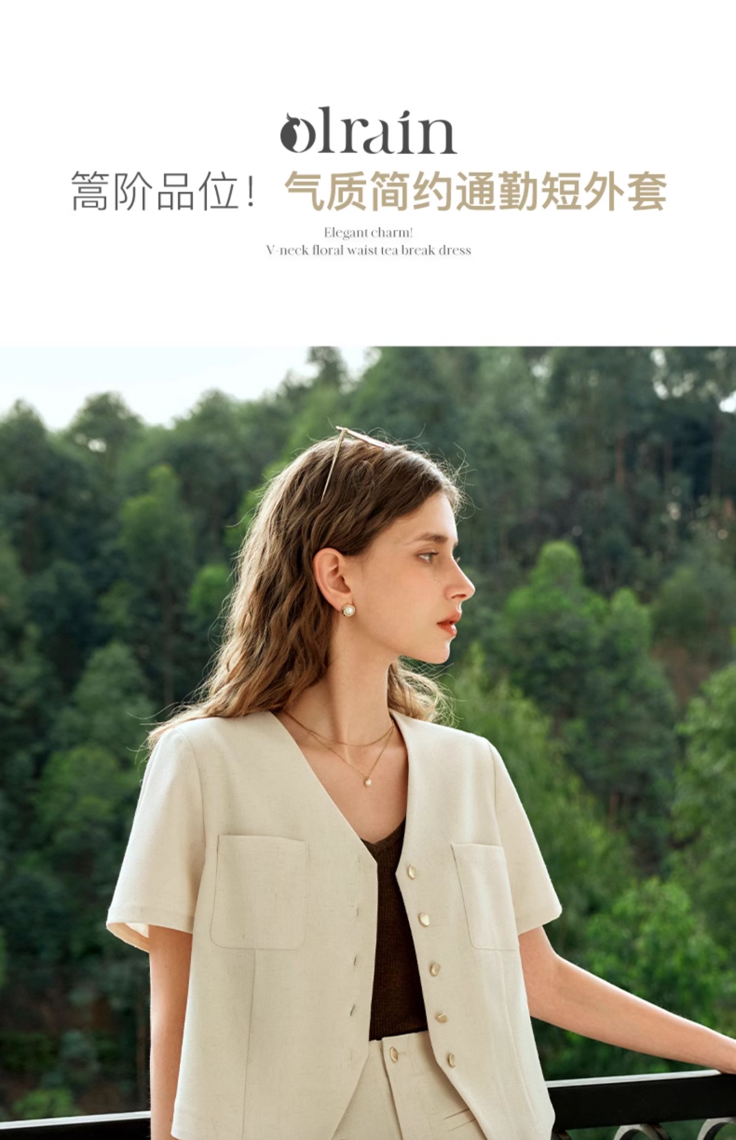 OLrain欧芮儿西装短外套女夏季2024年新款通勤简约气质短袖上衣