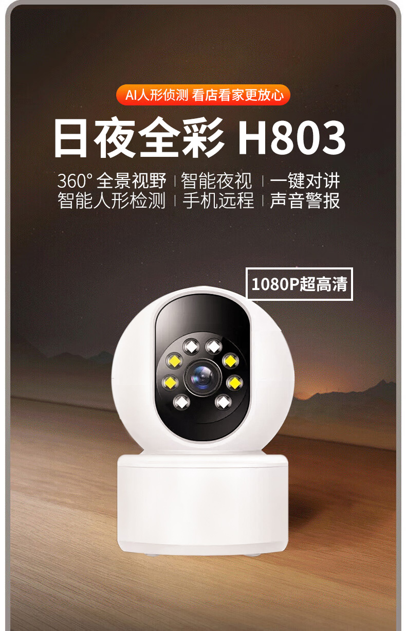1次选2套=到手299元【日夜全彩升级H803 | 语音报警 | 智能夜视】工厂直发 | 移动追踪 | 定制录像 | 360°全景 | 智能夜视 | 手机远程