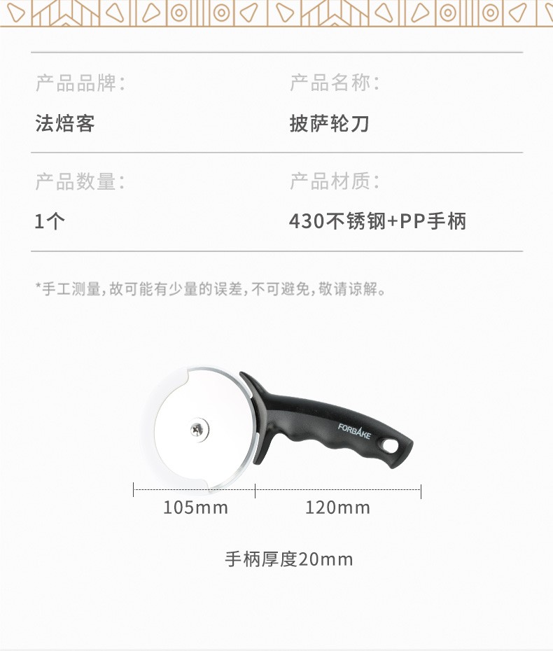 FB51402 法焙客 【黑柄】 披萨轮刀 滚刀 滚轮披萨刀