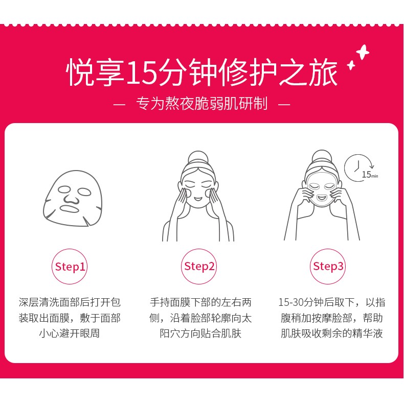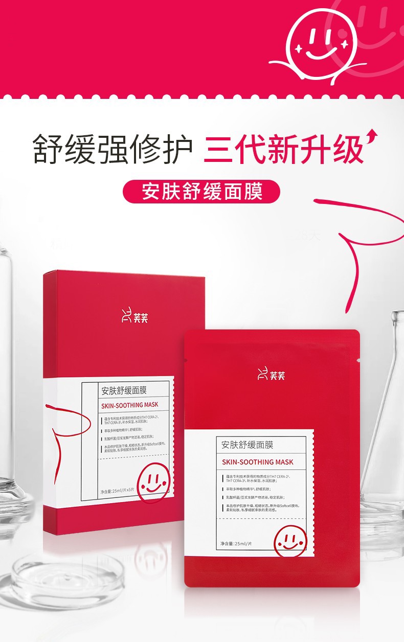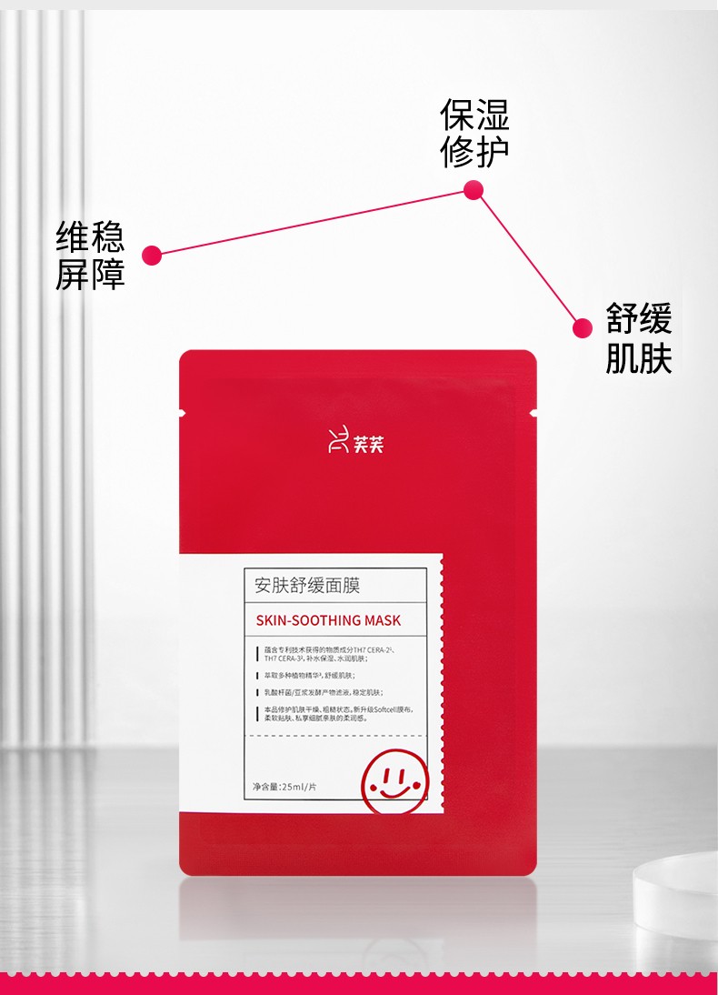 红芙芙安肤舒缓面膜5片/盒 补水保湿舒缓修护晒后敏感肌泛红干燥贴片面膜 红芙芙面膜5片/盒