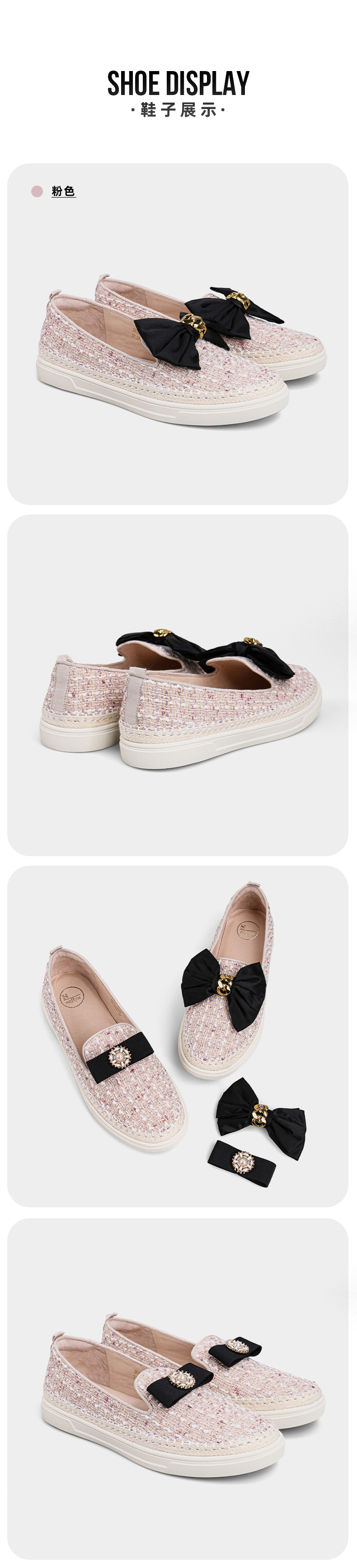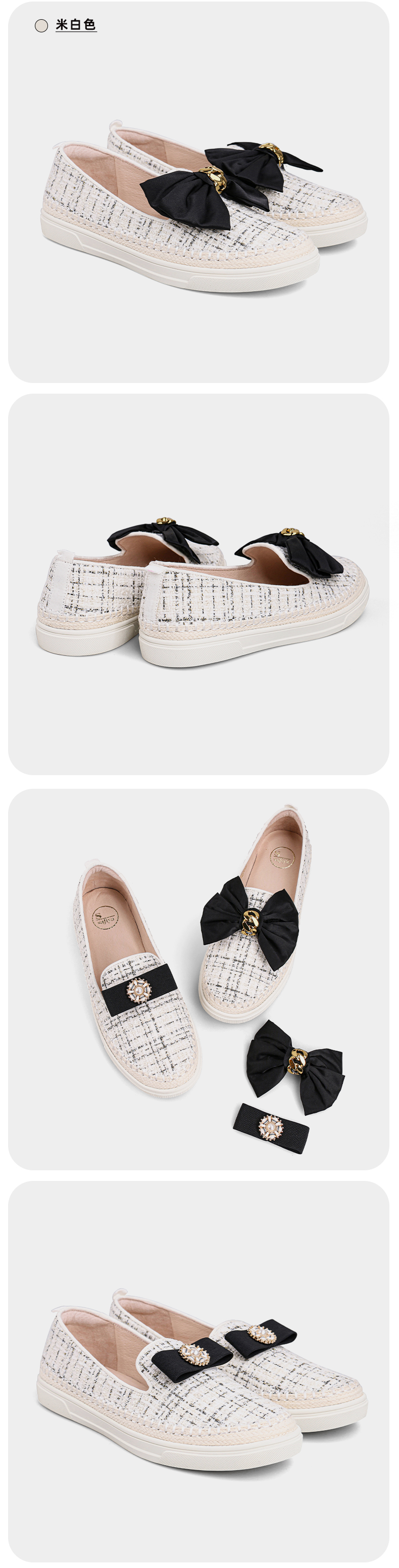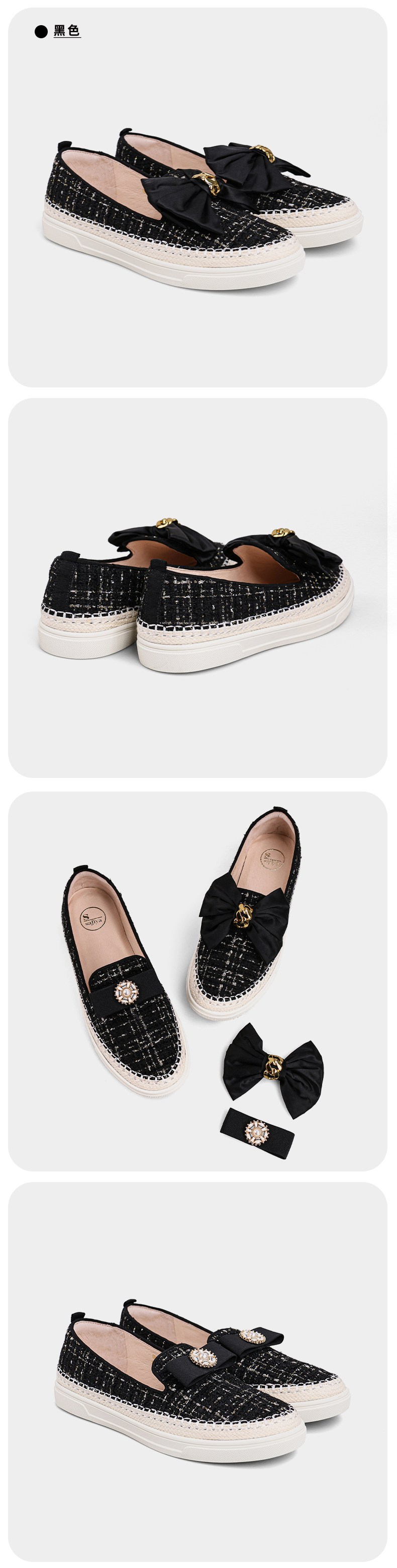 Safiya/索菲娅小香风花呢可拆卸蝴蝶结渔夫鞋2022秋舒适单鞋SF23112070