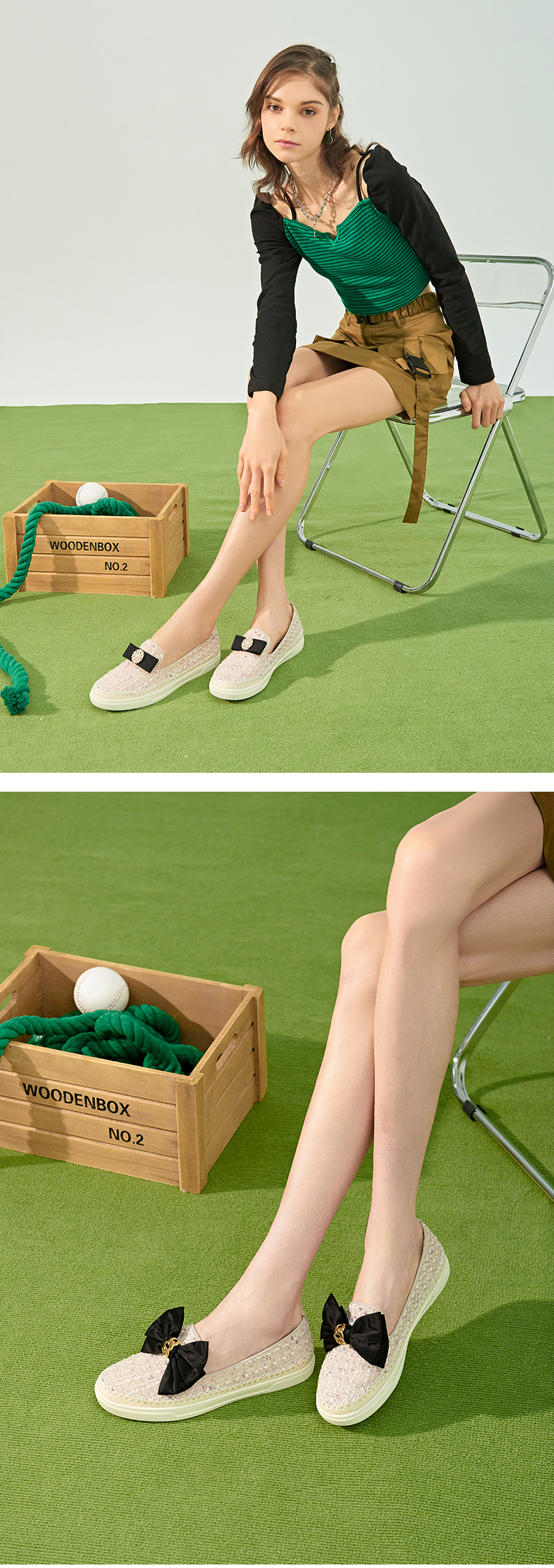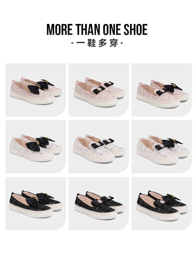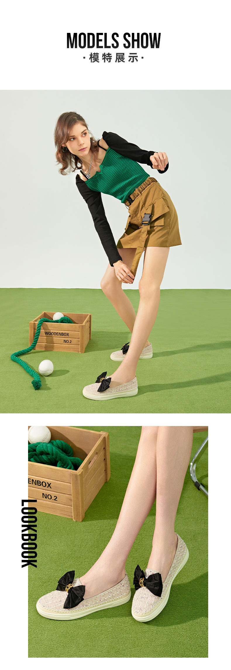 Safiya/索菲娅小香风花呢可拆卸蝴蝶结渔夫鞋2022秋舒适单鞋SF23112070