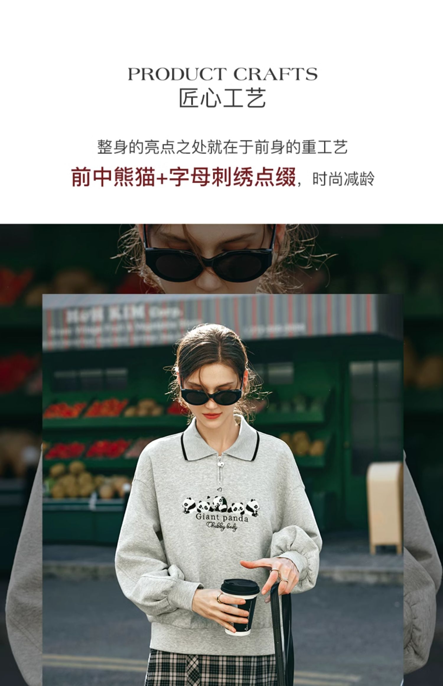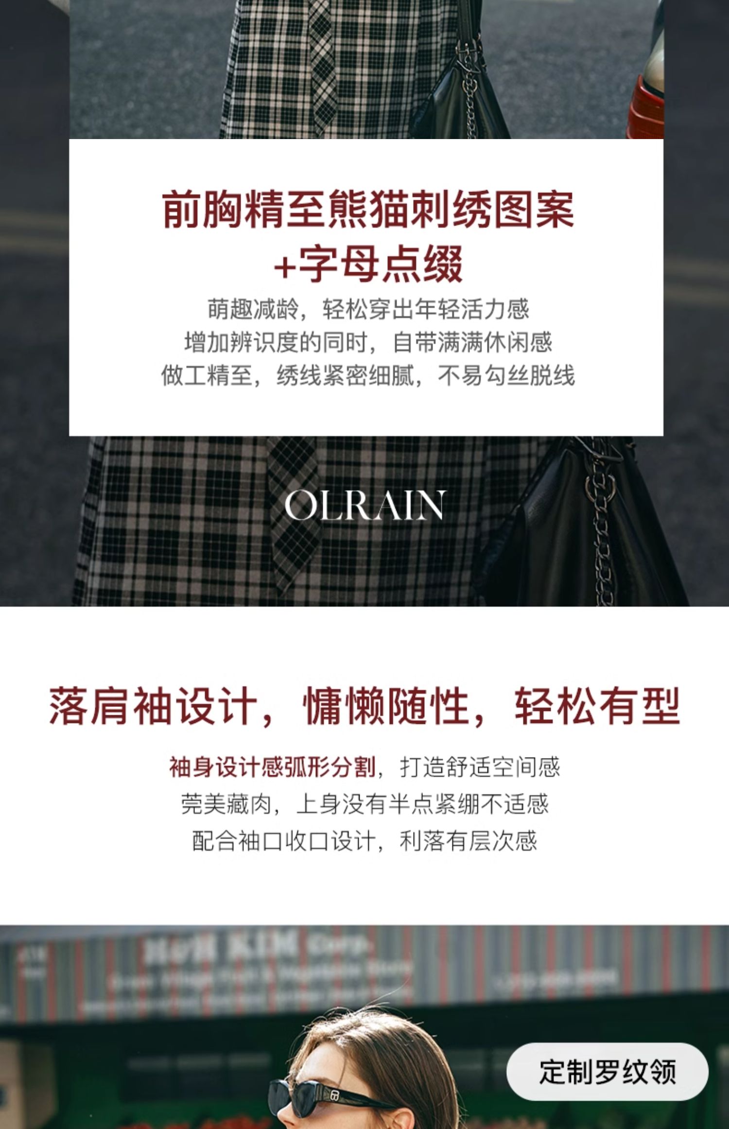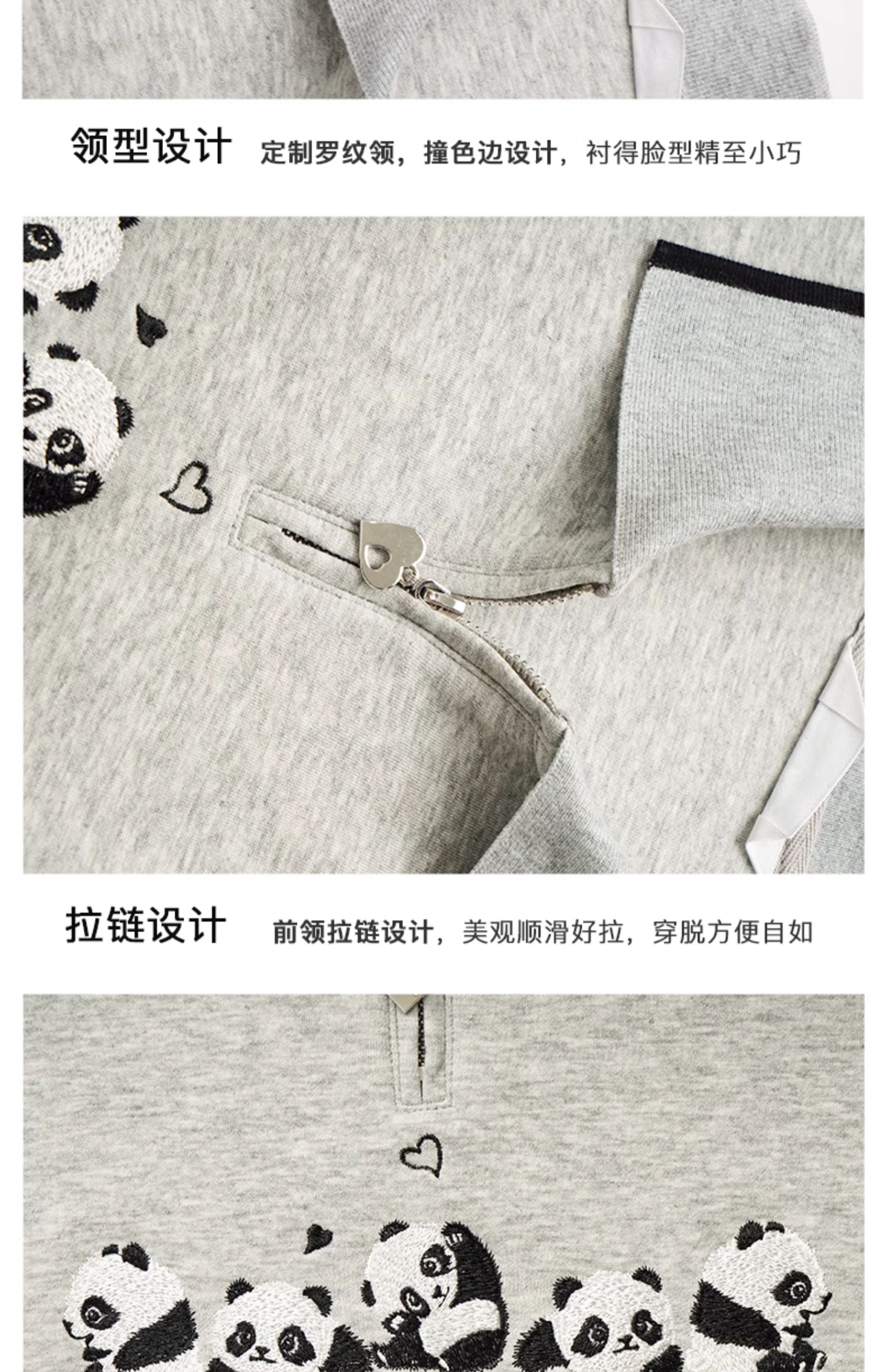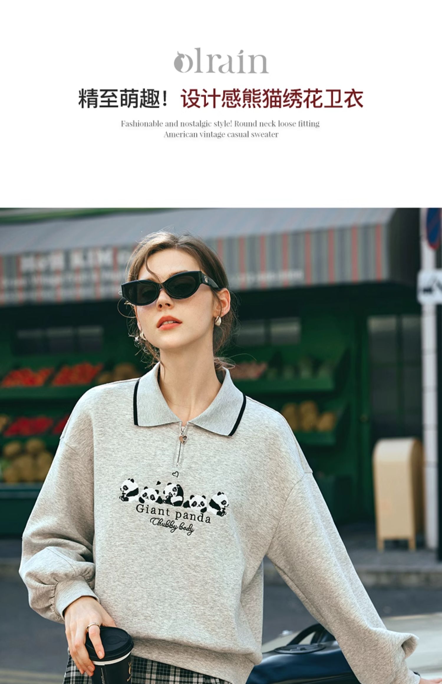 OLrain欧芮儿美式灰色卫衣女早春2024年新款设计感熊猫刺绣上衣
