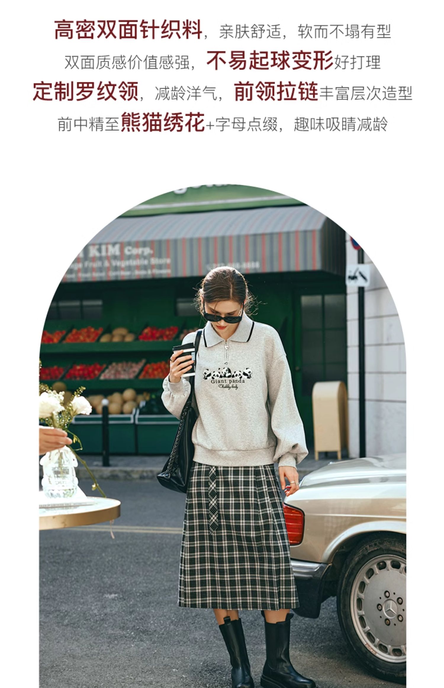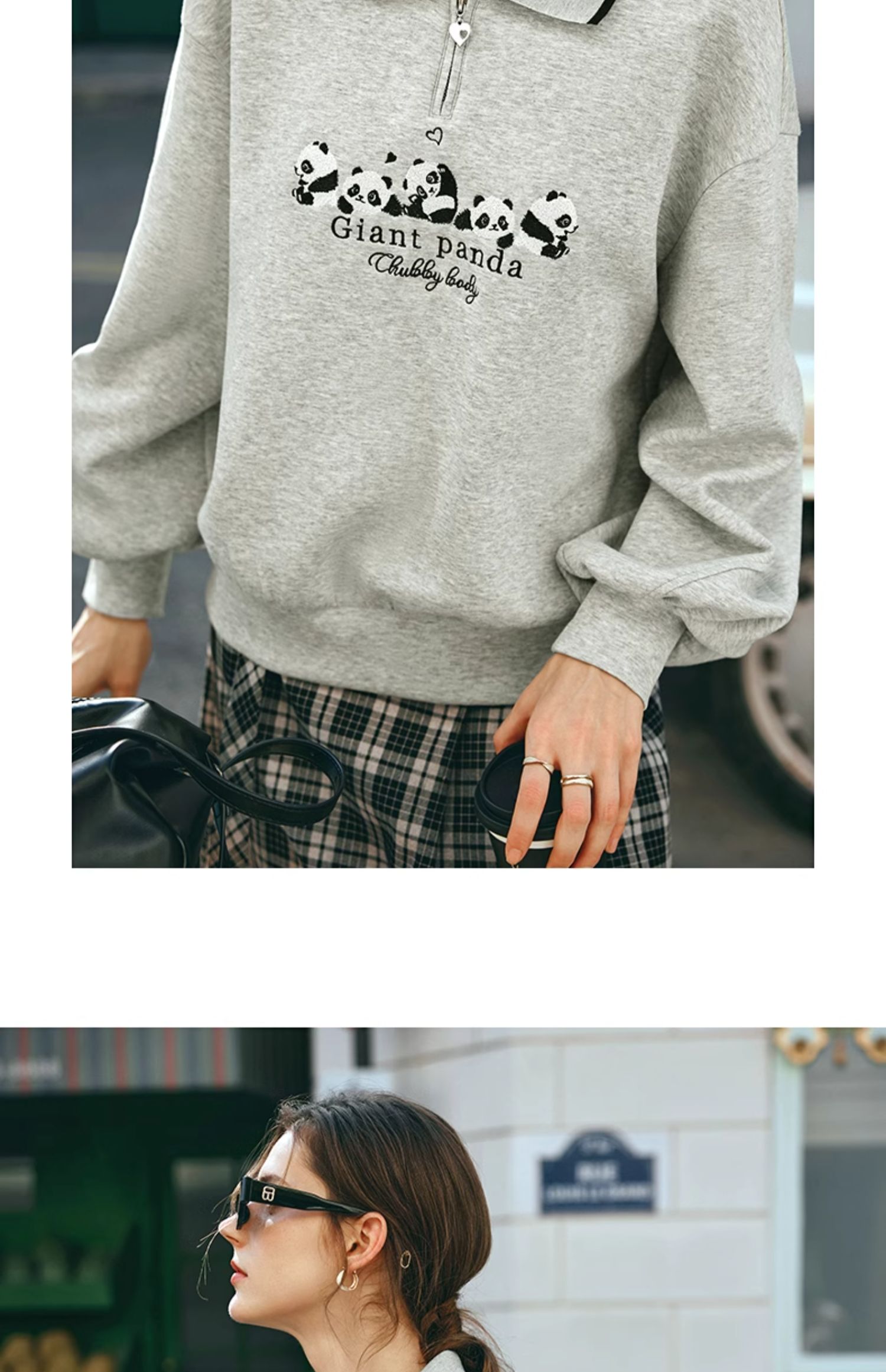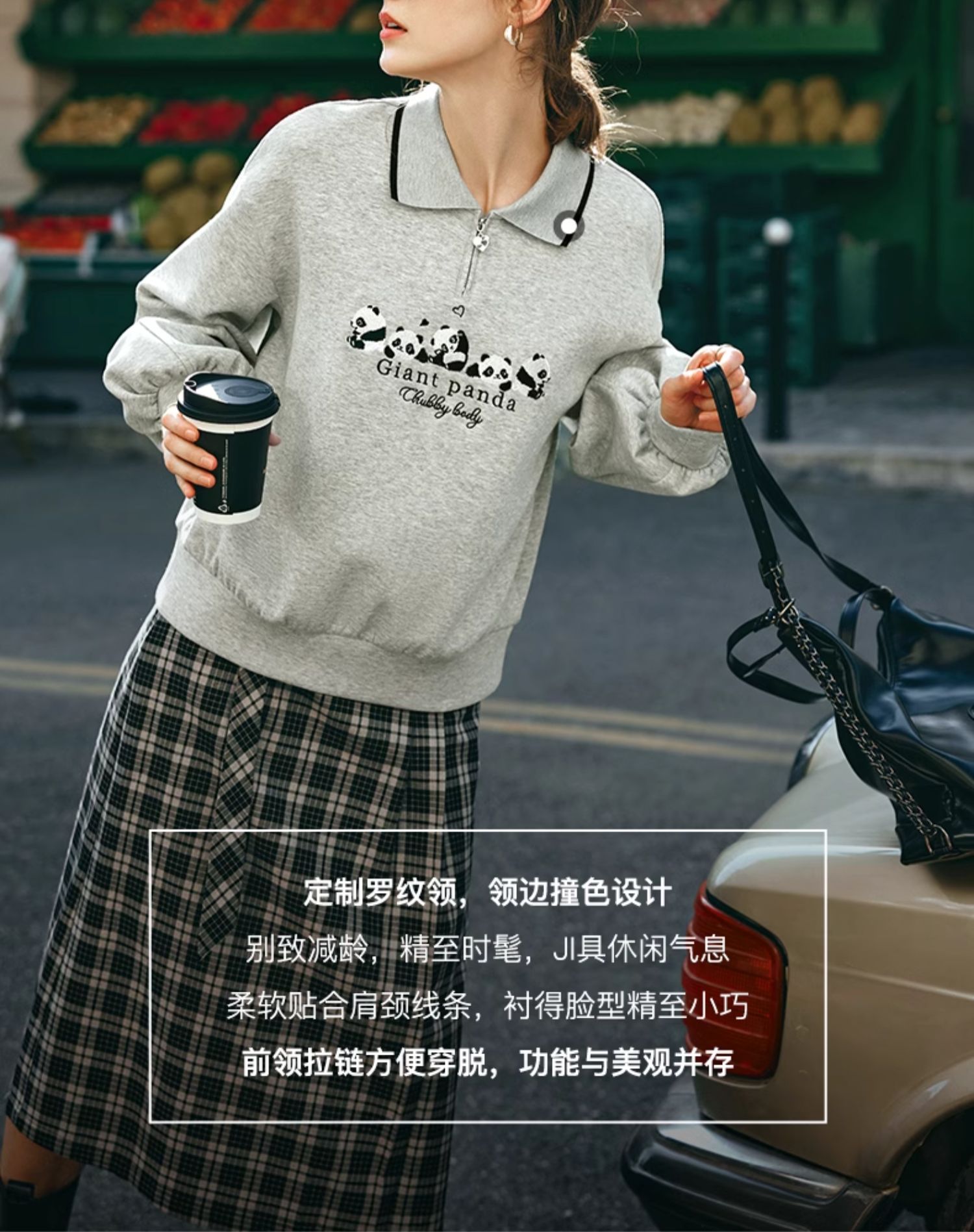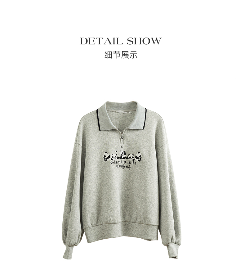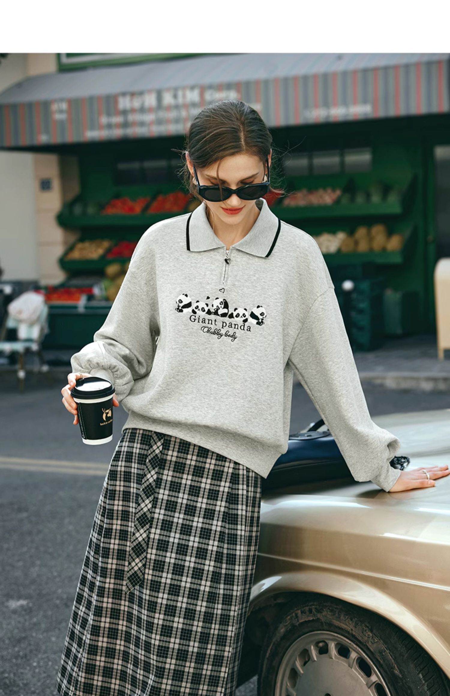 OLrain欧芮儿美式灰色卫衣女早春2024年新款设计感熊猫刺绣上衣