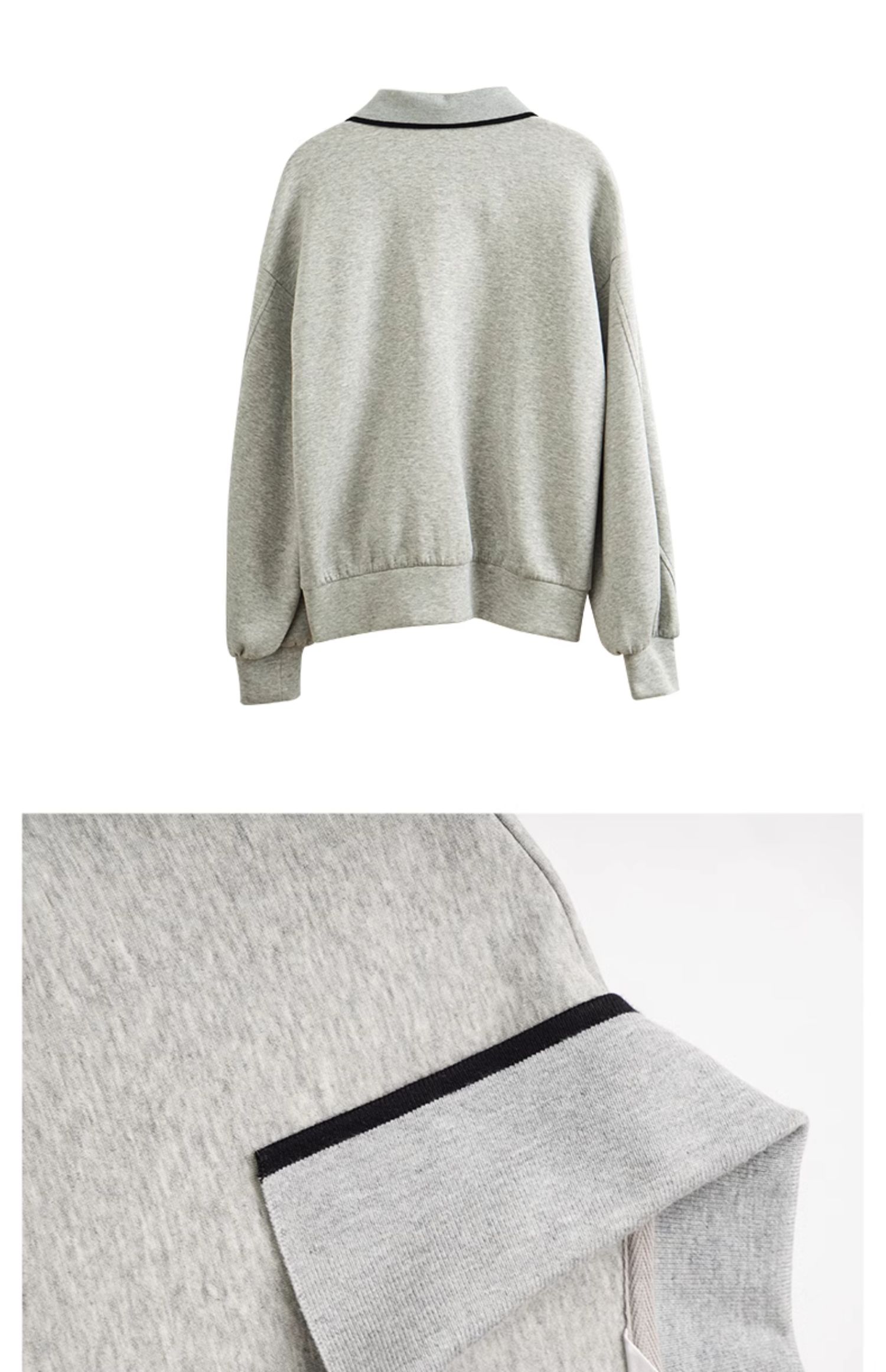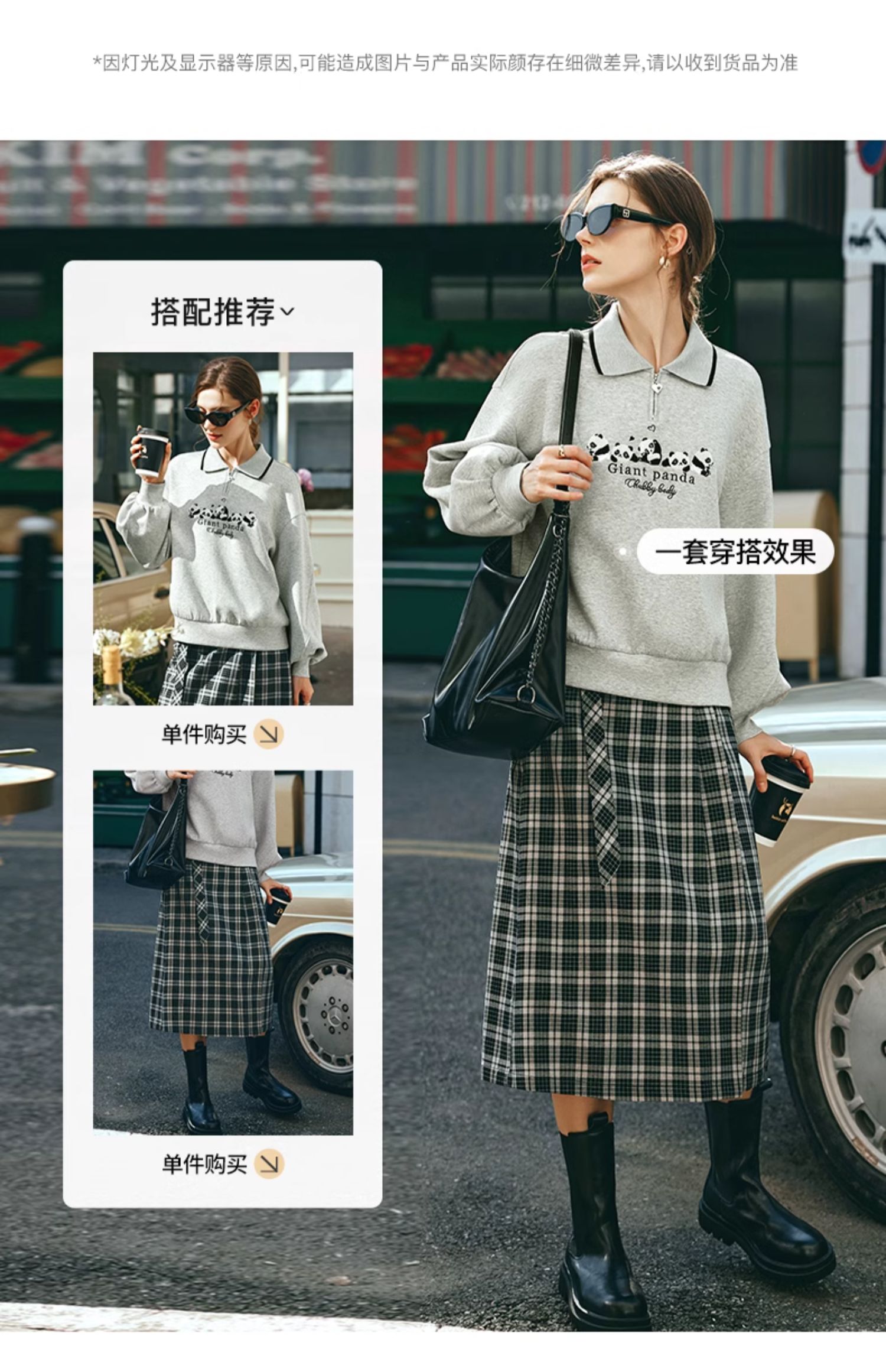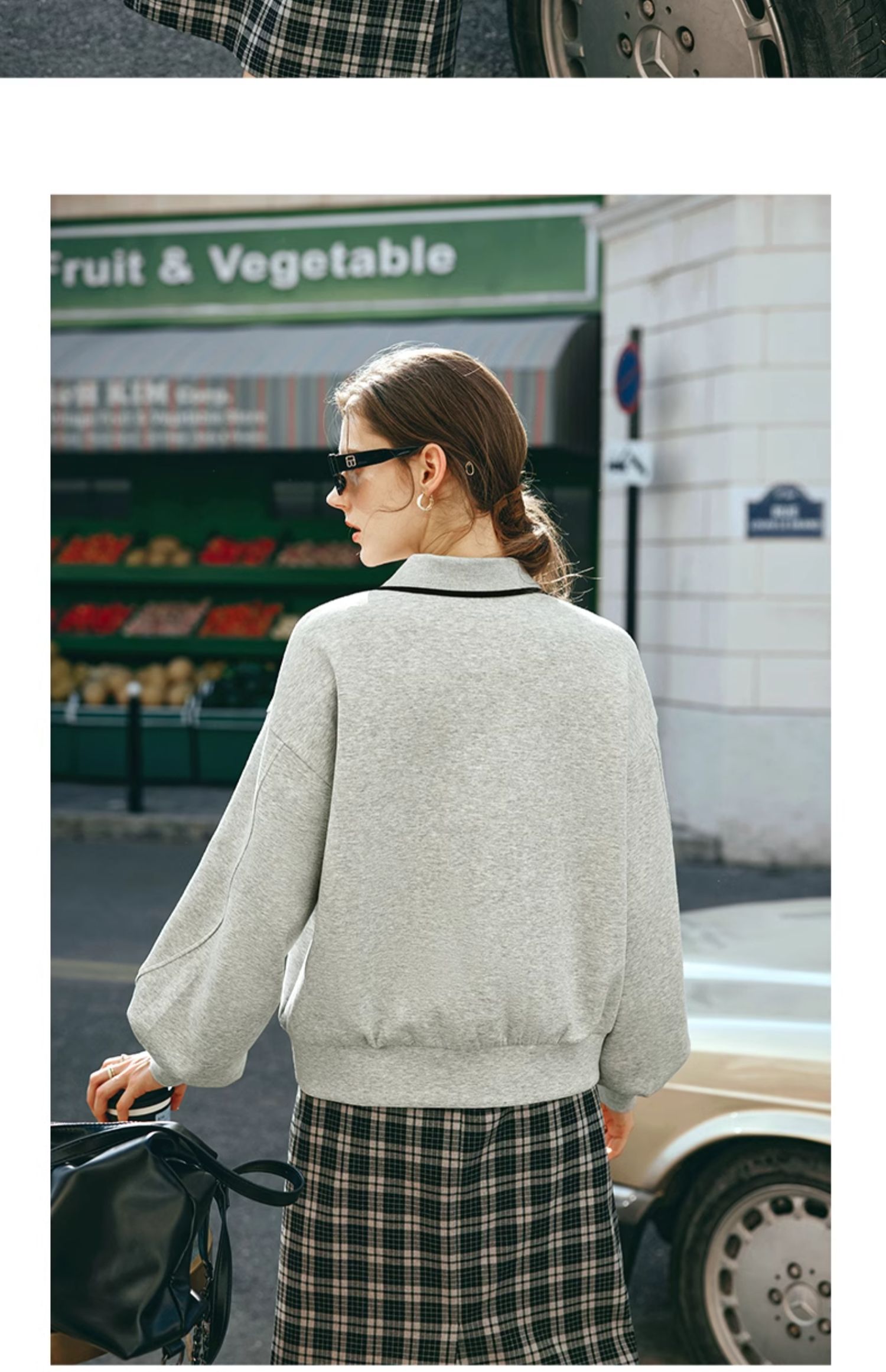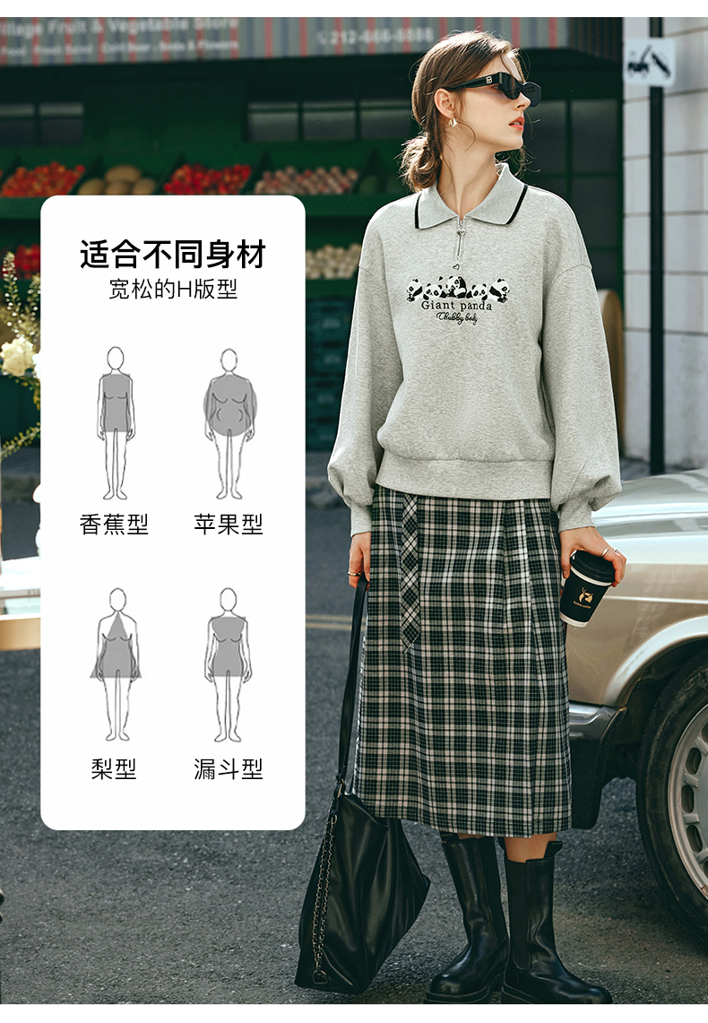 OLrain欧芮儿美式灰色卫衣女早春2024年新款设计感熊猫刺绣上衣