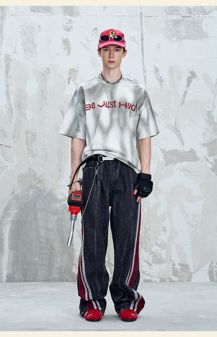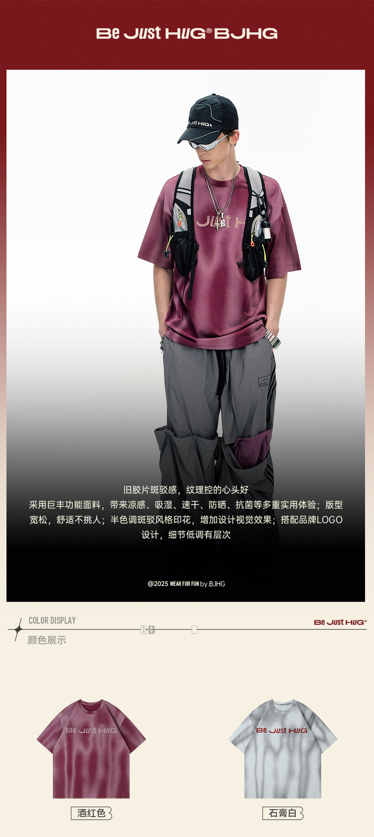 BJHG不计后果 美式休闲短袖t恤男夏2025新款复古斑驳潮流街头半袖
