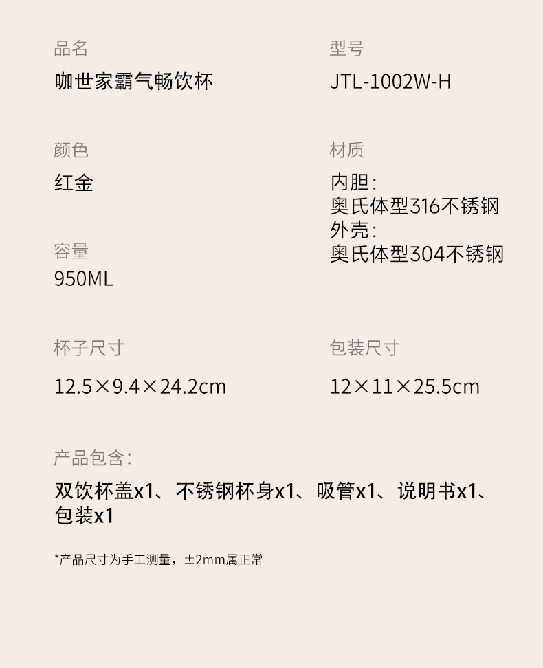 【分仓直发包邮】Costa咖世家霸气畅饮杯JTL-1002W-H