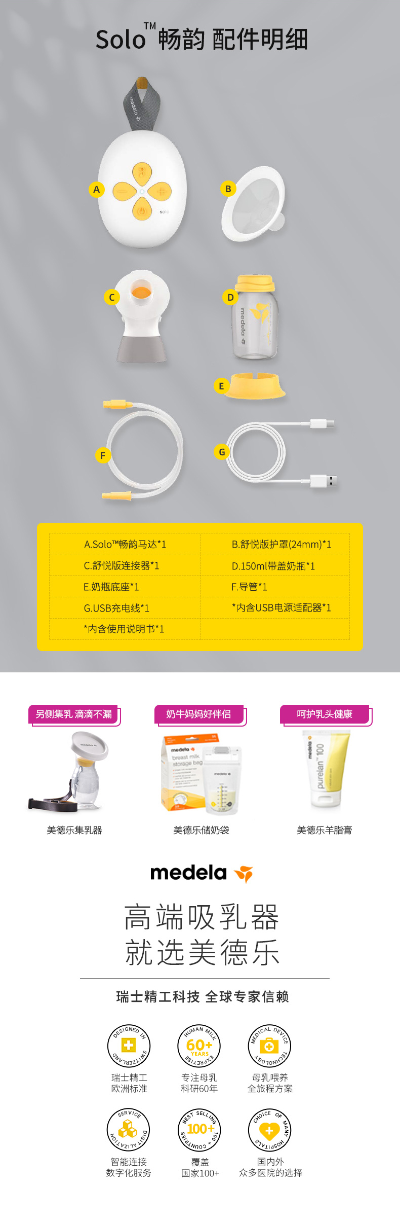 美德乐solo畅韵智能版单边电动吸奶器产后哺乳喂奶电动式全新升级MDL-75657