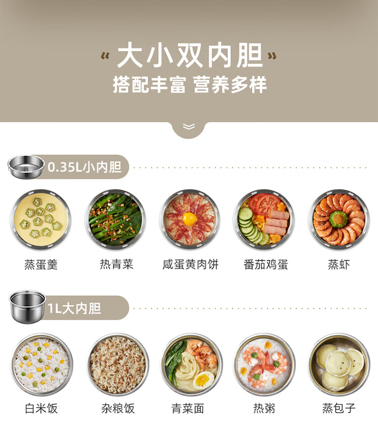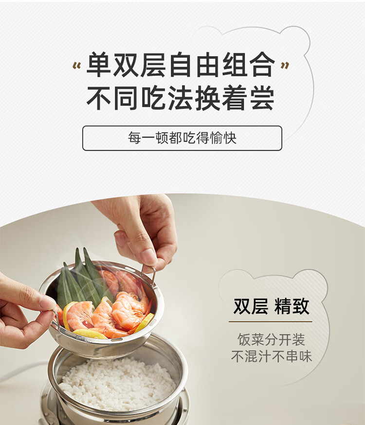 小熊(Bear) 电热饭盒 上班族热饭菜神器 电加热餐盒 办公室煮饭 48小时发货
