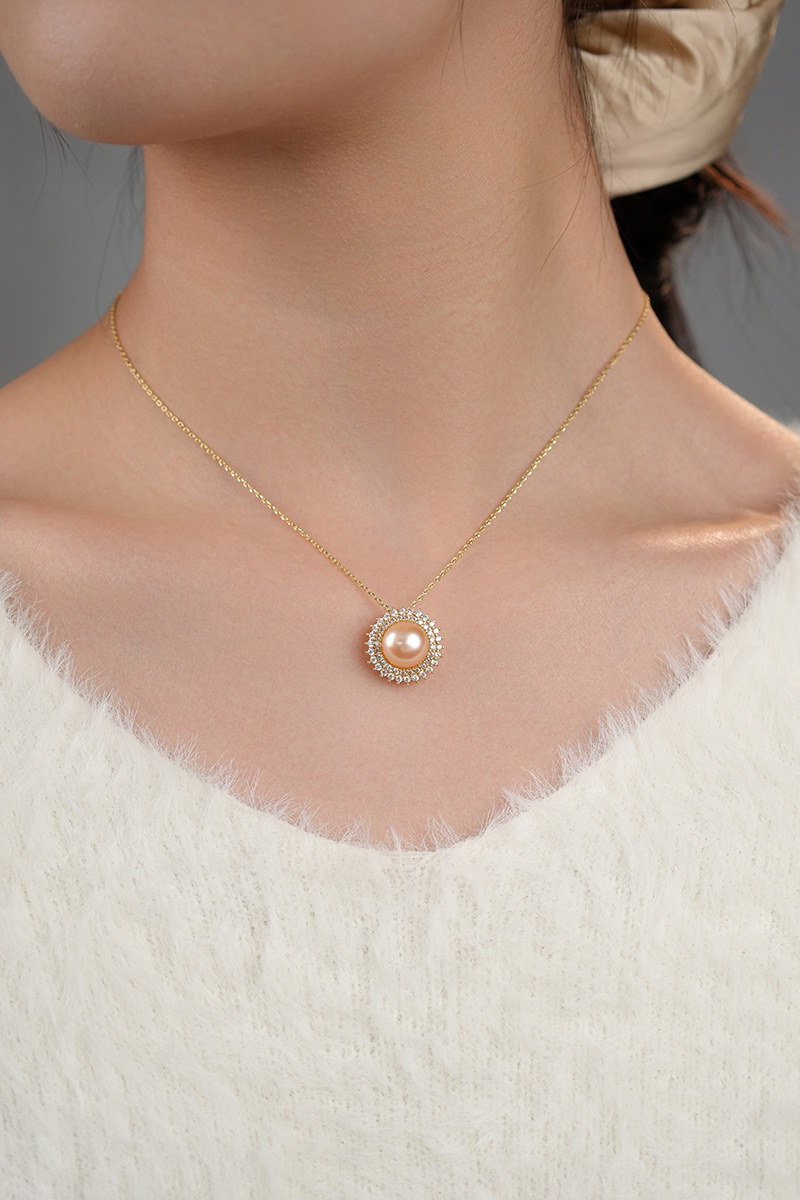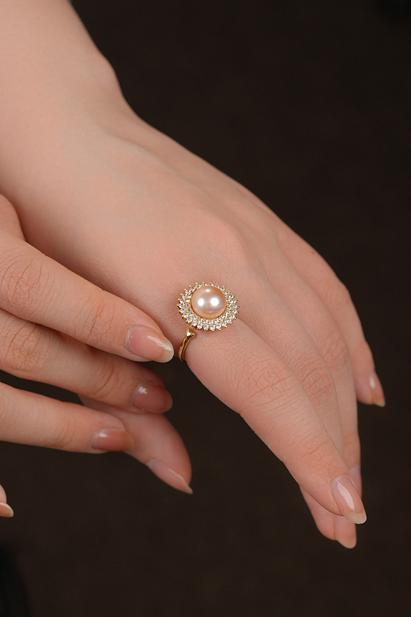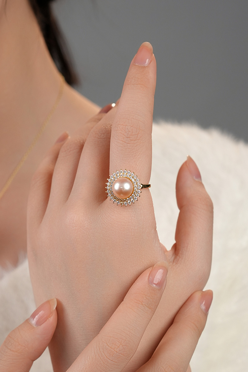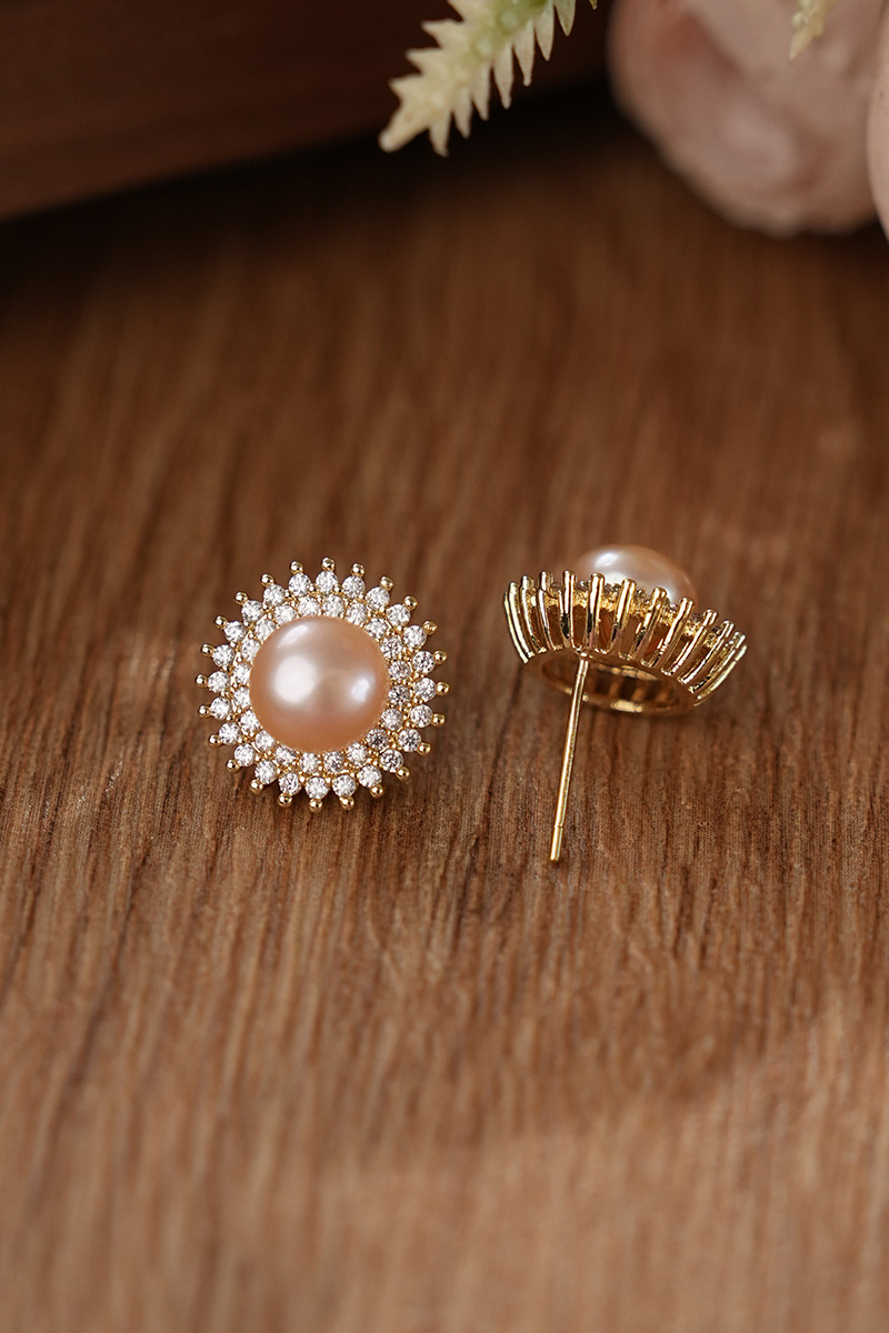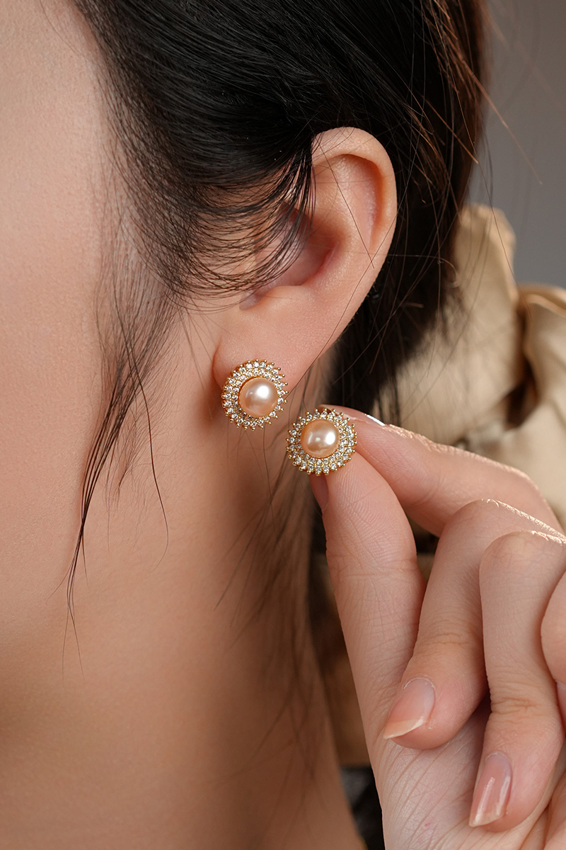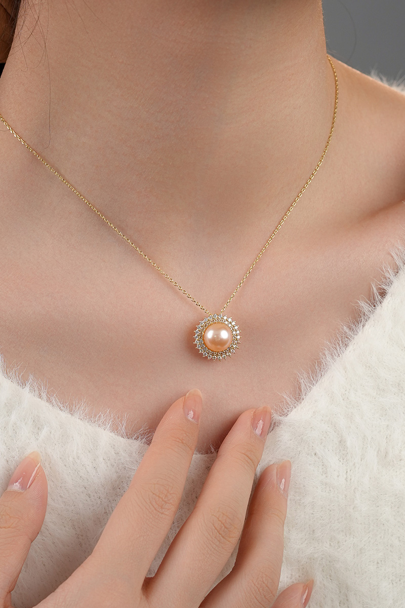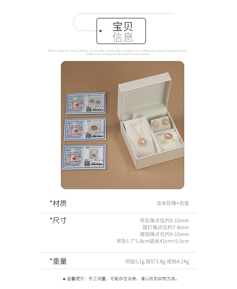 【分销】【珍珠溯源】戴拉珍珠《向阳花》X192300T-1,淡水无核珍珠三件套装,鎏金设计,合金花托包裹珍珠,如旭日绽放