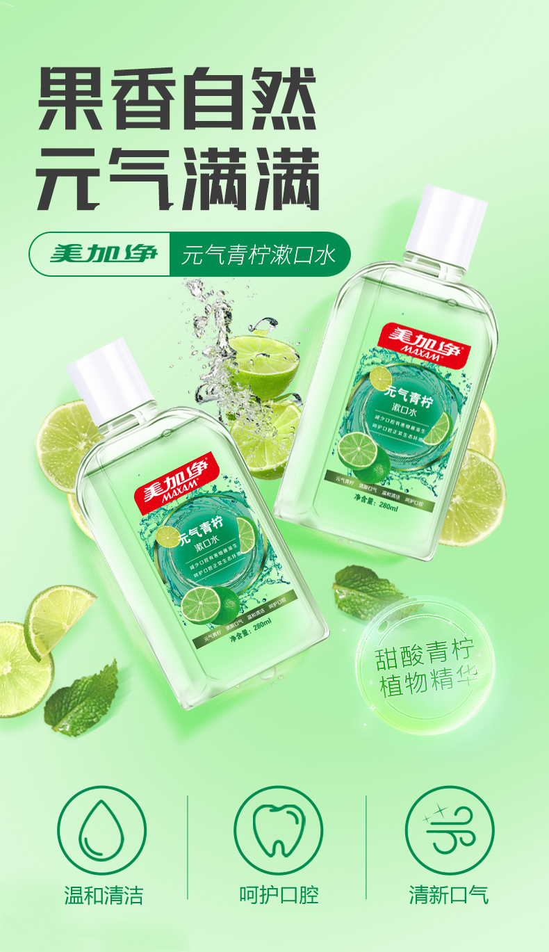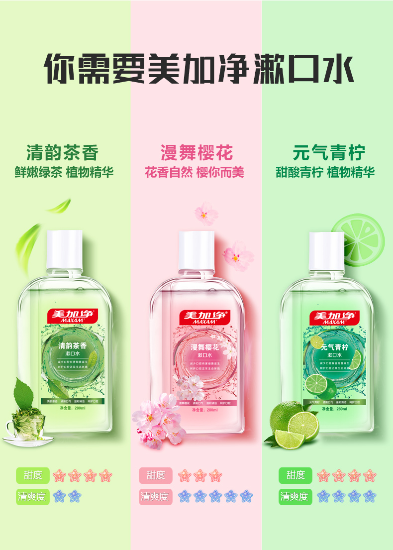 美加净自然系列清新香氛漱口水 清洁护龈清新口气