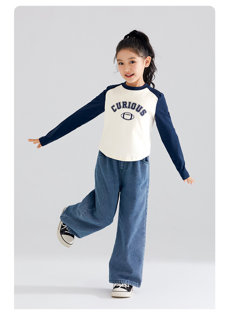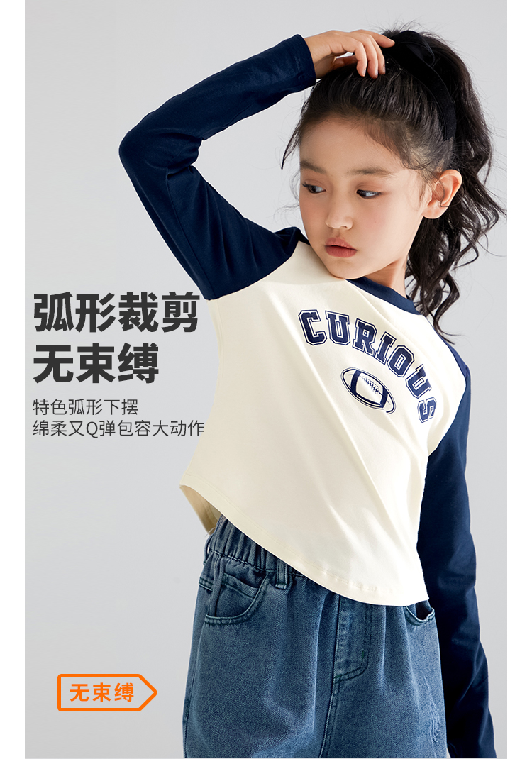 【清仓捡漏】【120-165】【可可鸭】女童春秋撞色长袖插肩T恤