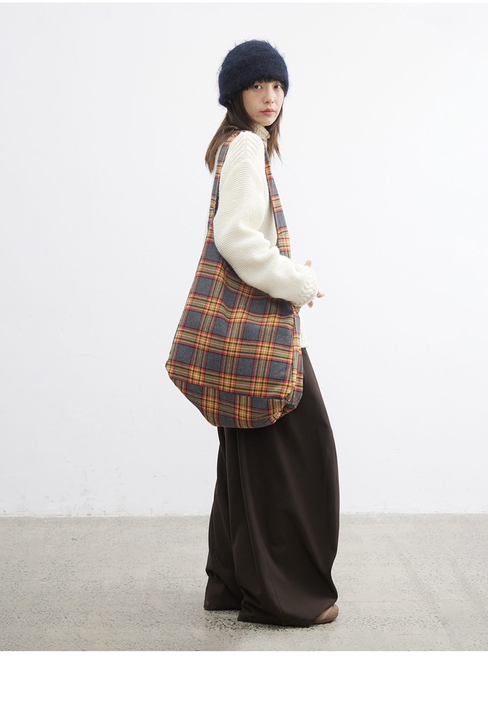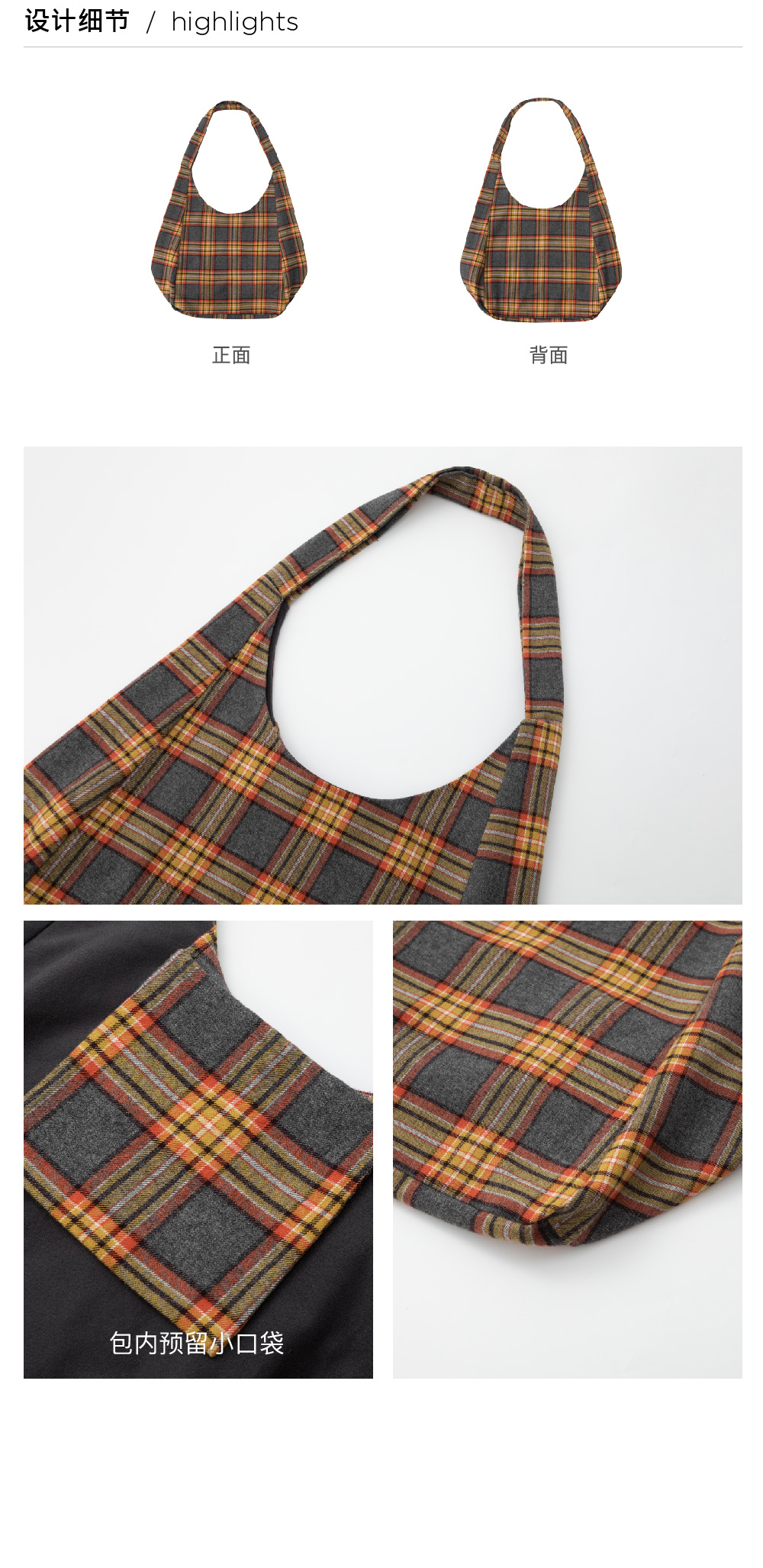 步履不停/5D52034C/撞色托特单肩轻量格纹包