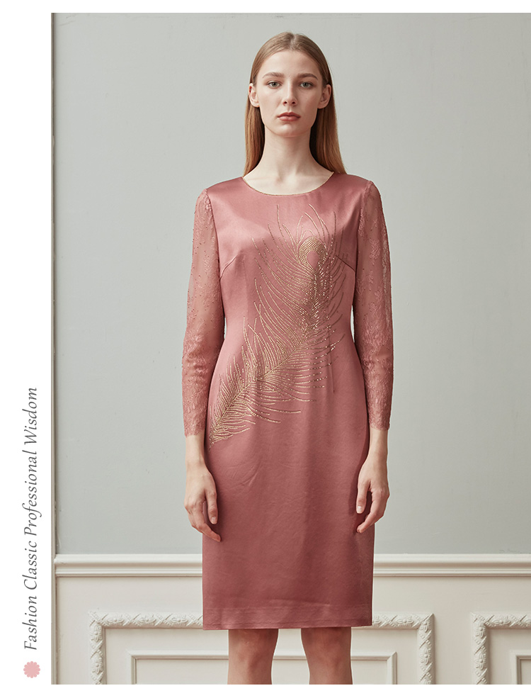 LA816夏季大羽毛圆领收腰气质中长款连衣裙