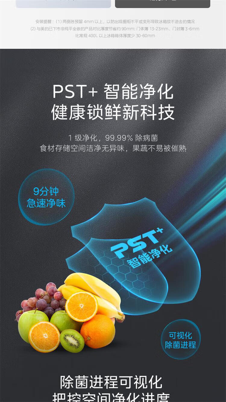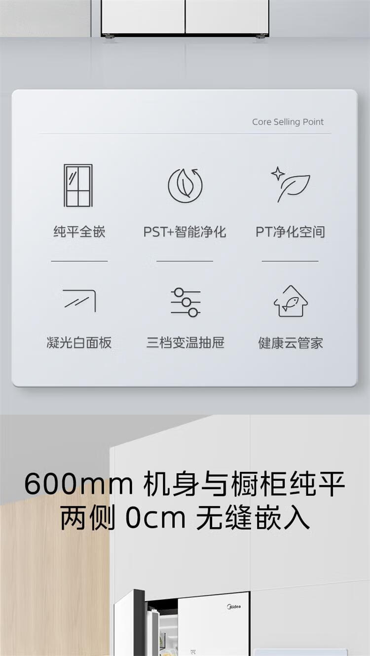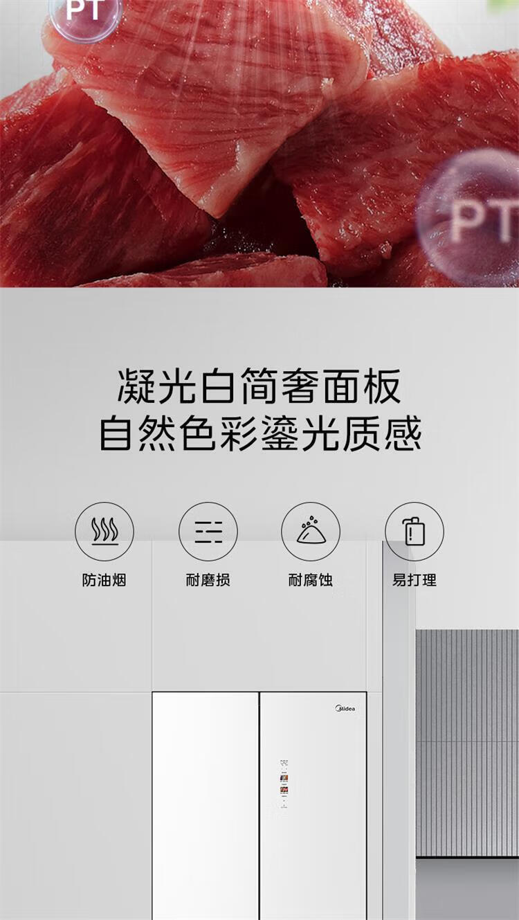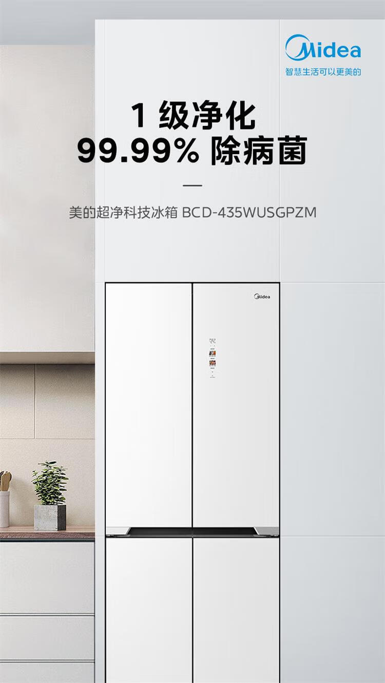 美的 BCD-435WUSGPZM 冰箱435升十字四门智能净化除菌纯平全嵌保鲜智能家用电冰箱