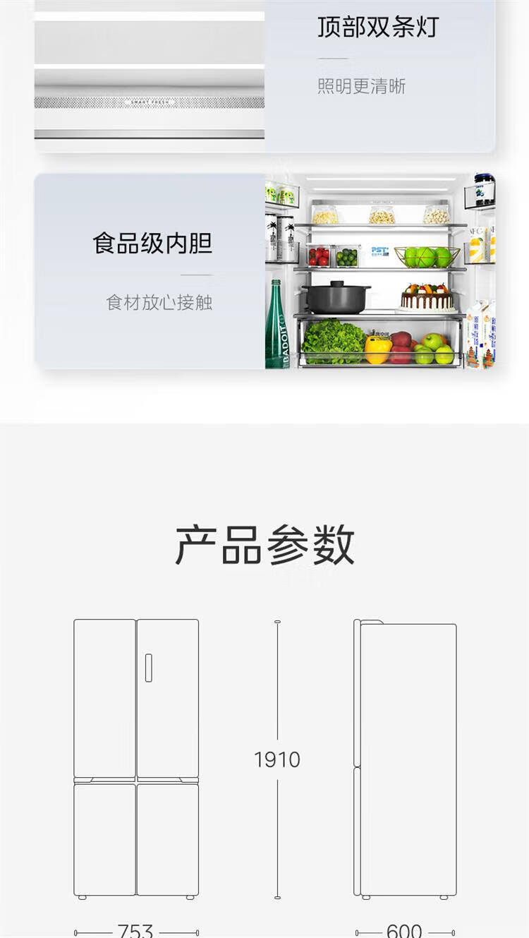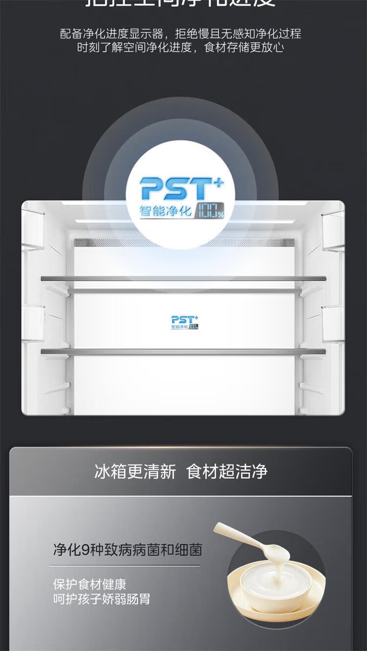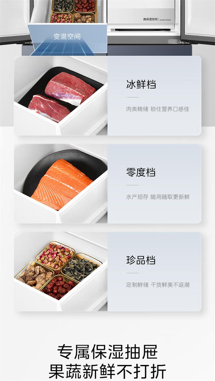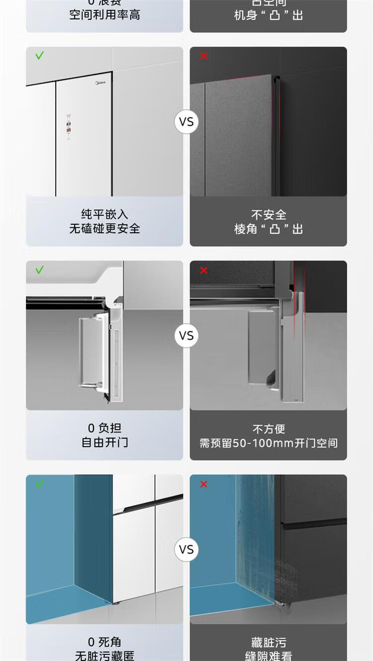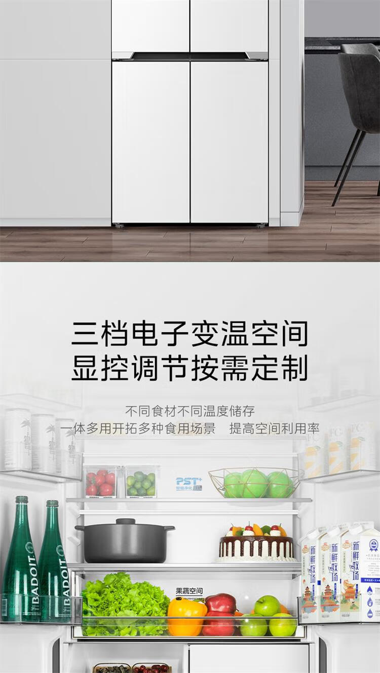 美的 BCD-435WUSGPZM 冰箱435升十字四门智能净化除菌纯平全嵌保鲜智能家用电冰箱