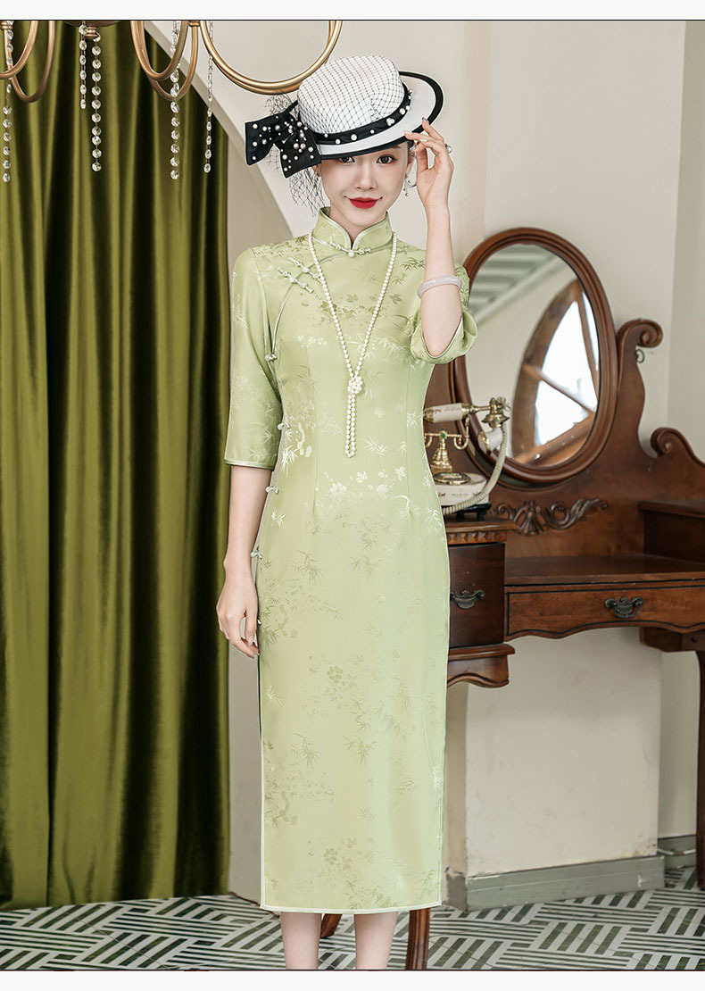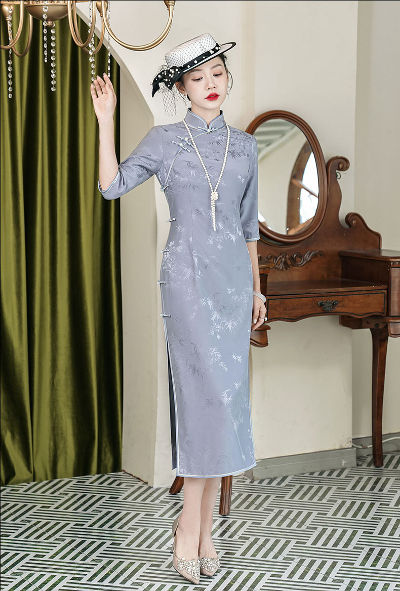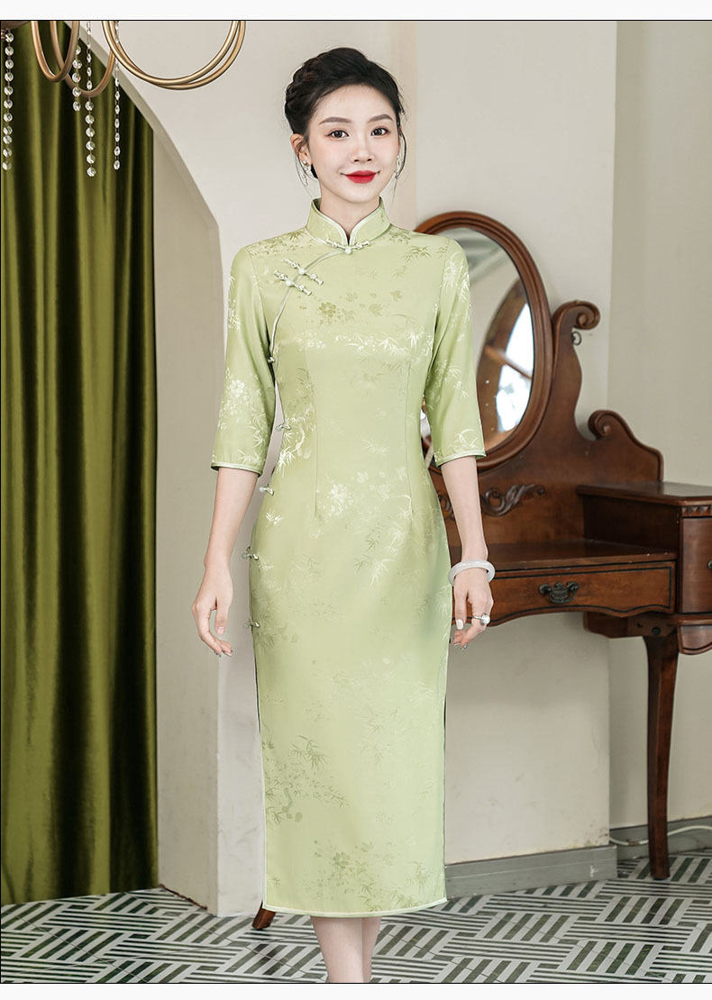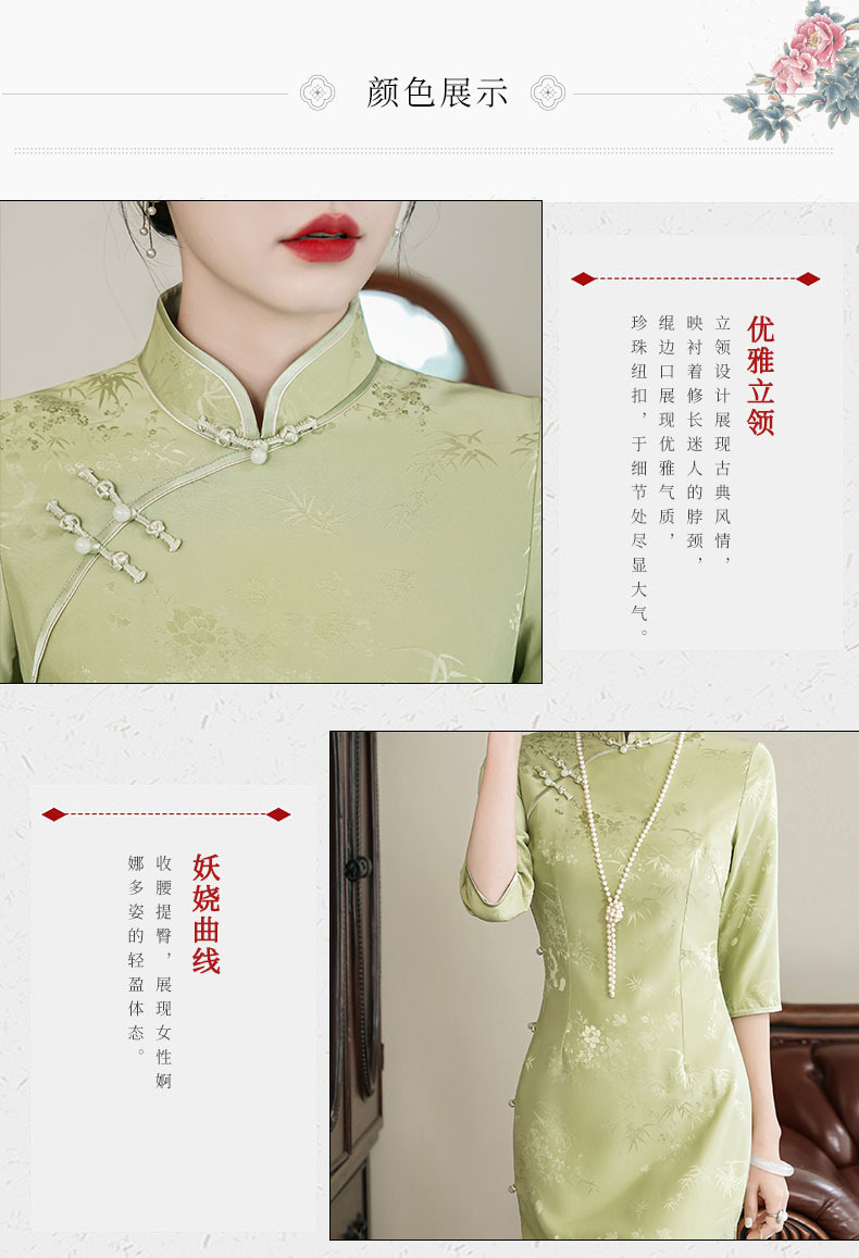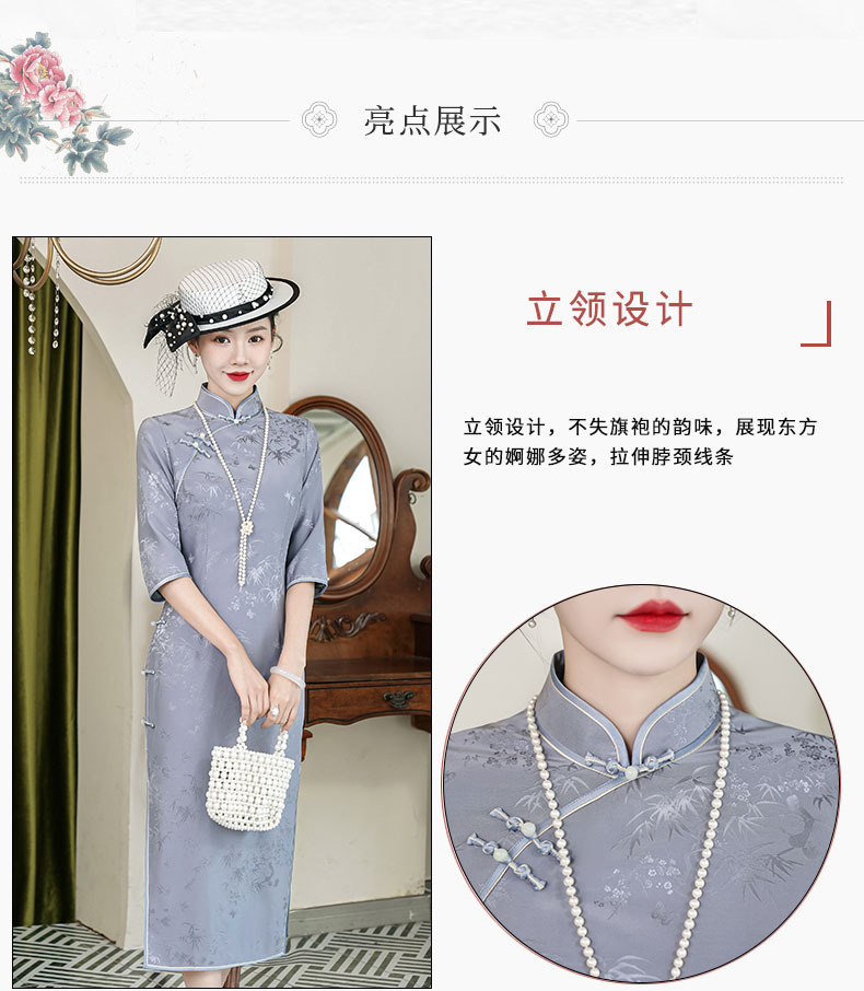 复古中国风,高档真丝高端桑蚕丝旗袍连衣裙HQ-231