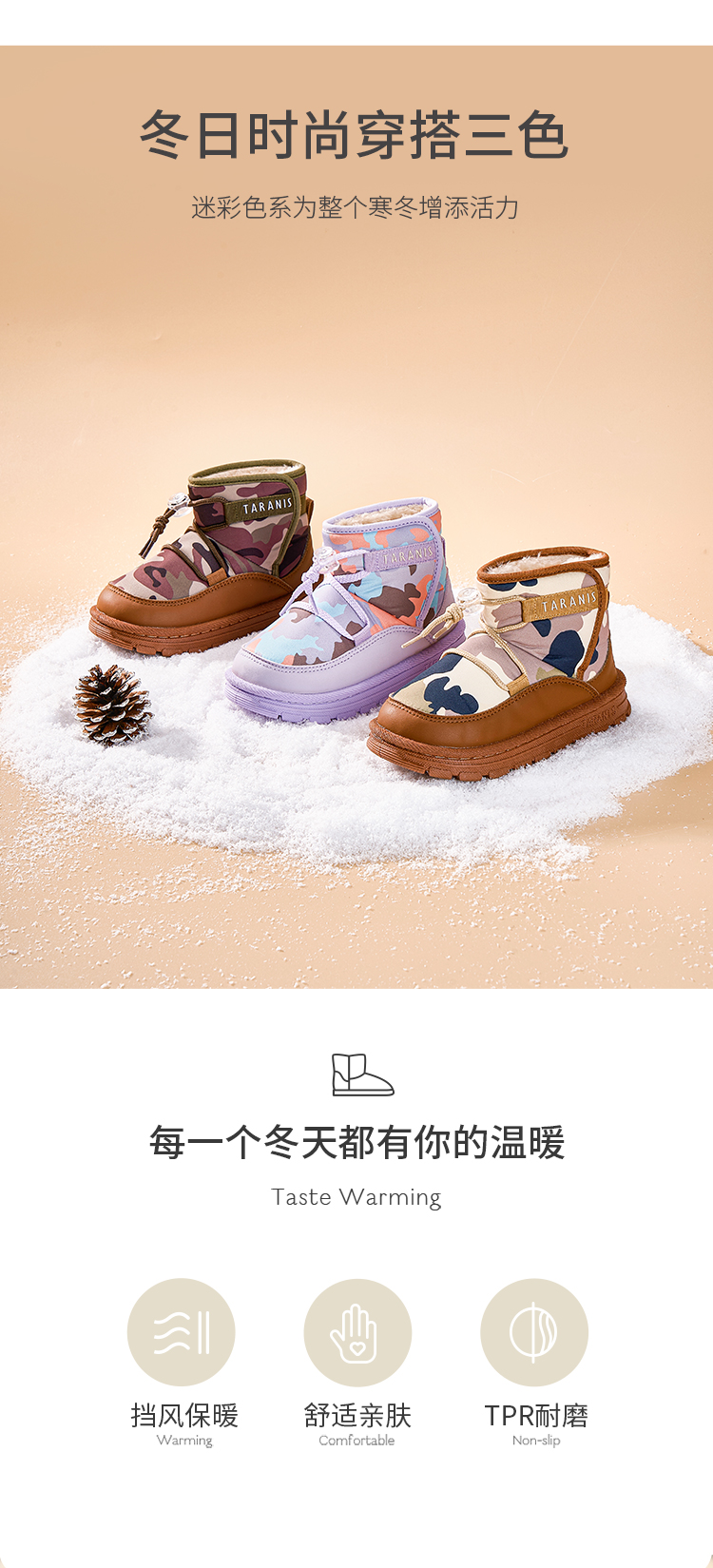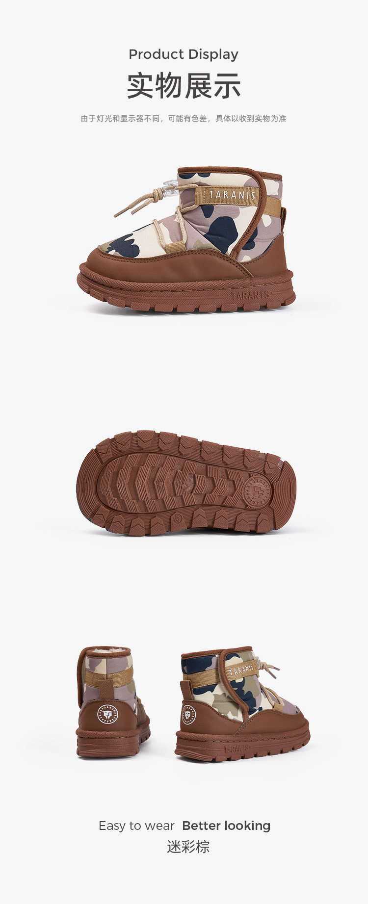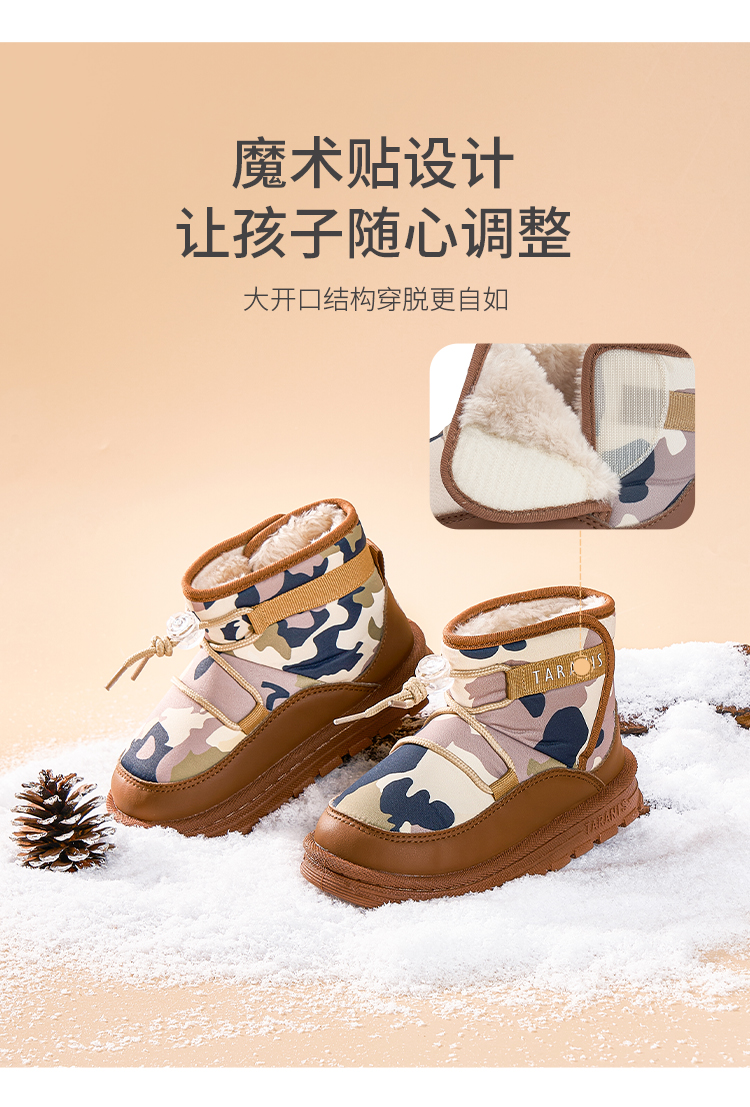 【新品】泰兰尼斯小童段冬款迷彩系加绒加厚雪地靴T08X5D8426