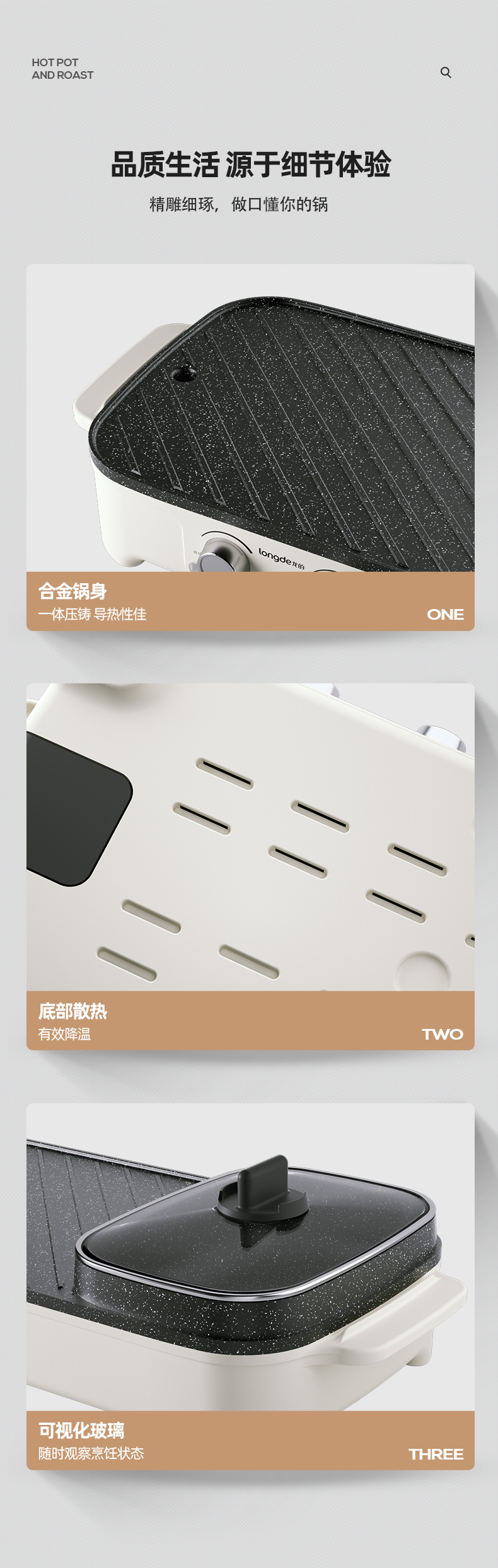 龙的(londge)涮烤一体电烤盘 多功能烧烤盘独立分区控温家用电烤盘火锅LD-KK180A