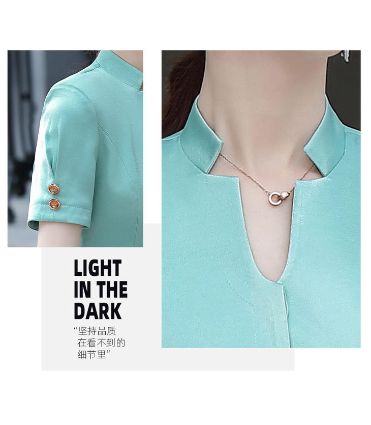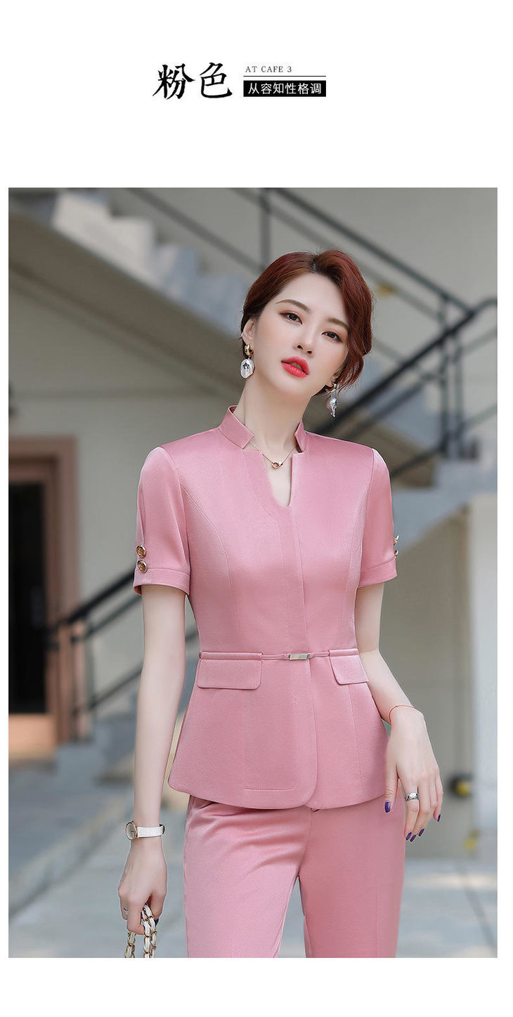 2020新款V领短袖,粉色职业西装裤套装 XZ2029