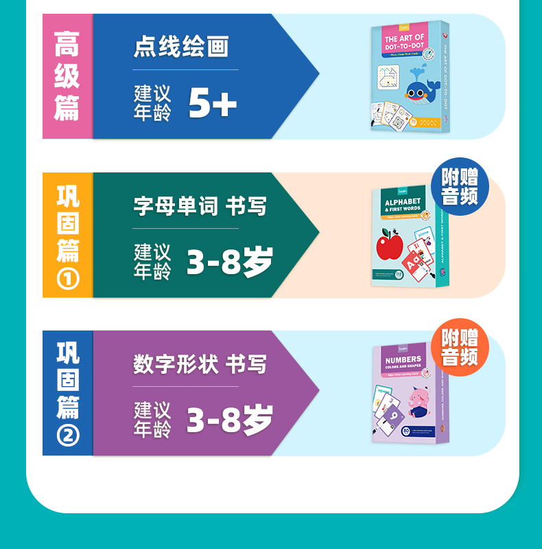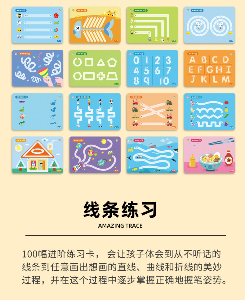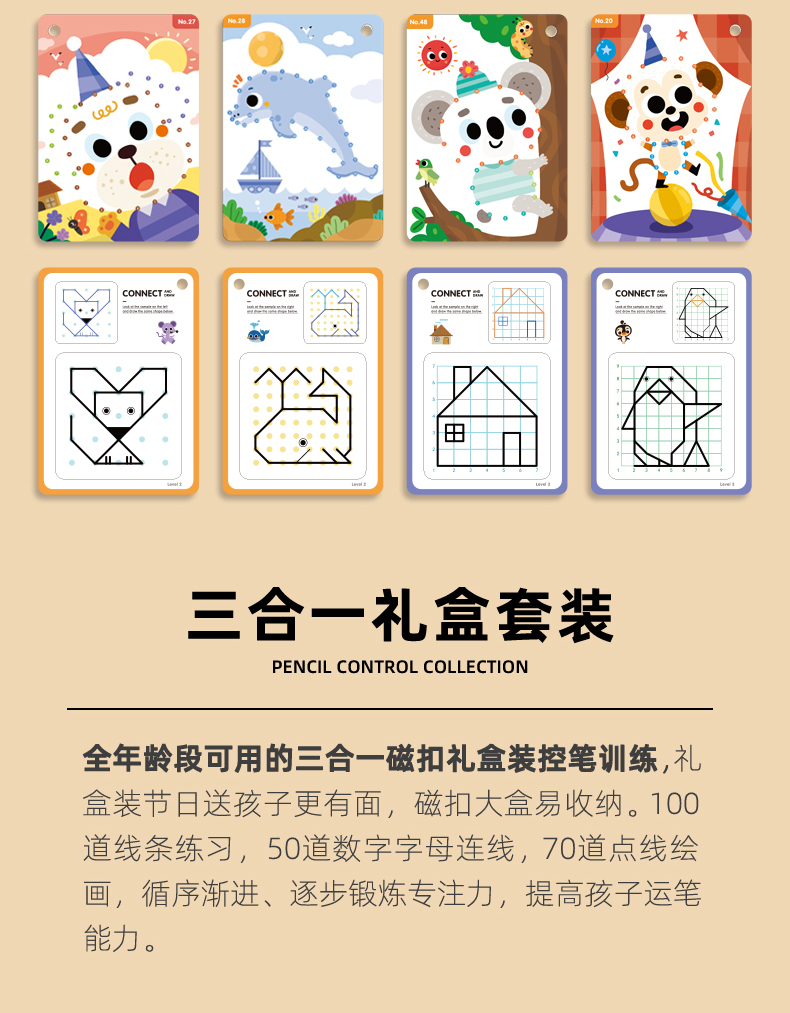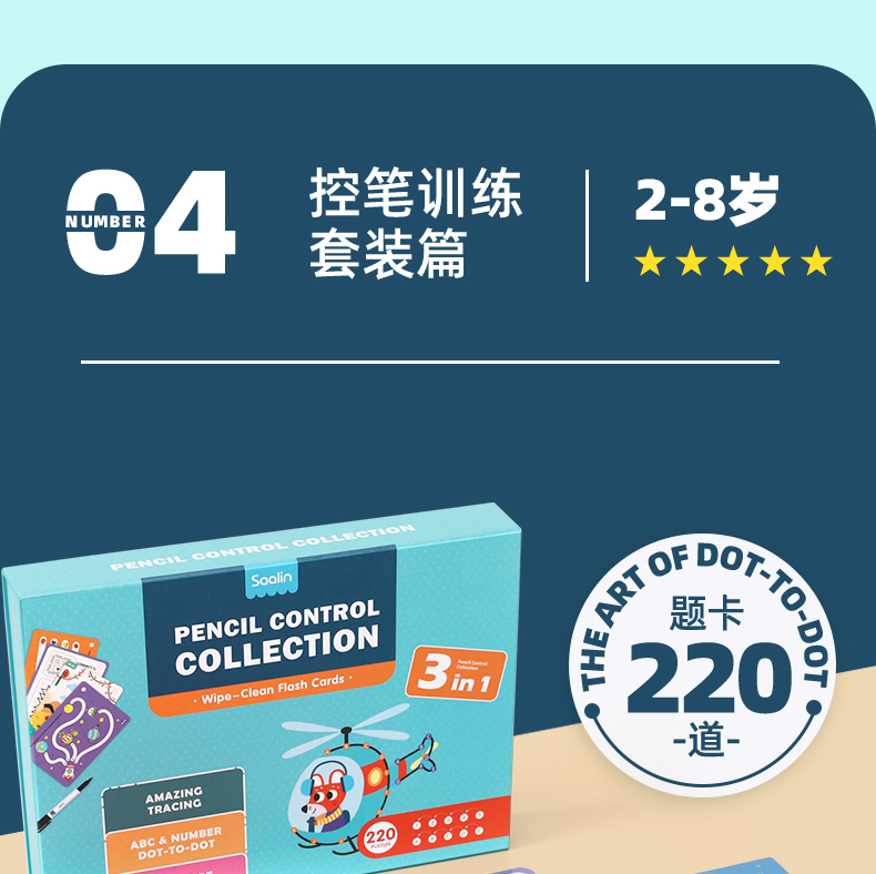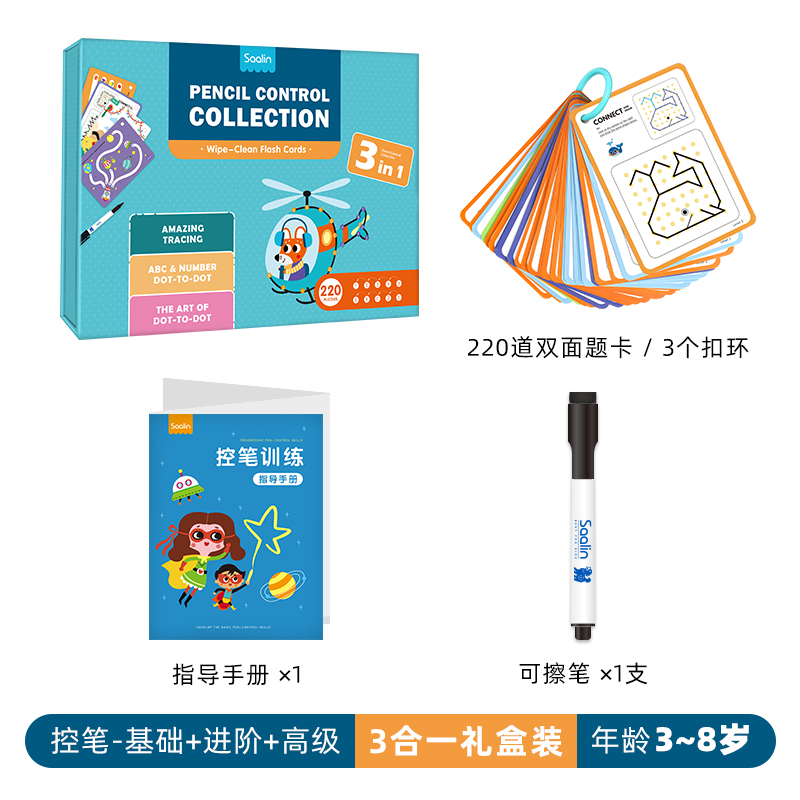 莎林进阶控笔训练卡,3合一礼盒装,适用年龄3-8岁!