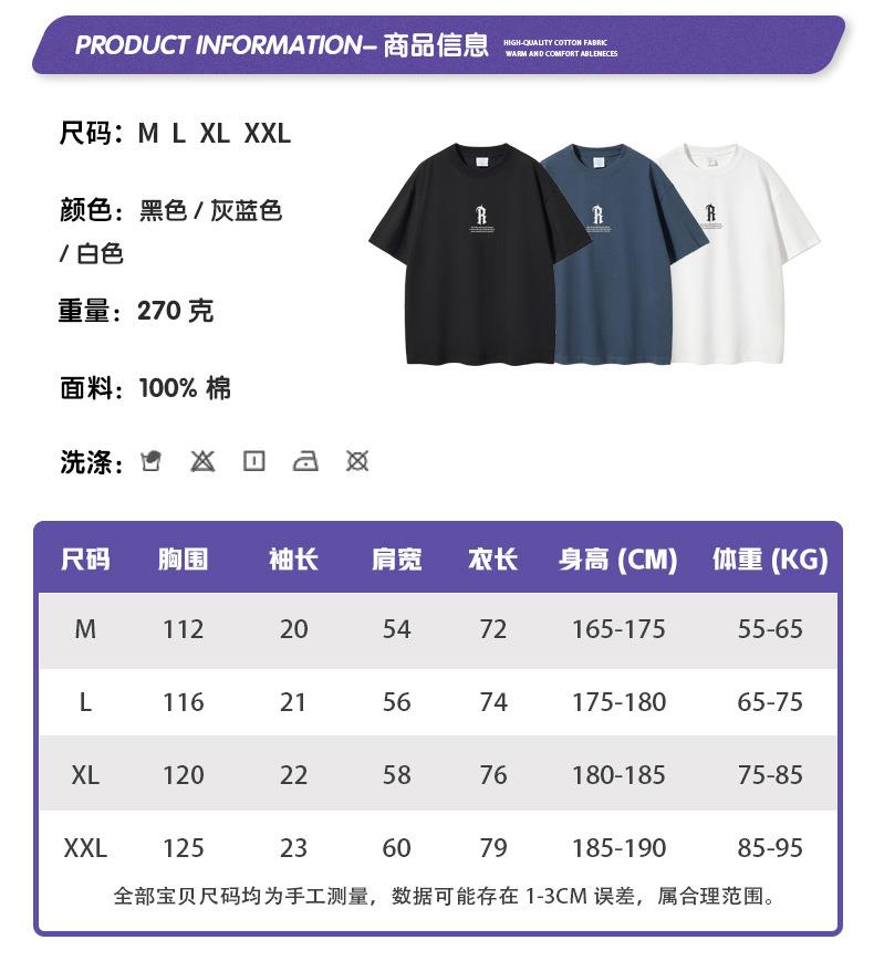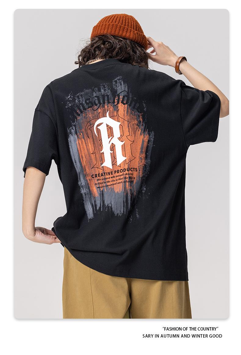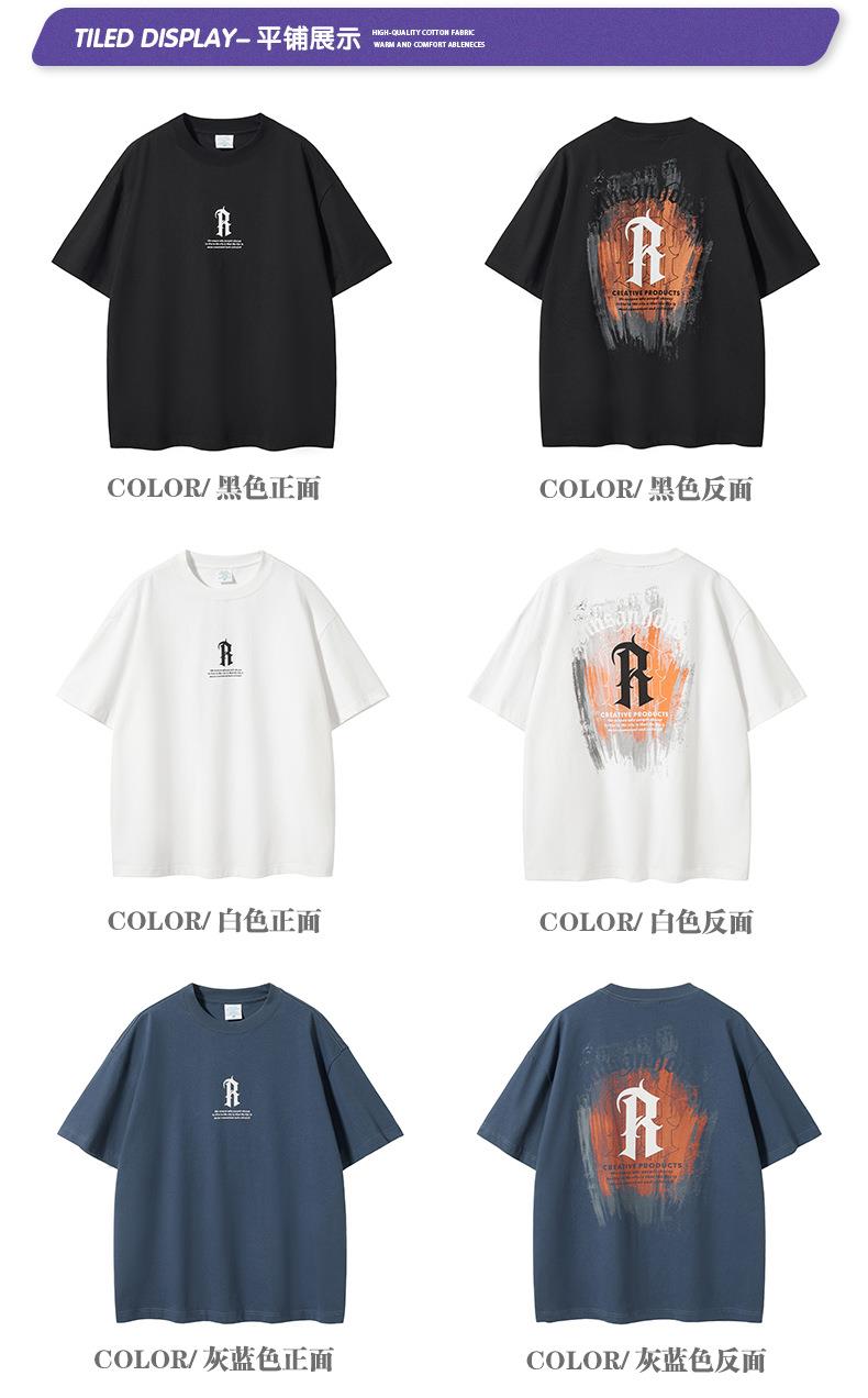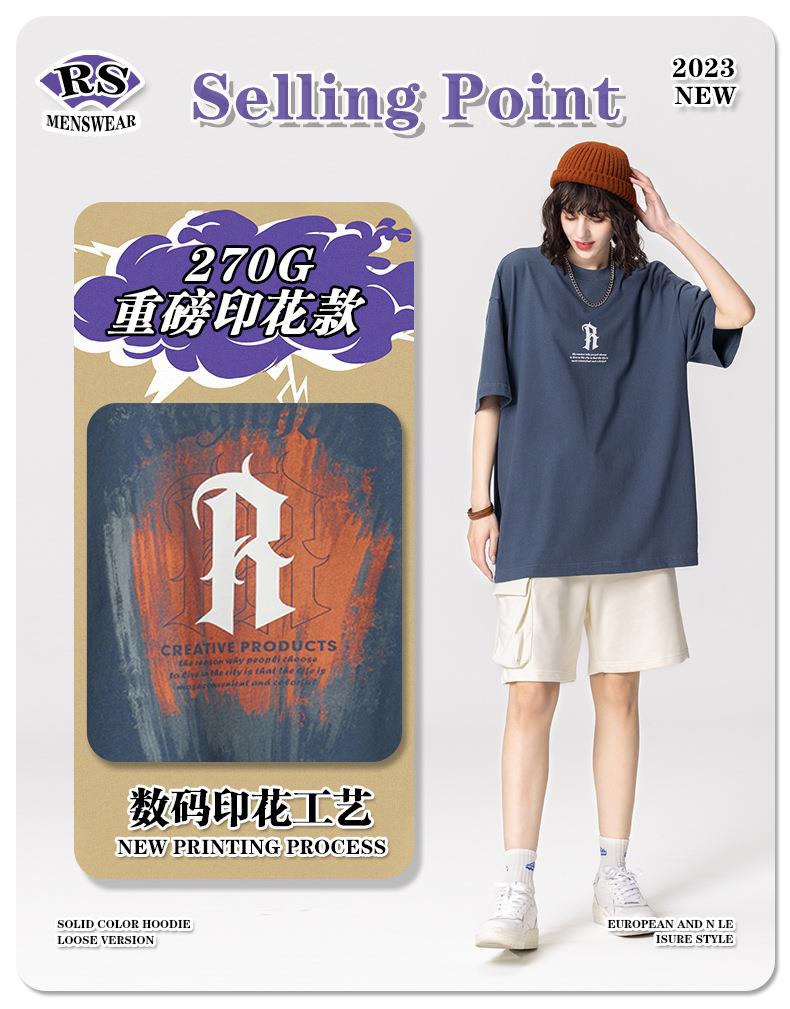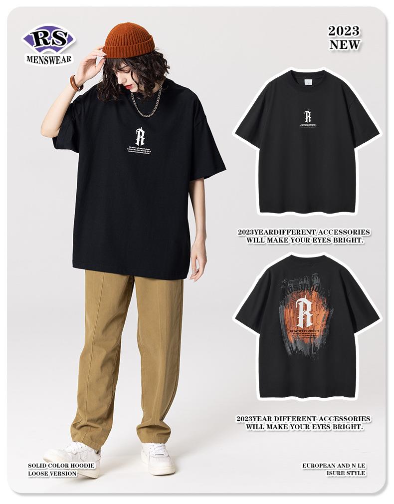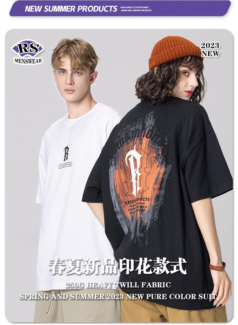 RS男装|2023夏季270g渐变字母数码印花短袖欧美街头复古潮牌T恤男