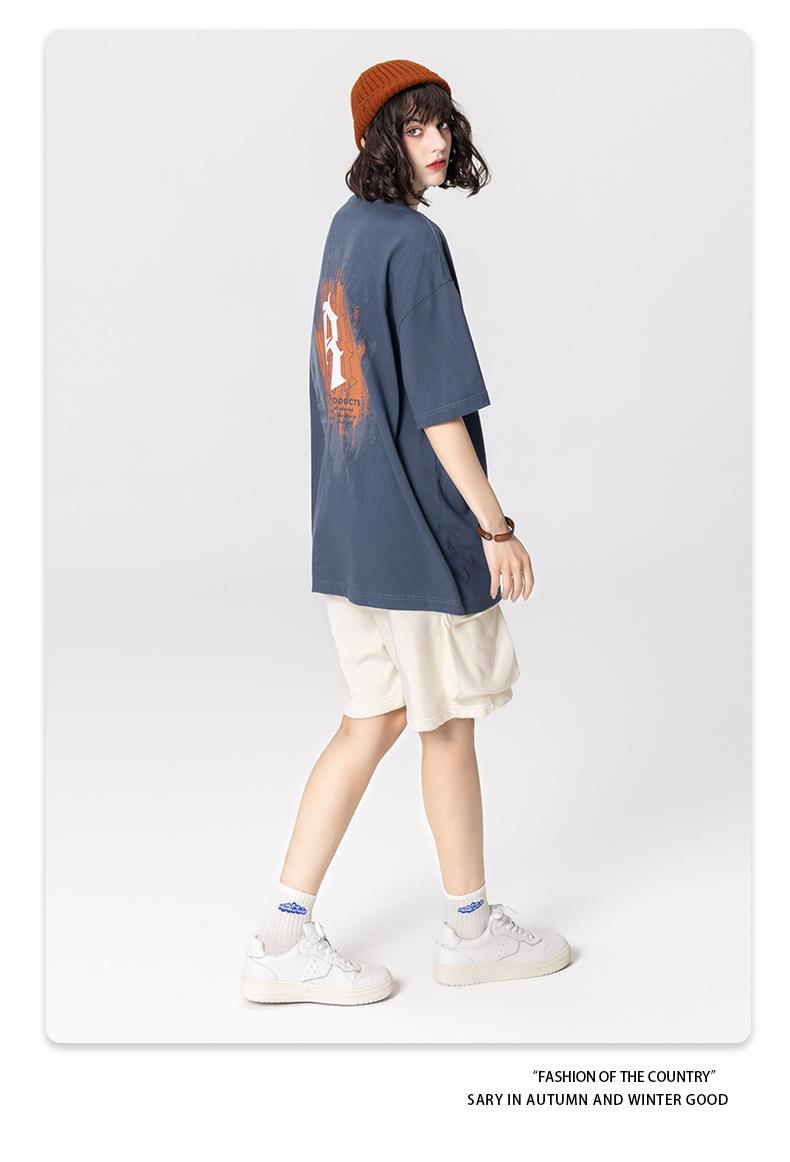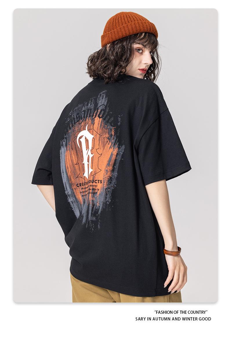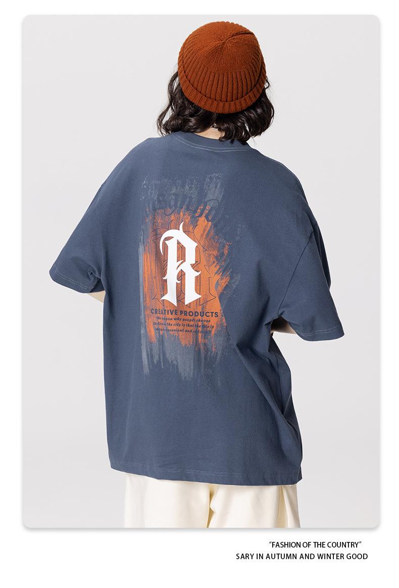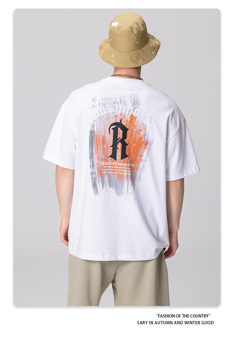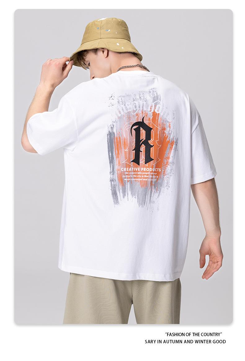 RS男装|2023夏季270g渐变字母数码印花短袖欧美街头复古潮牌T恤男