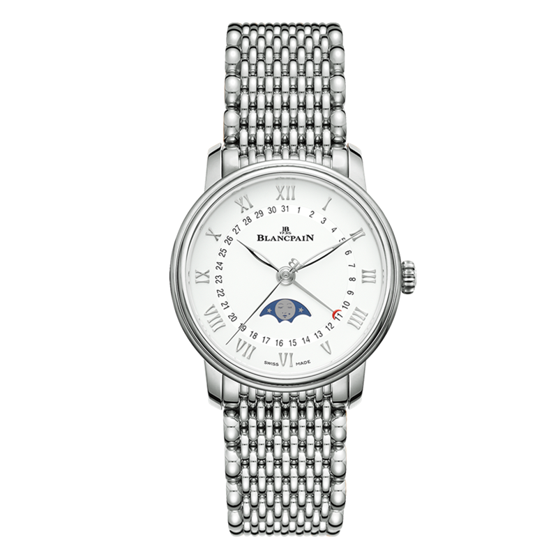 镜面 材质 | 蓝宝石水晶玻璃 | 表盘 | 精钢表壳 白色表盘 日期显示 月相 精钢指针 时标 |