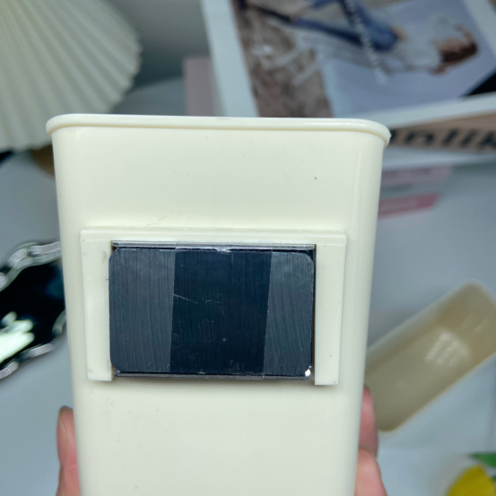 每天都用的小物件,传统的收纳方法是放进抽屉或柜子里,虽然顺手,但算不上方便。 利用一片小的磁吸片,伸手就能拿到,不必再开关柜子。