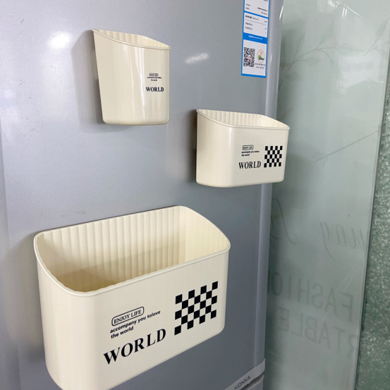 还有厨房的各种不好收纳的小物件,同样用磁吸片+收纳盒搭配,贴在柜门上,节省空间、一目了然、方便拿取,对于小厨房特别友好。