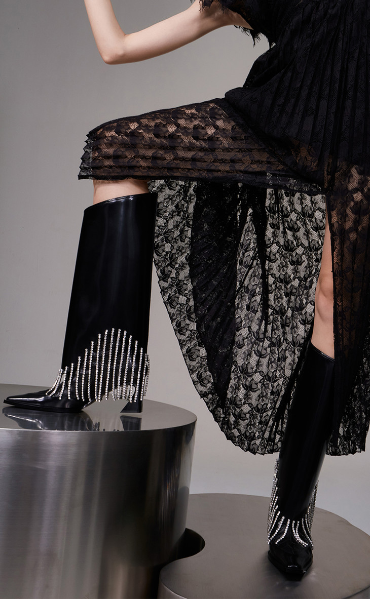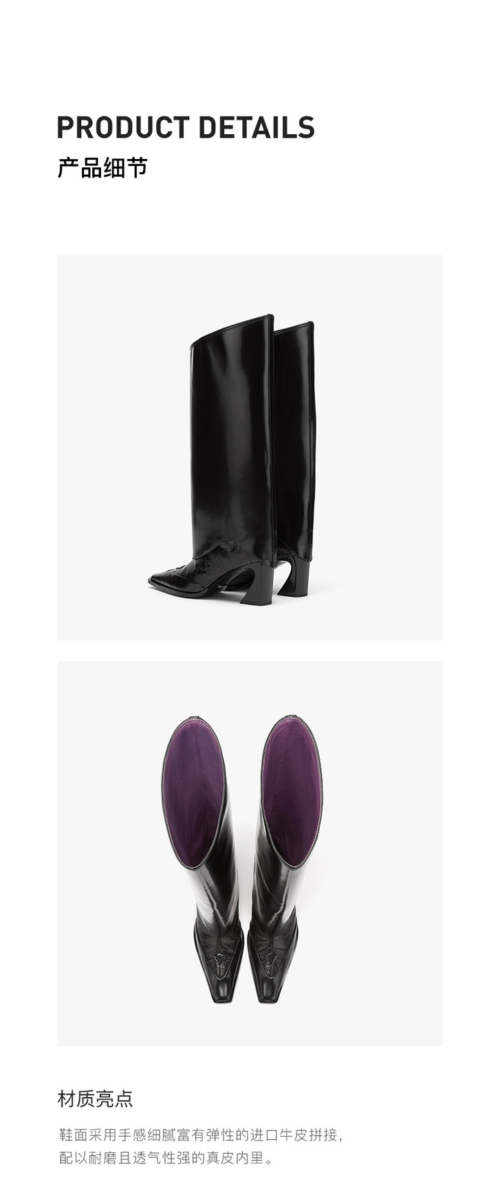 lost in echo设计师品牌牛皮拼接双层靴筒阔腿靴