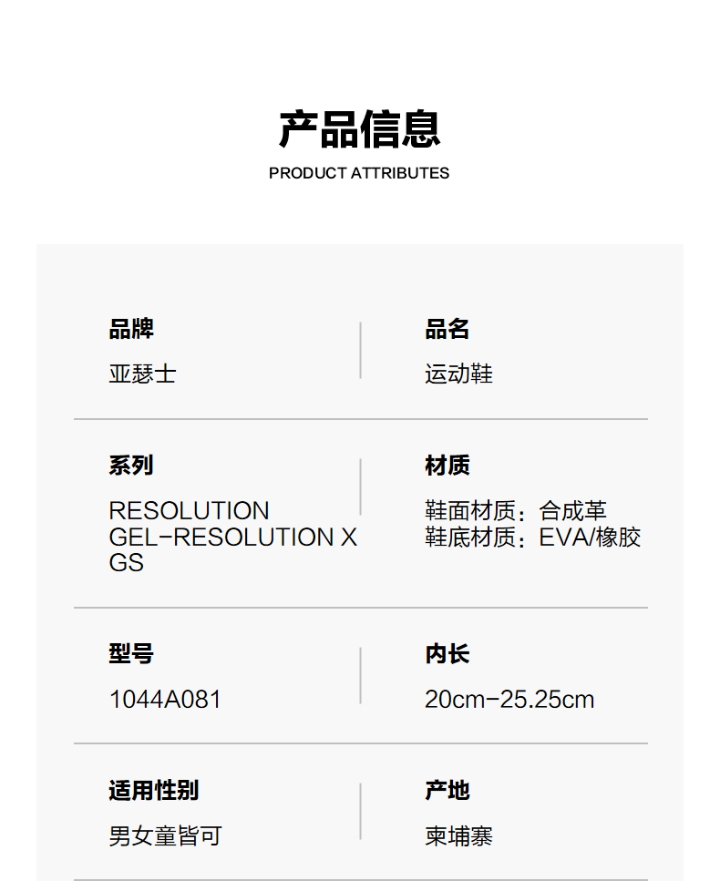 ASICS/亚瑟士童鞋2025新款专业网球鞋运动鞋减震缓冲RESOLUTION