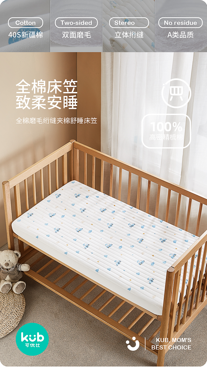 可优比婴儿床笠夹棉宝宝床垫套新生儿童床单罩纯棉a类秋冬季ins风
