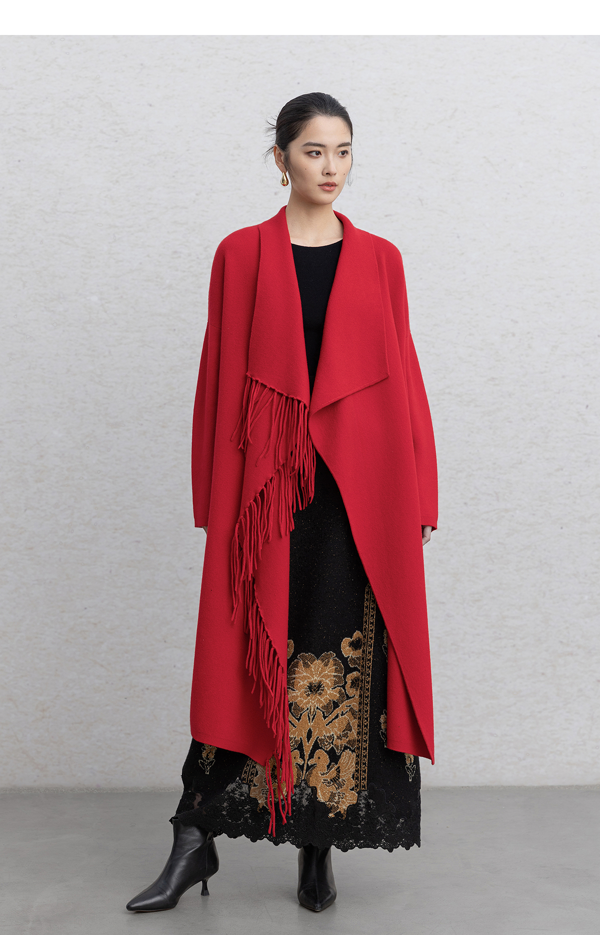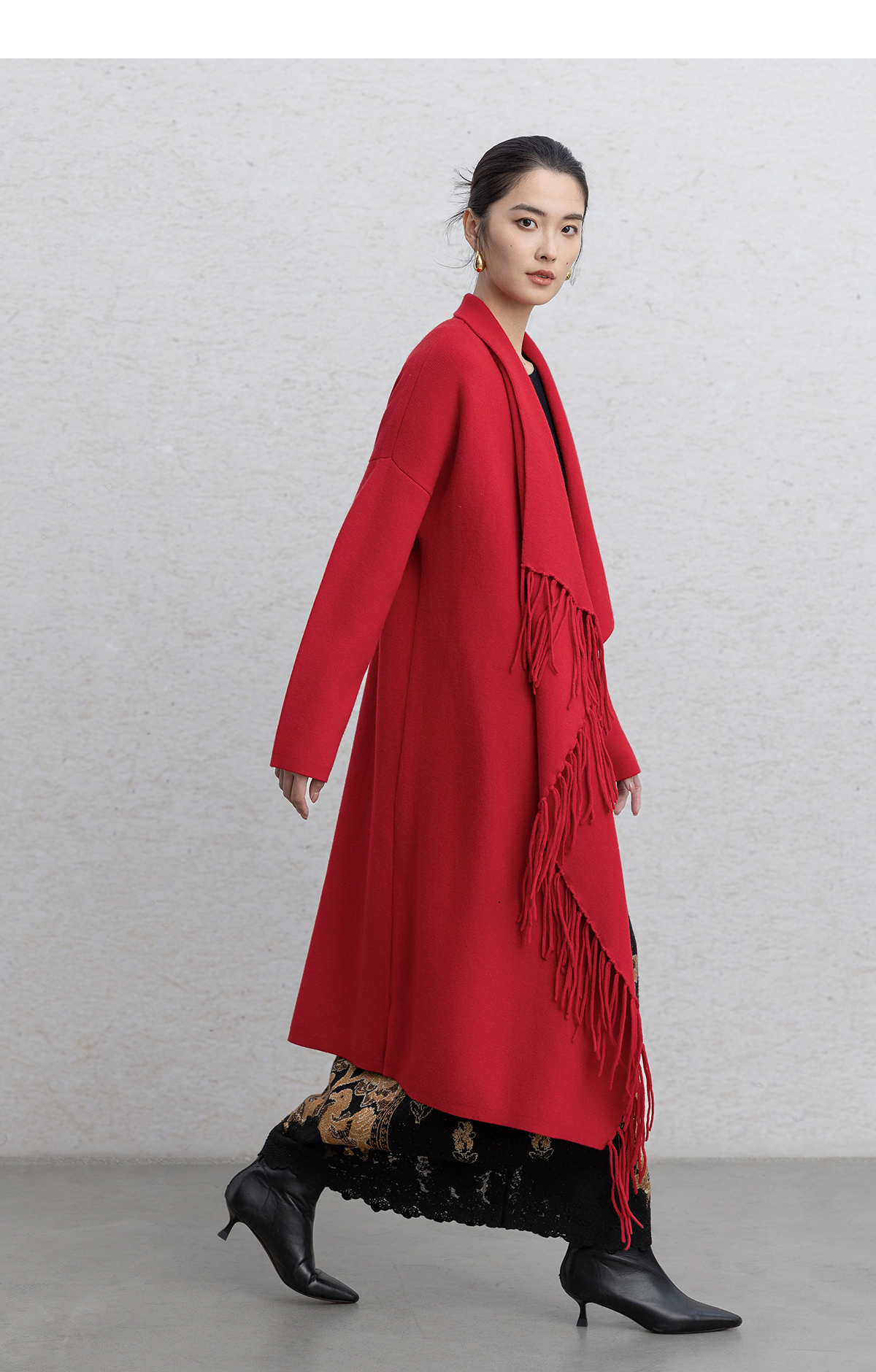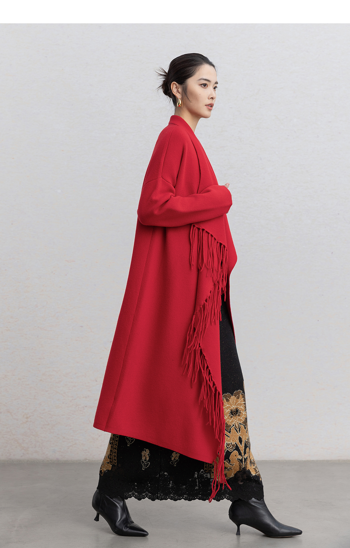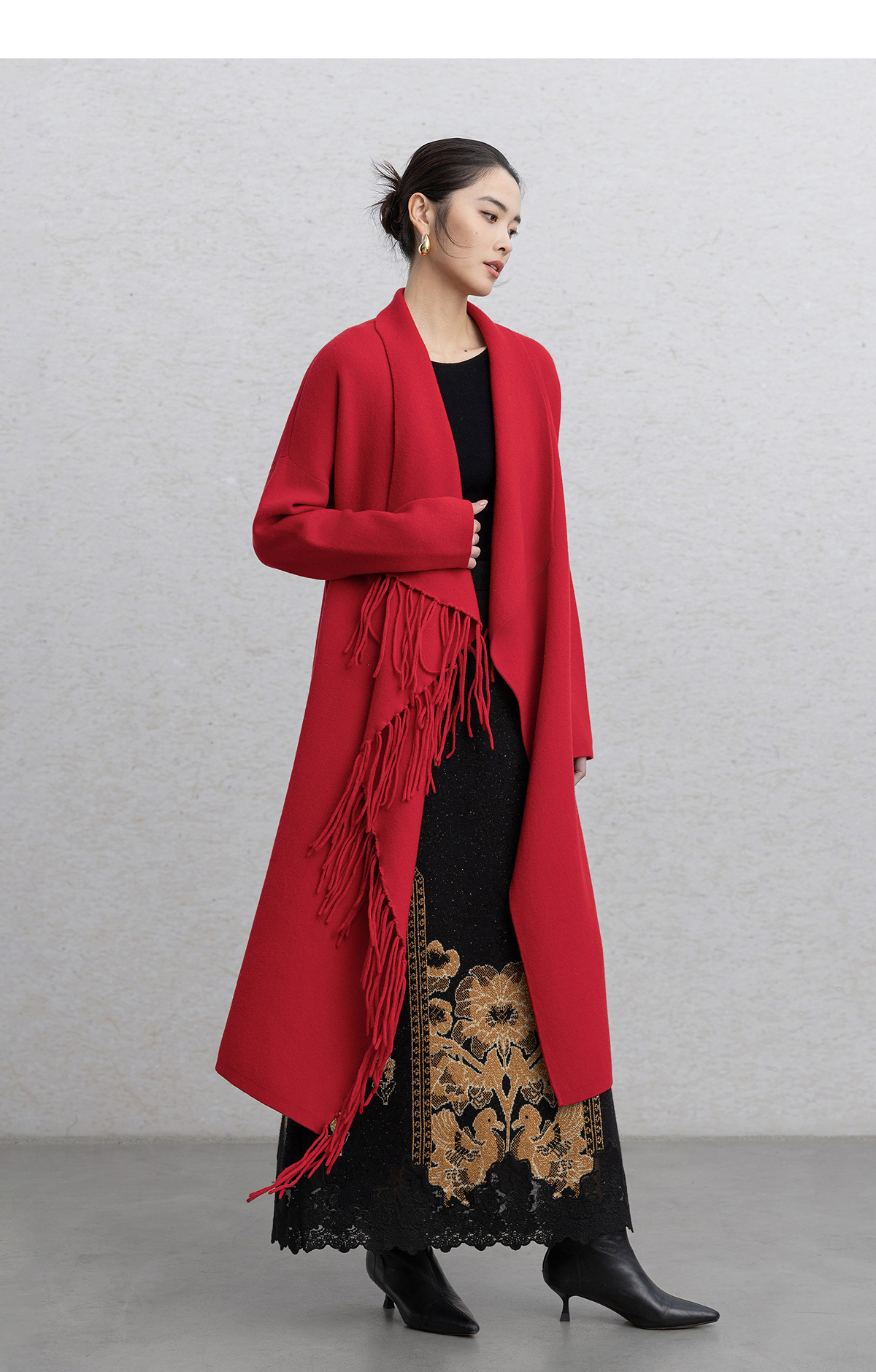 【林栖设计小店】贺岁红运|红色绵羊毛复古优雅2026春新款流苏毛织外套T1961382