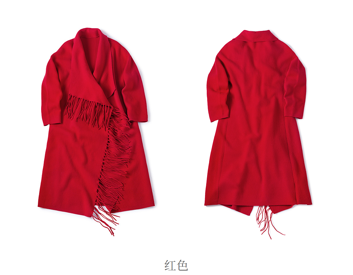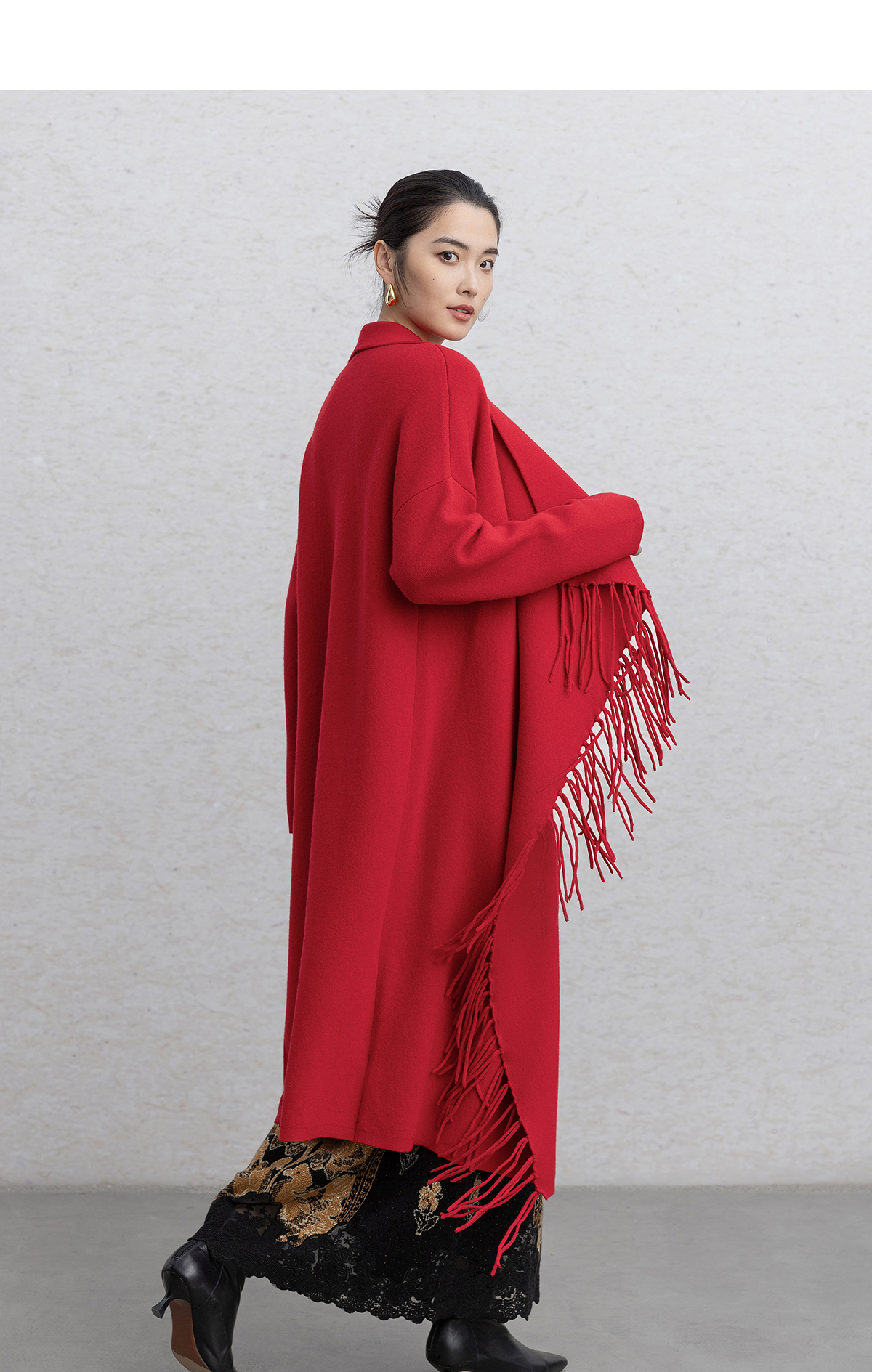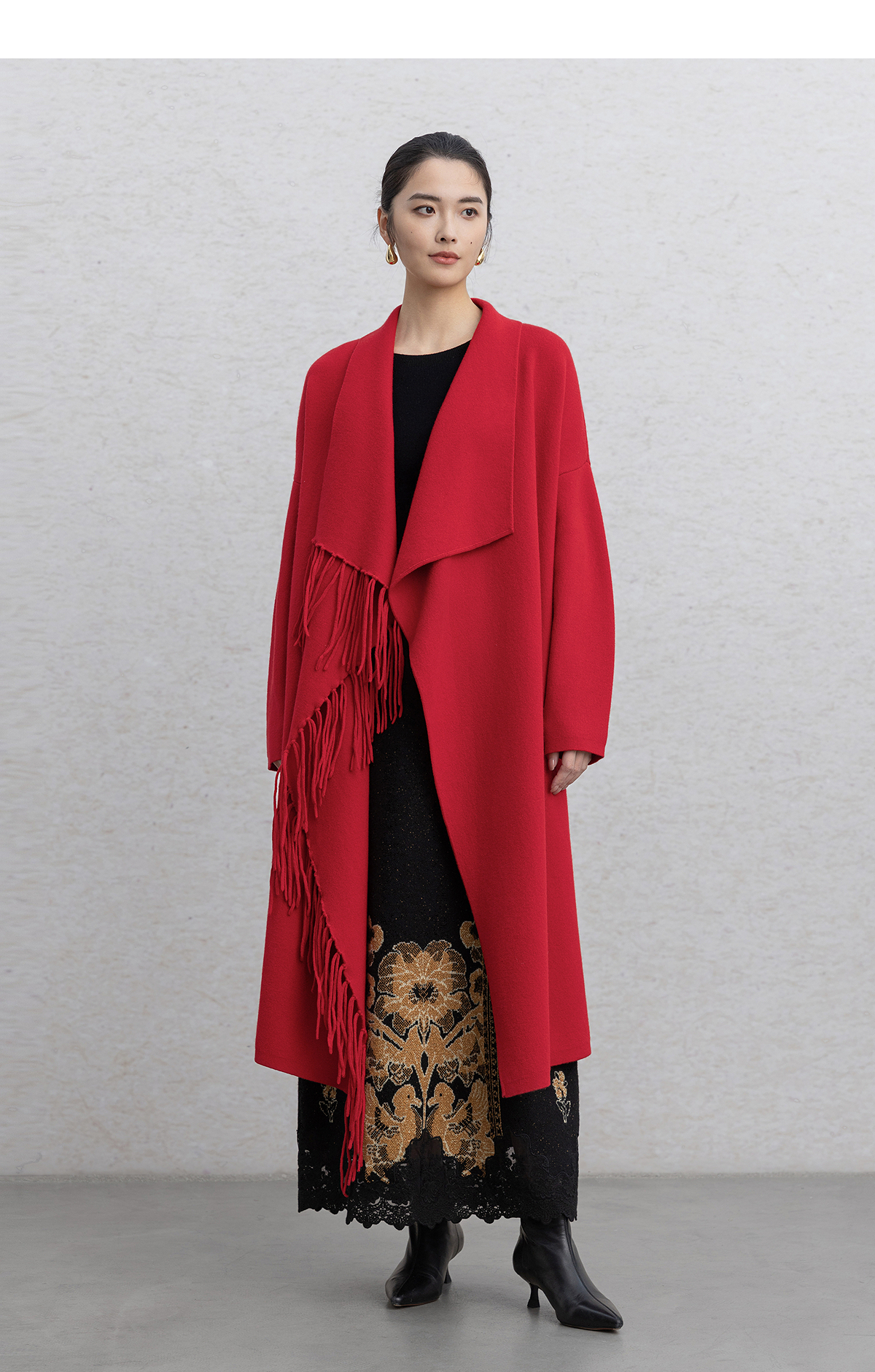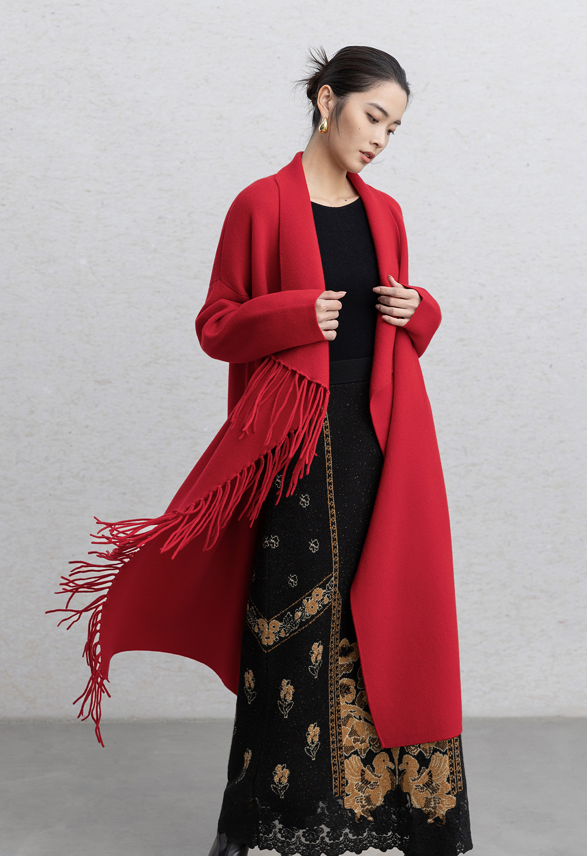 【林栖设计小店】贺岁红运|红色绵羊毛复古优雅2026春新款流苏毛织外套T1961382