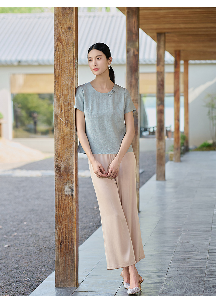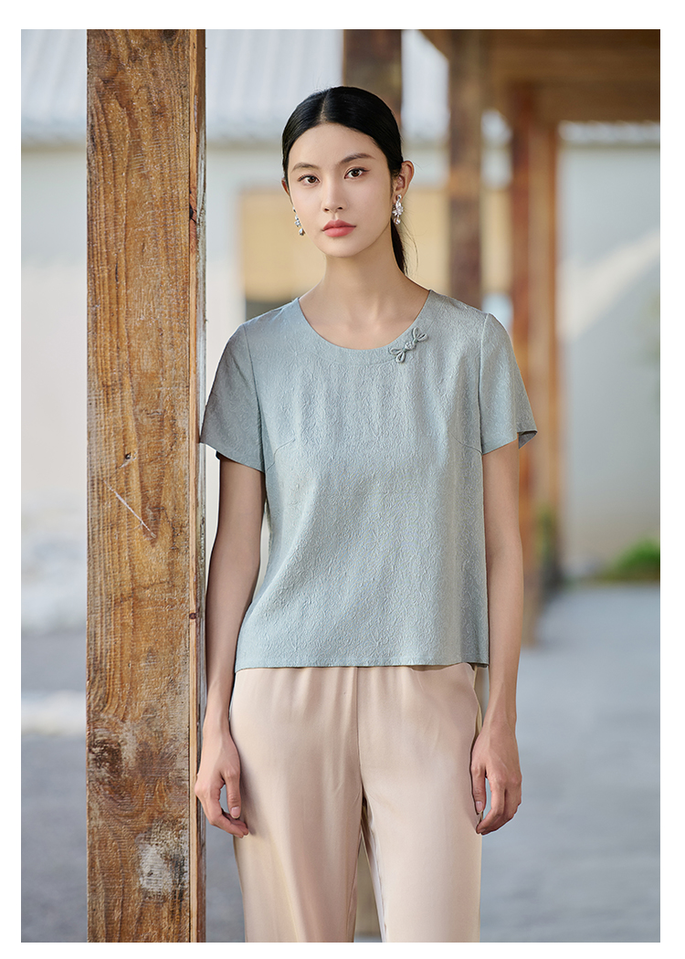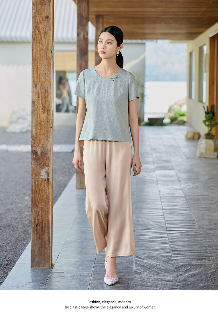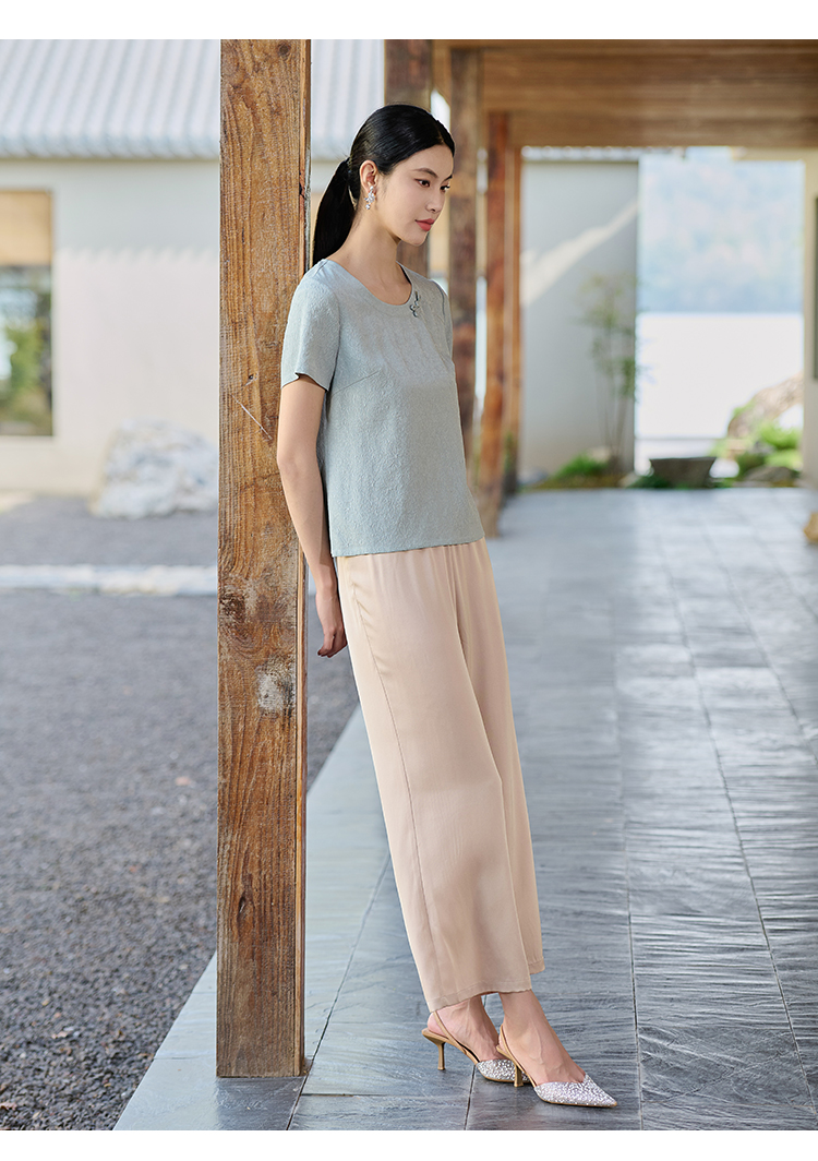 佐尔美连衣裙女夏2021新款桑蚕丝绣花圆领中袖E92LS20