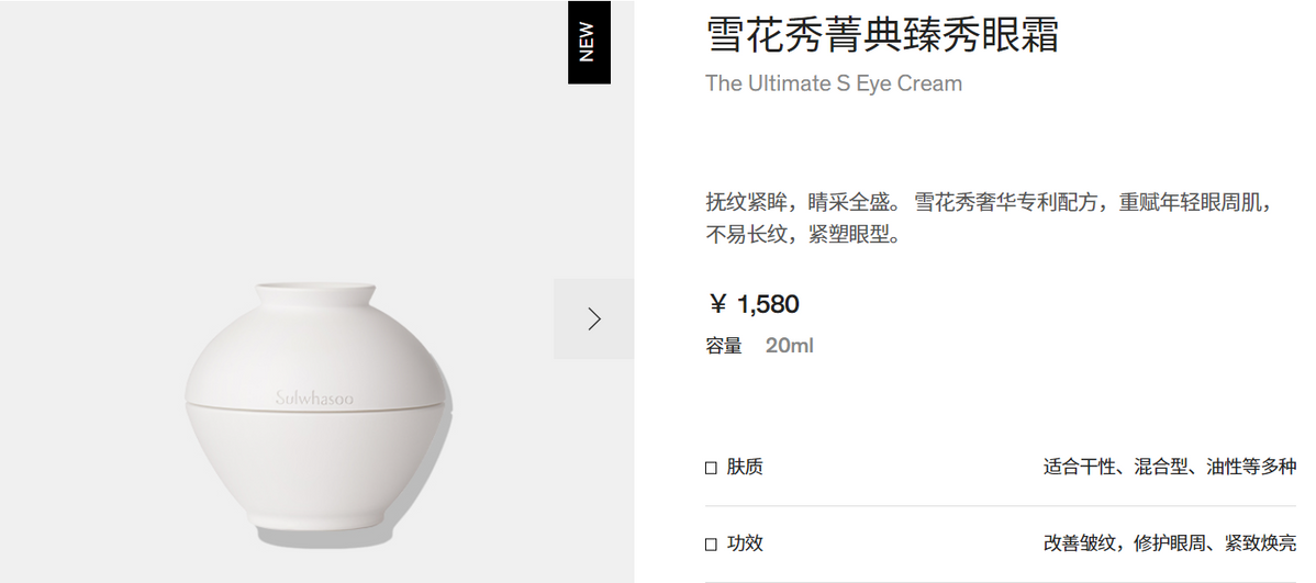 【爆款超低价预售 急单慎拍】雪花秀菁典臻秀眼霜小样1mL月亮罐眼霜淡化修护眼细纹新臻雪