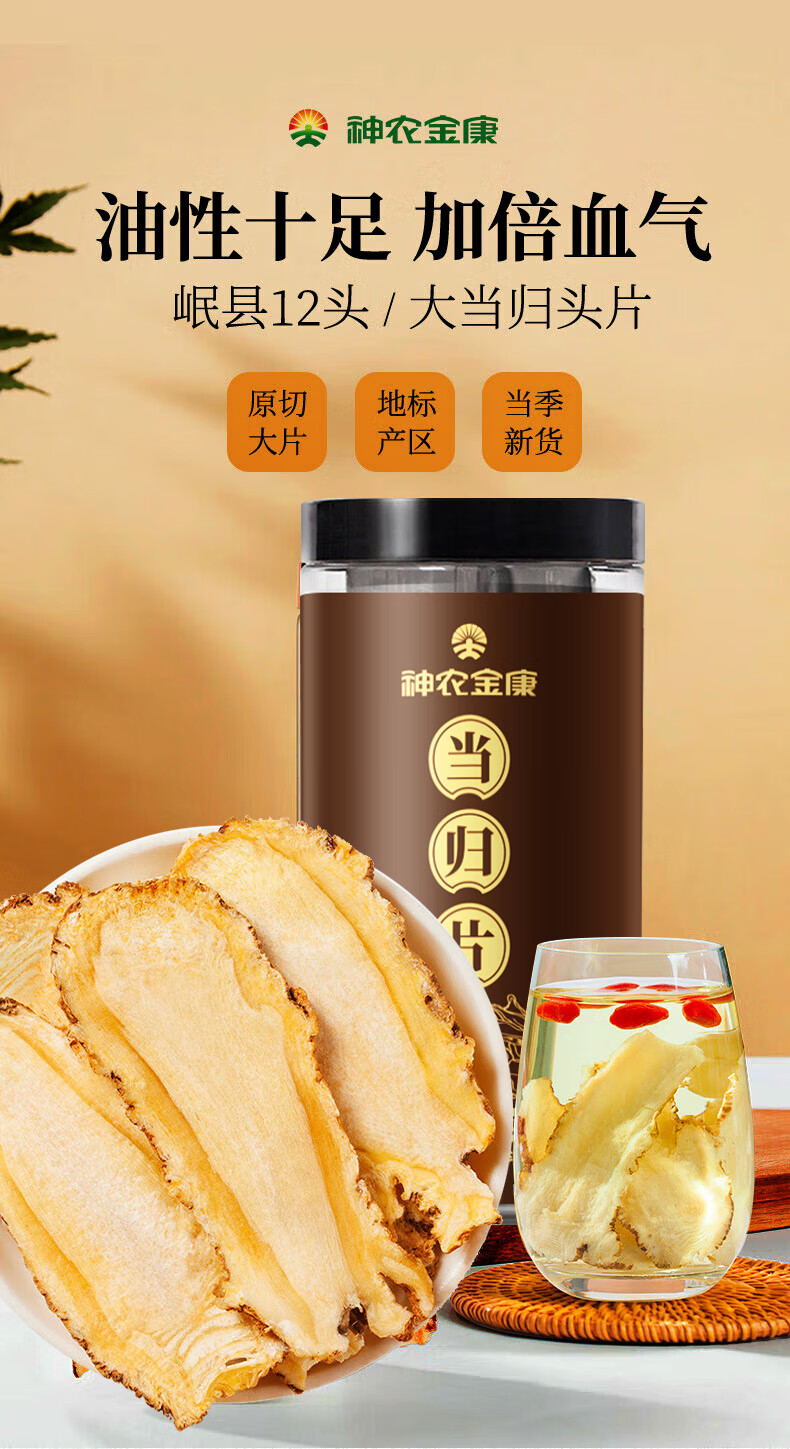 【密封罐】神农金康 当归头片 当归片 甘肃岷县 真当归切片 无硫当归头切茯苓养生茶煲汤料原生态真滋补 喝护家人健康