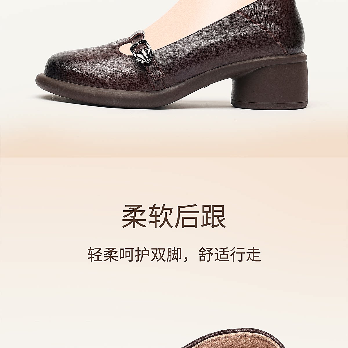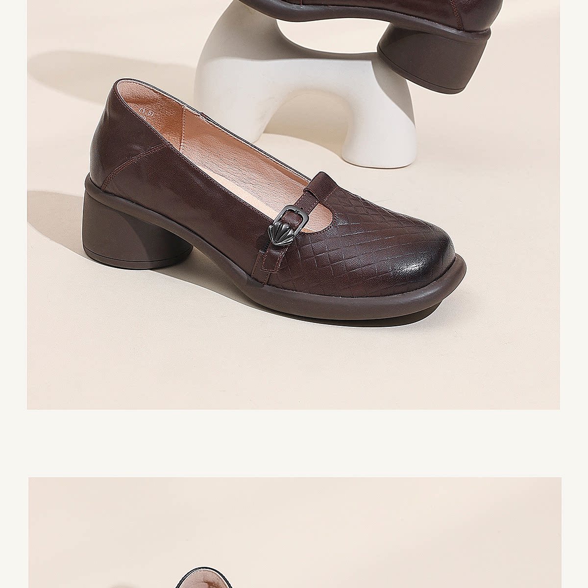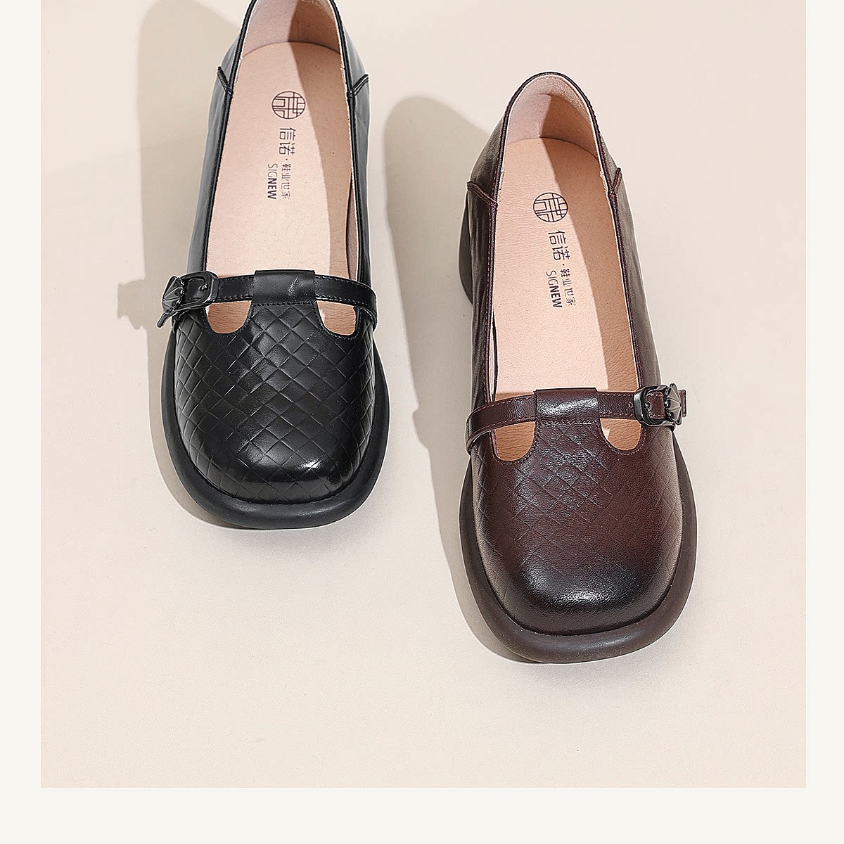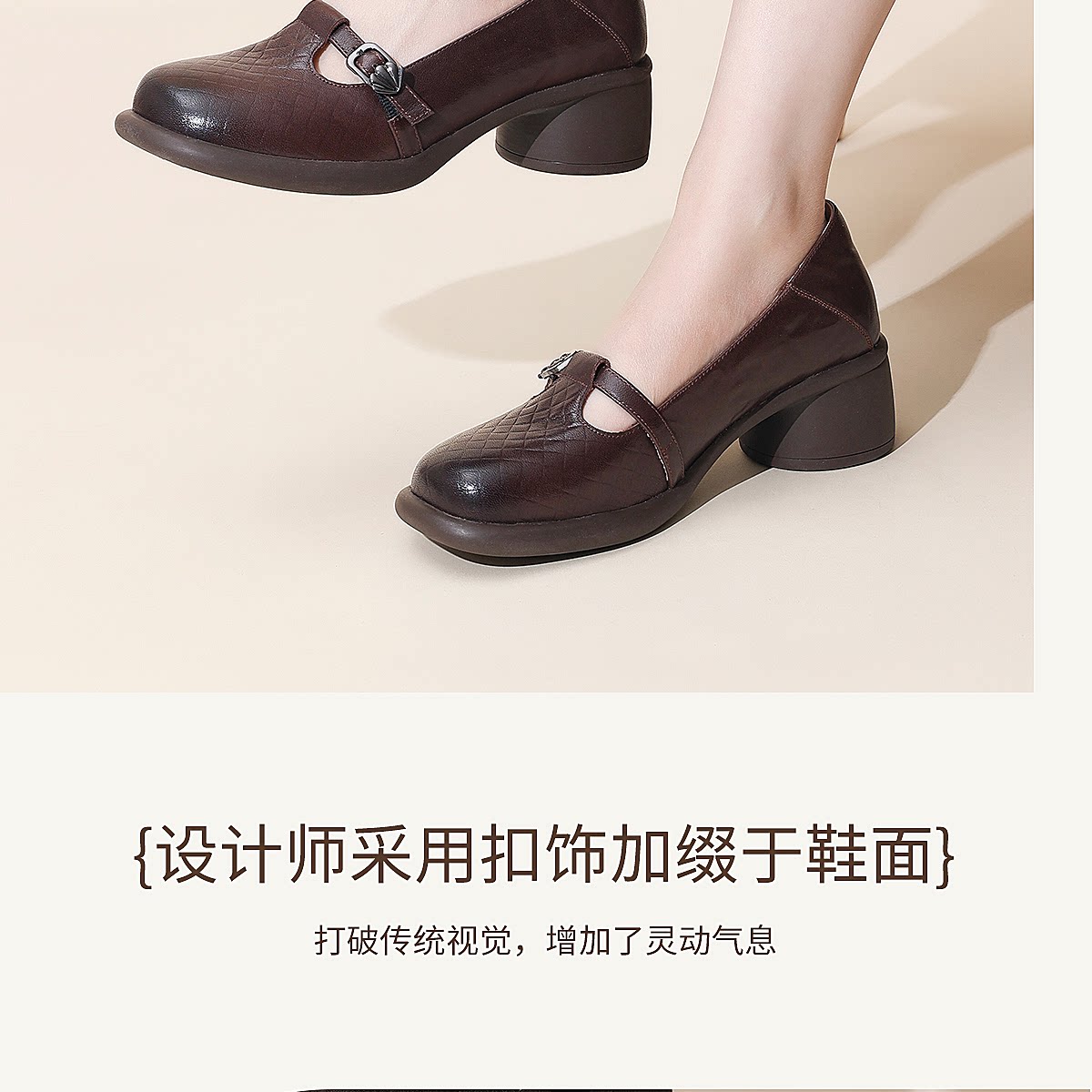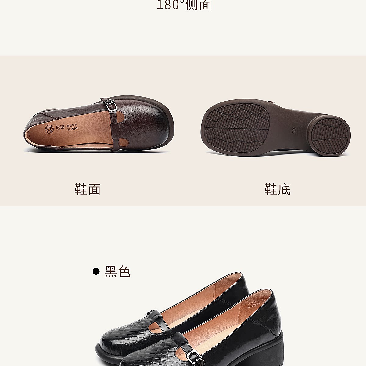 复古风真皮圆头浅口单鞋女低跟软底舒适妈妈鞋乐福鞋6C5255-3
