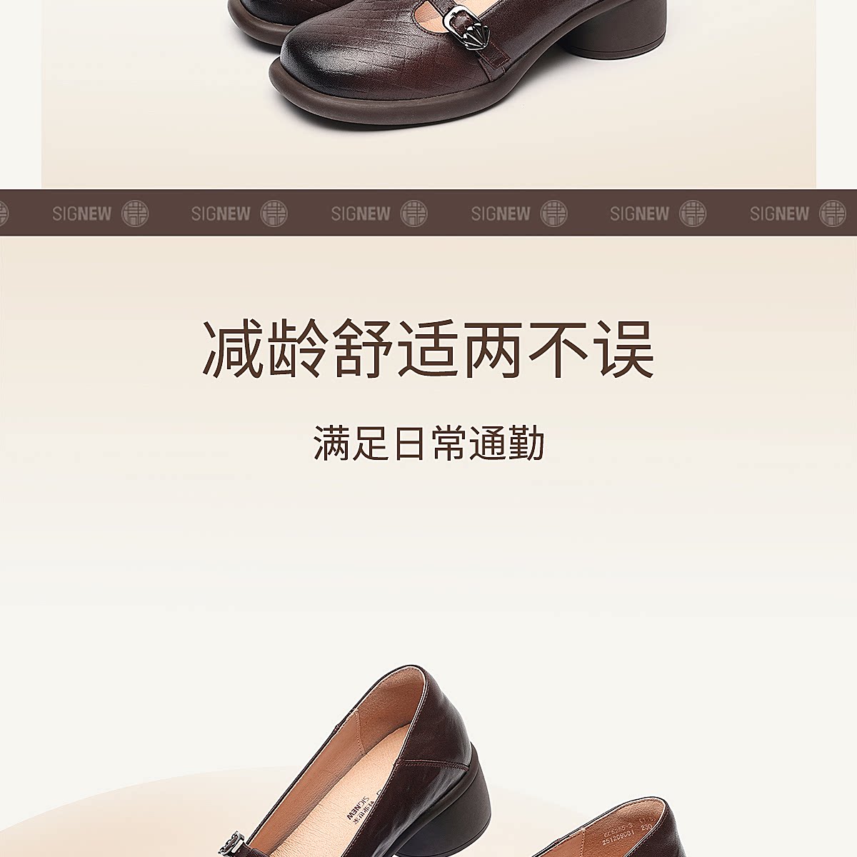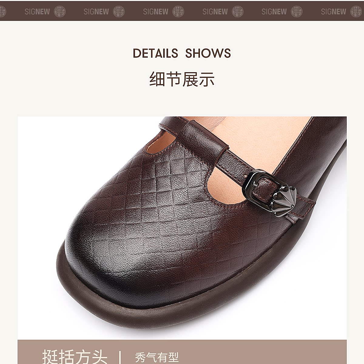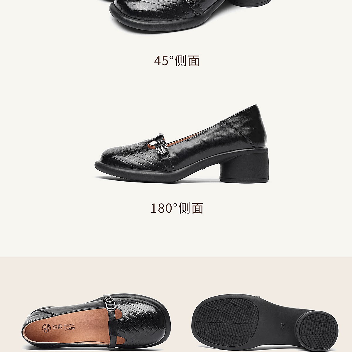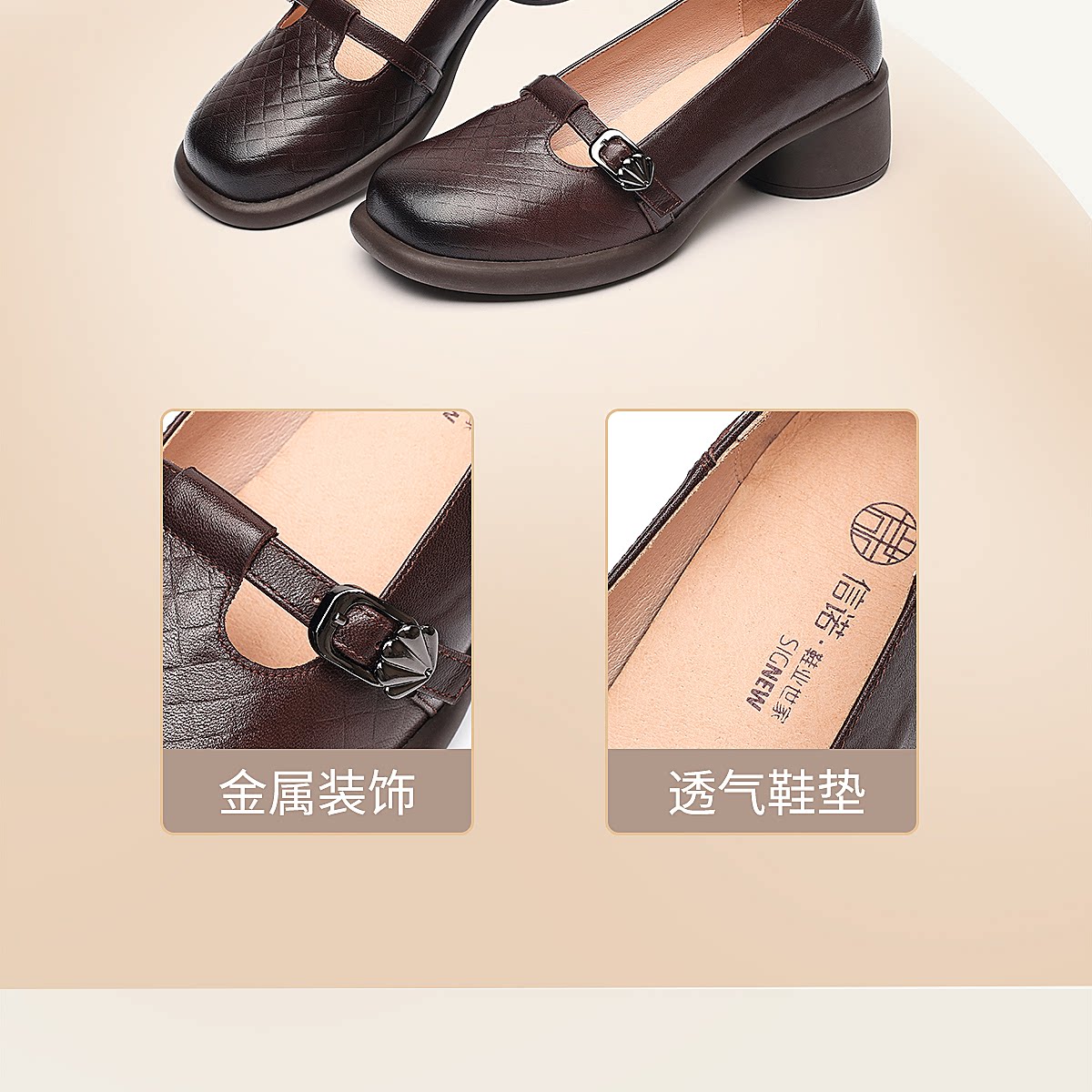 复古风真皮圆头浅口单鞋女低跟软底舒适妈妈鞋乐福鞋6C5255-3