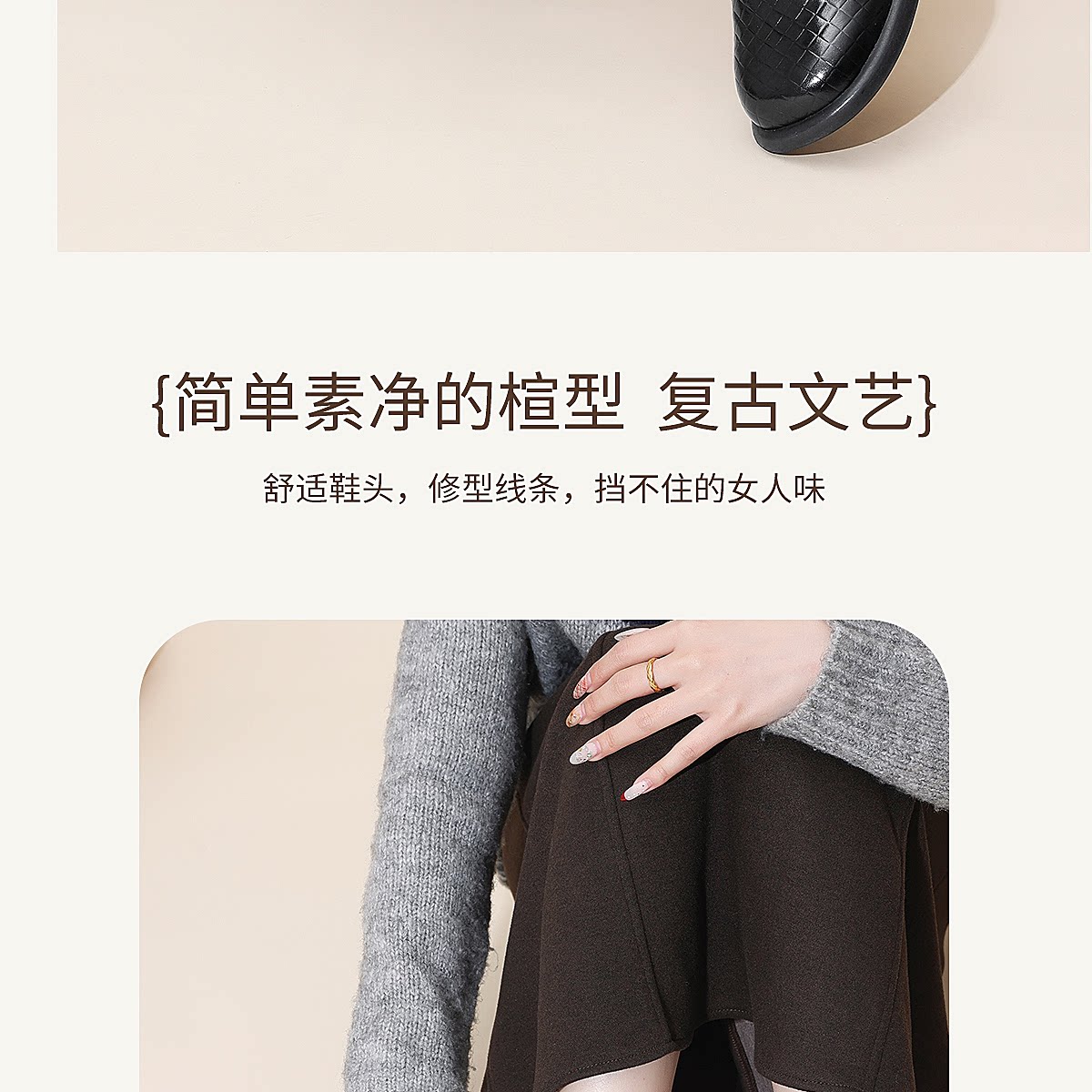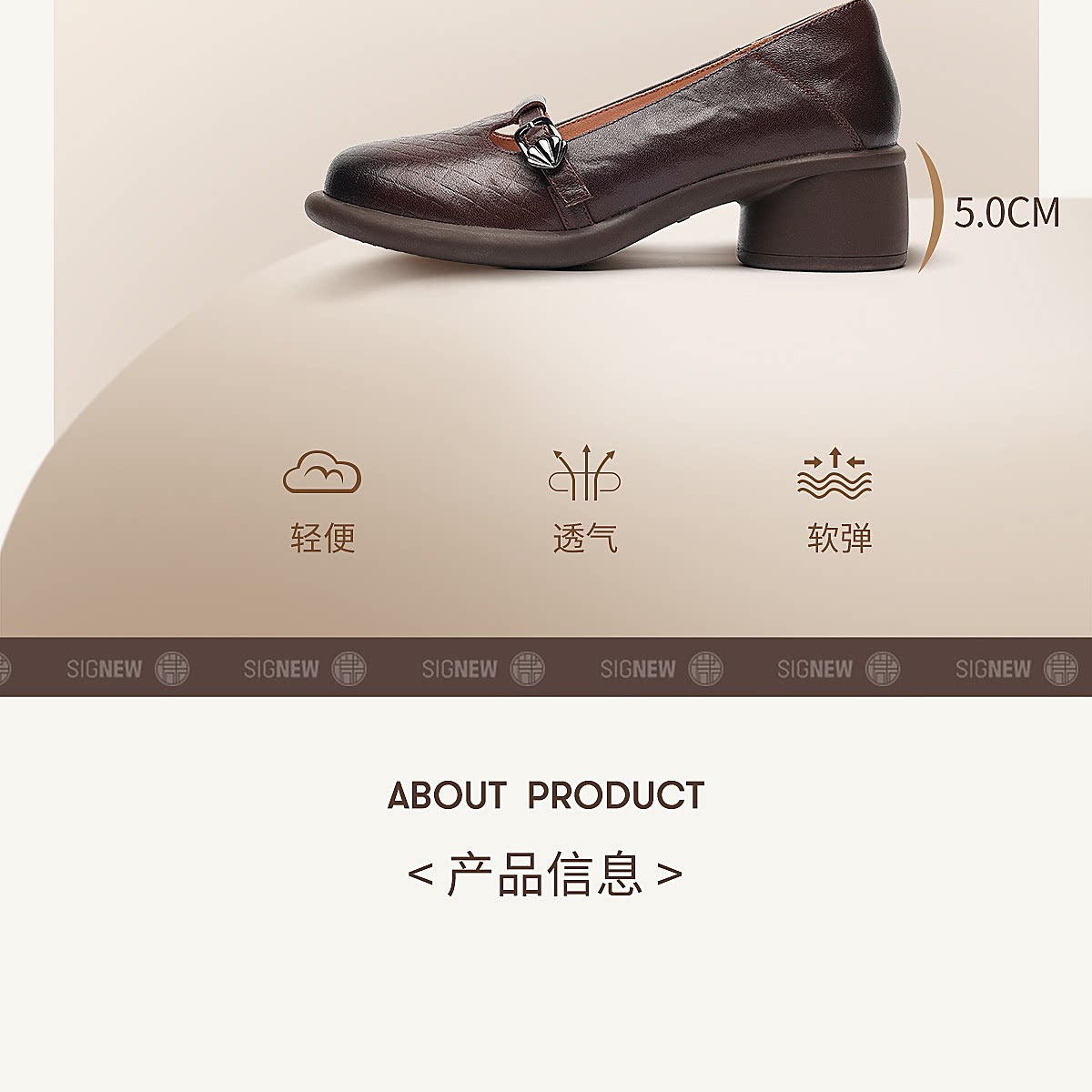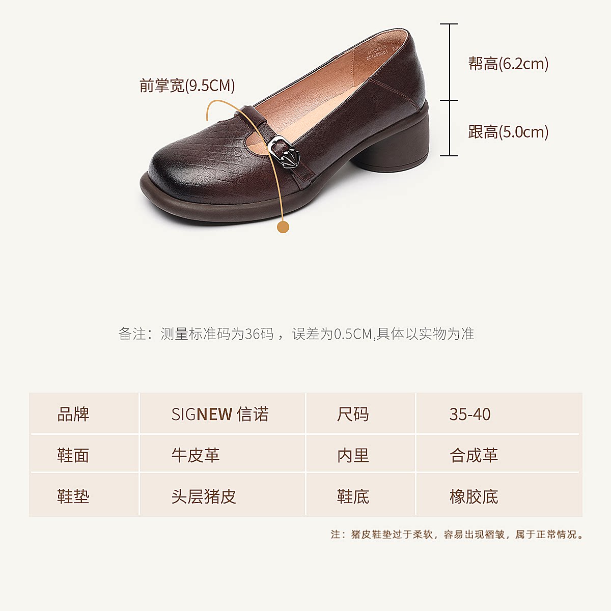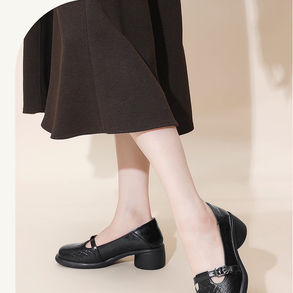 复古风真皮圆头浅口单鞋女低跟软底舒适妈妈鞋乐福鞋6C5255-3