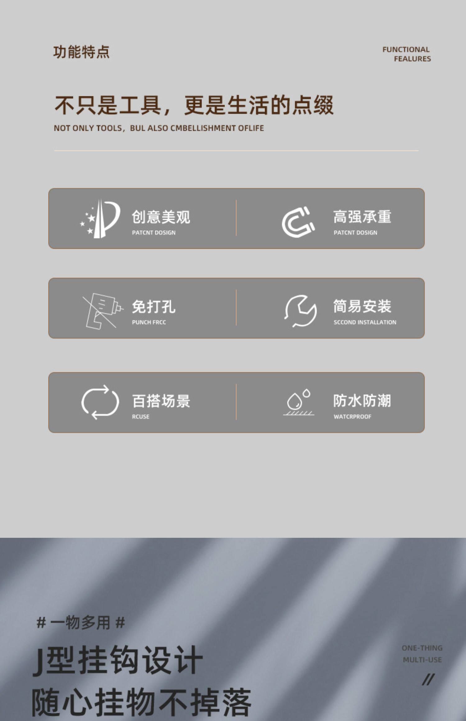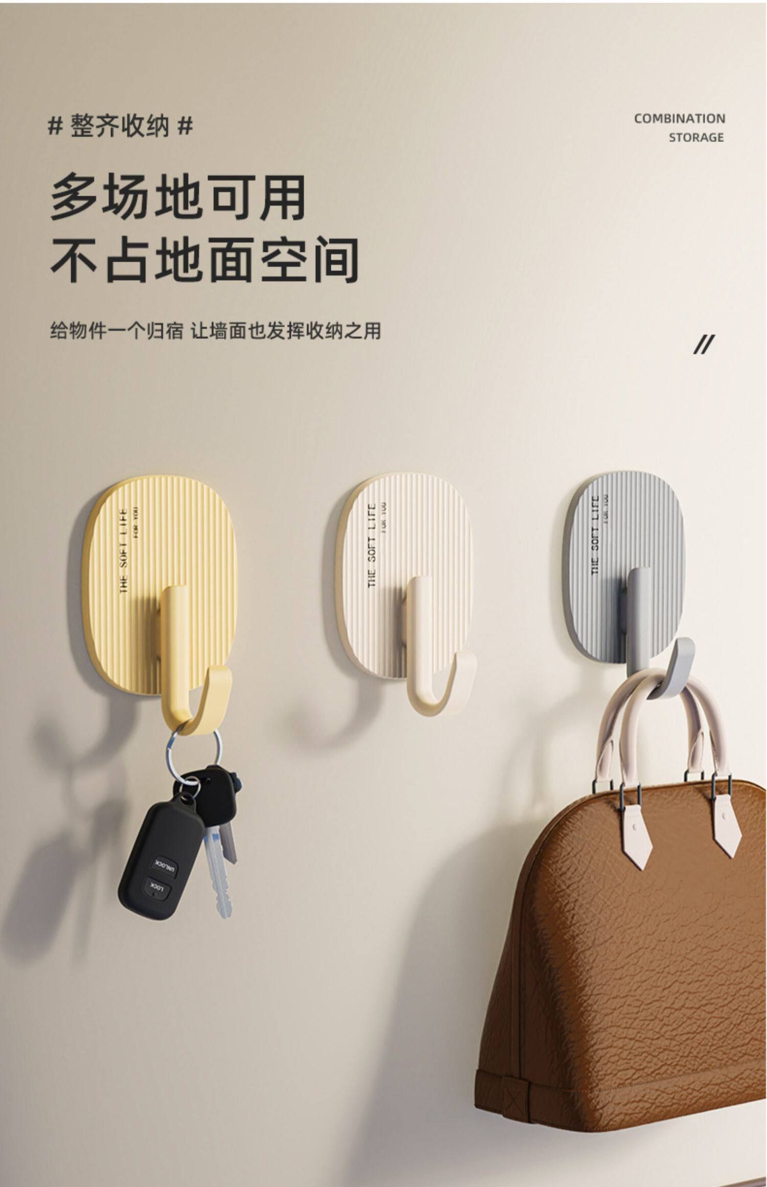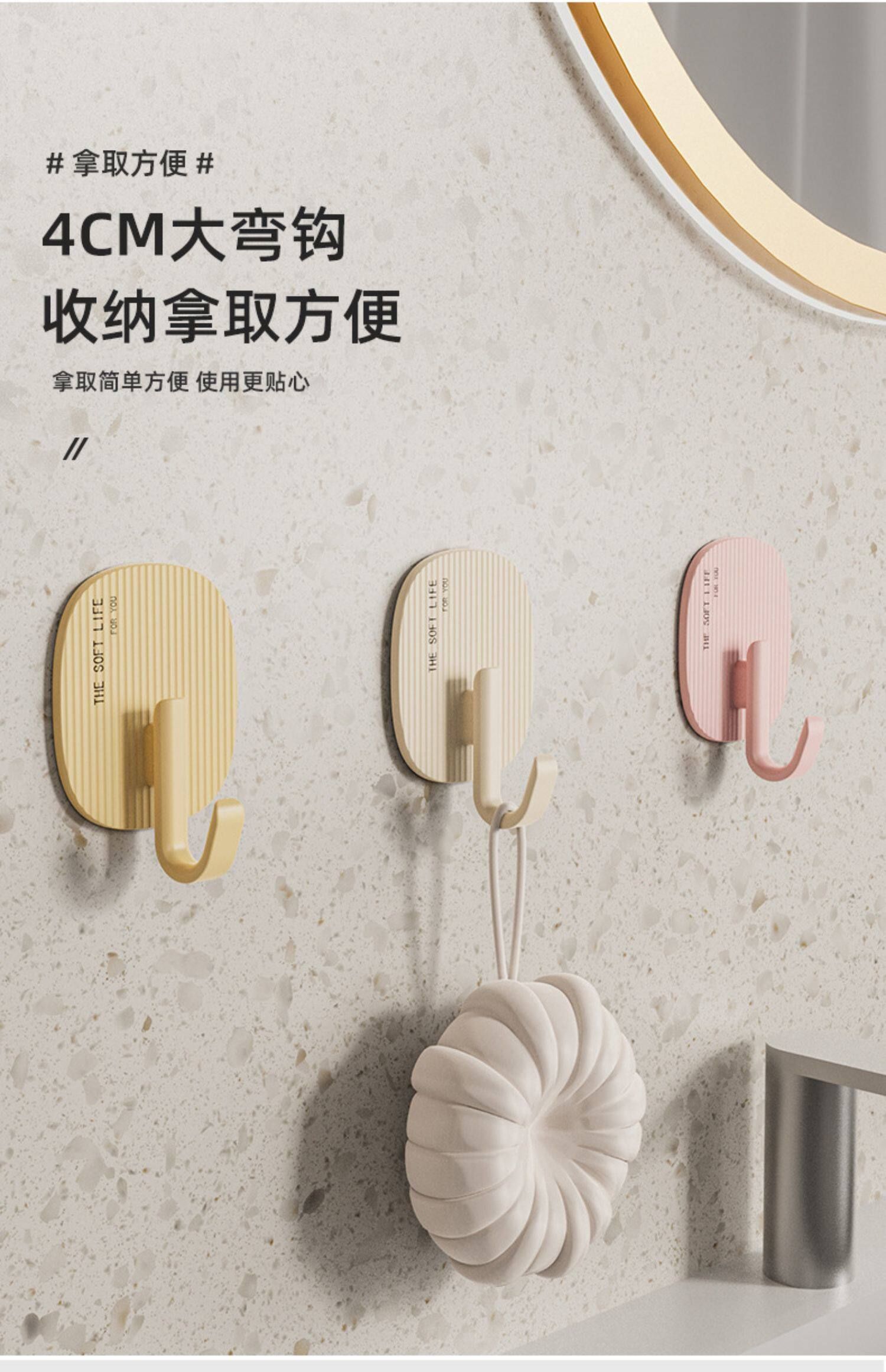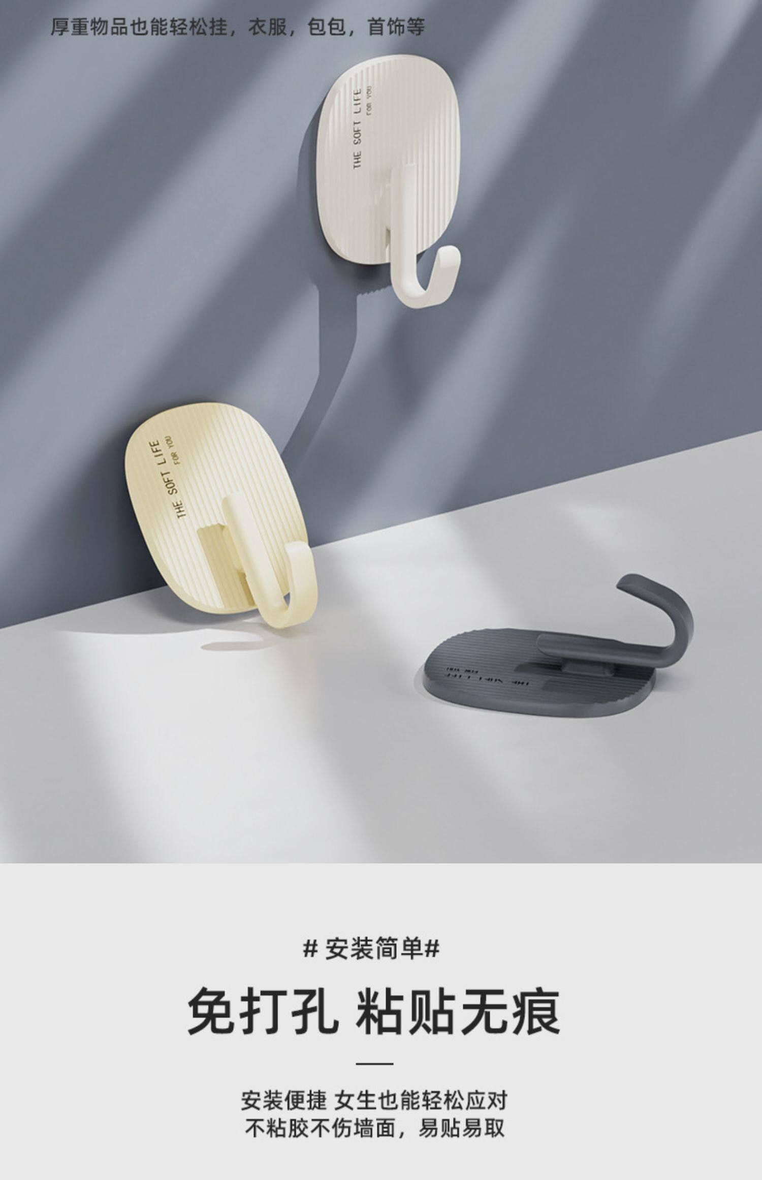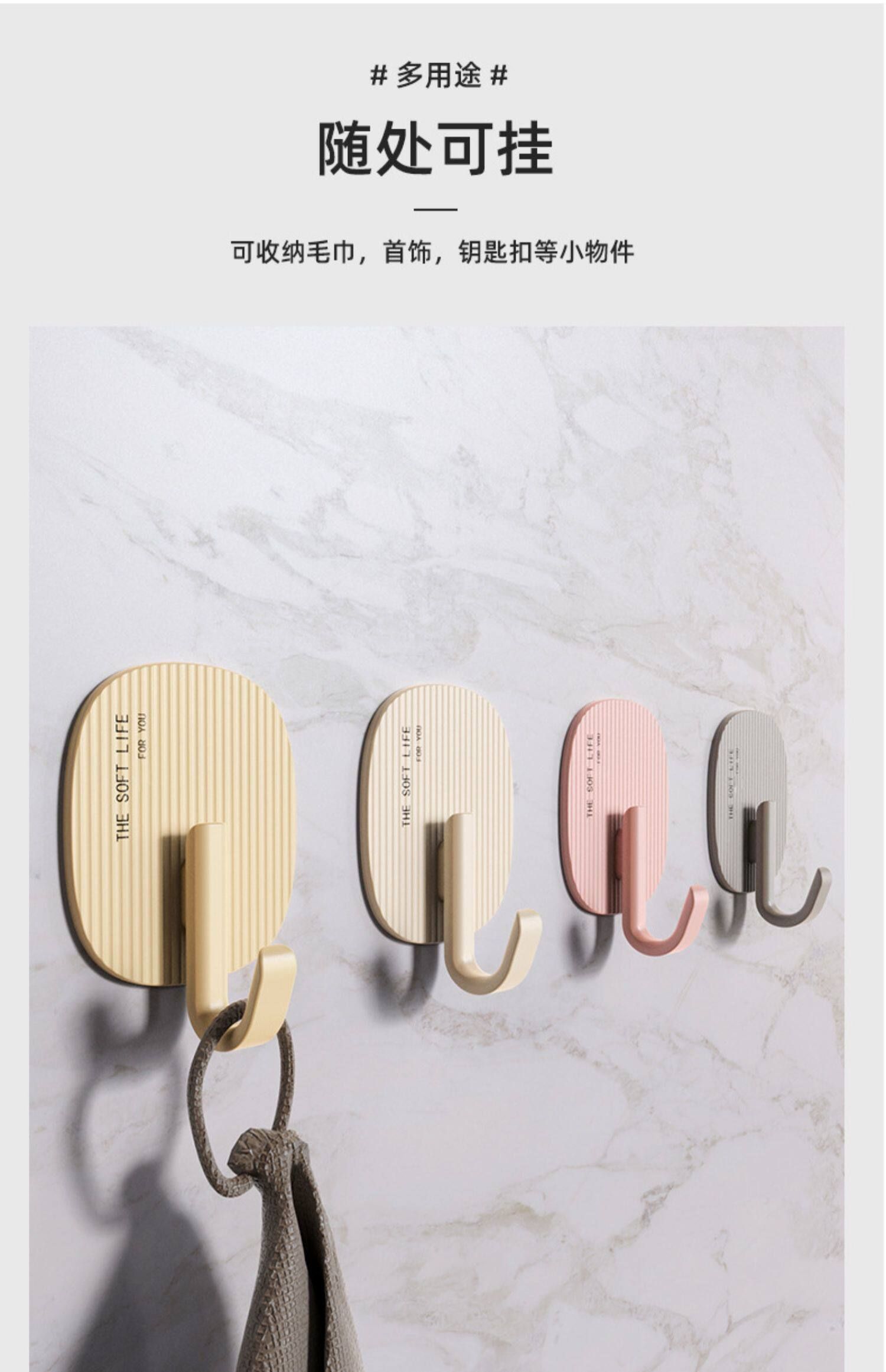 挂钩卫生间奶油色自强力挂钩承重无痕毛巾粘钩免打孔粘厨房衣帽