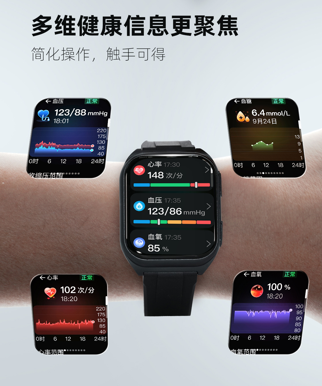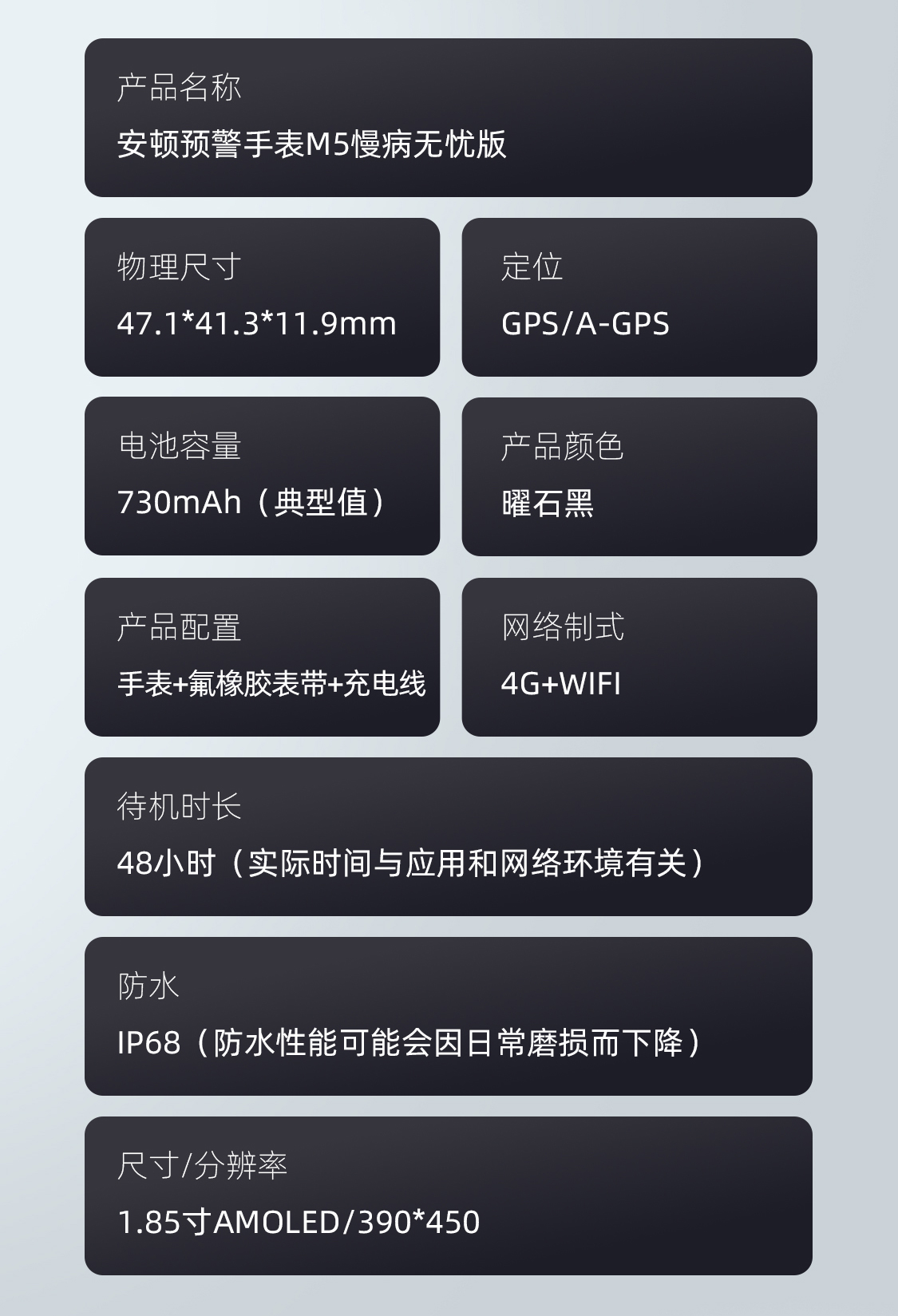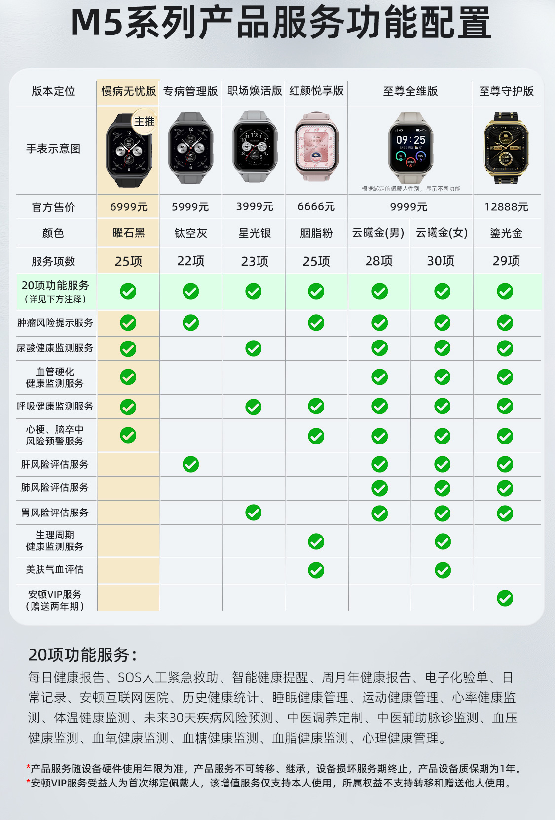安顿健康预警手表M5系列 无创血压血脂尿酸血氧趋势监测心率器官睡眠质量智能手环监测