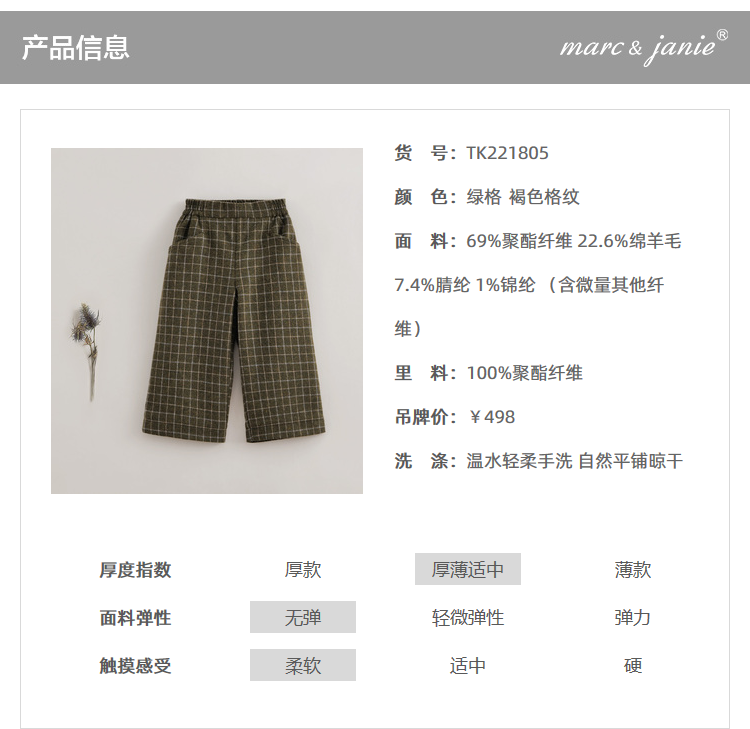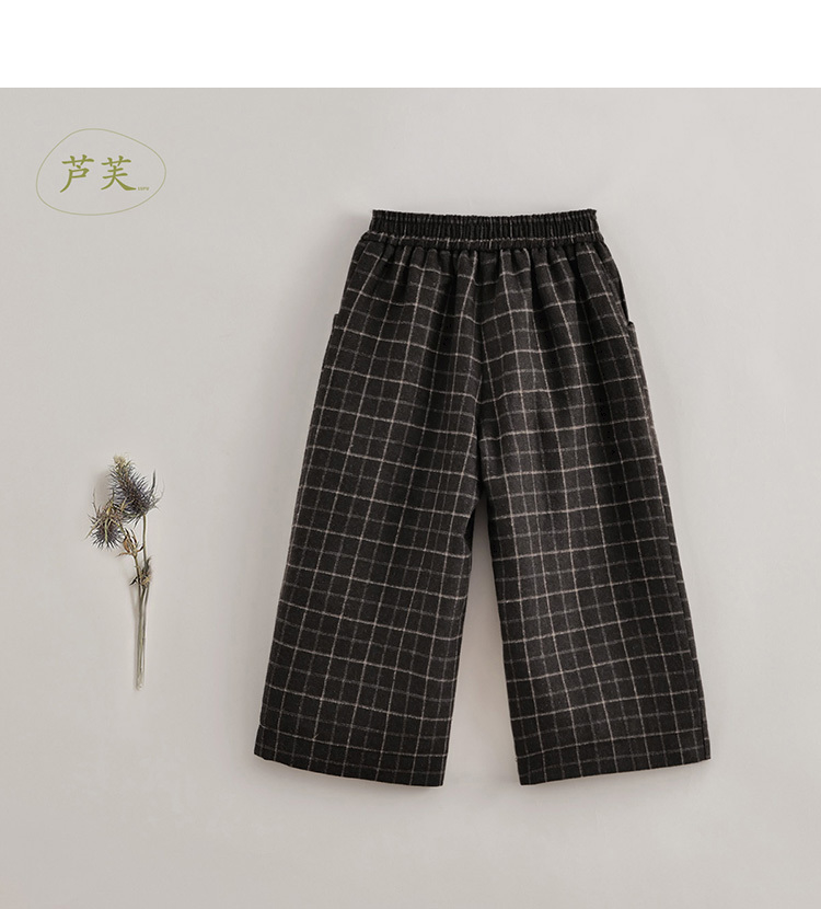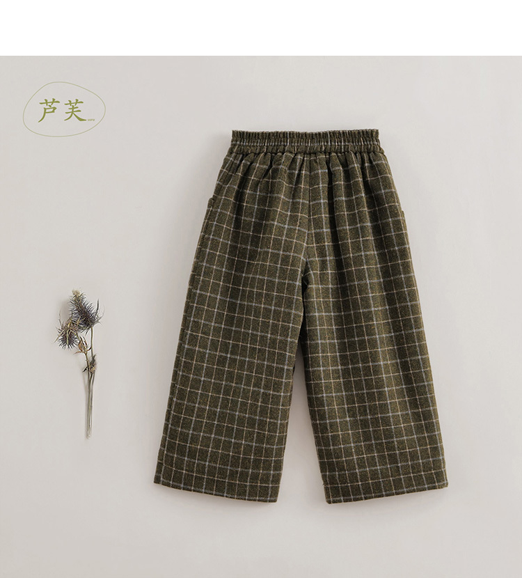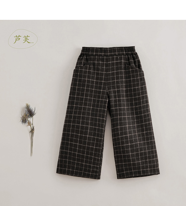 【马克珍妮 芦芙】秋装新款 女童羊毛呢子格纹阔腿裤221805
