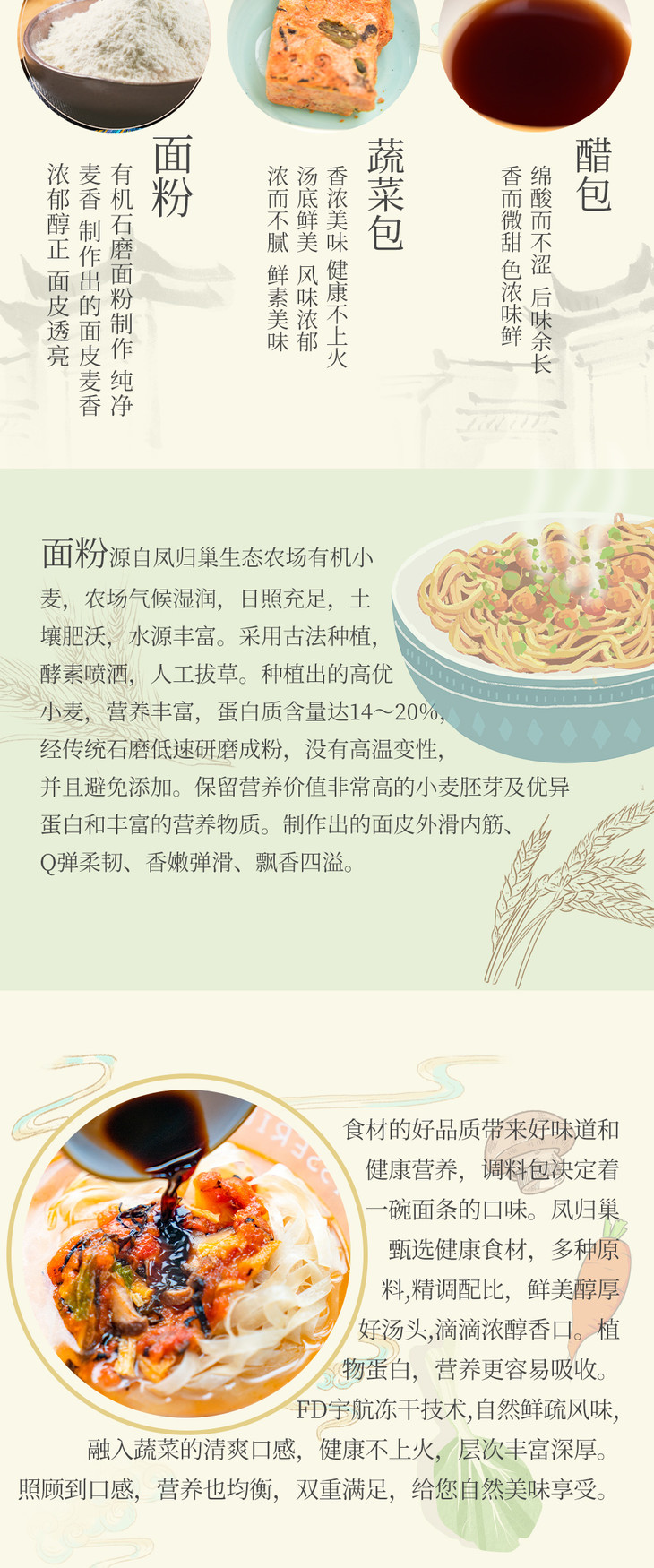 料包采用FD宇航冻干技术,自然鲜蔬风味,融入蔬菜的清爽口感,健康不上火。5分钟冲泡速食,非油炸更健康,入口自然麦香,Q弹爽滑,劲道实足。