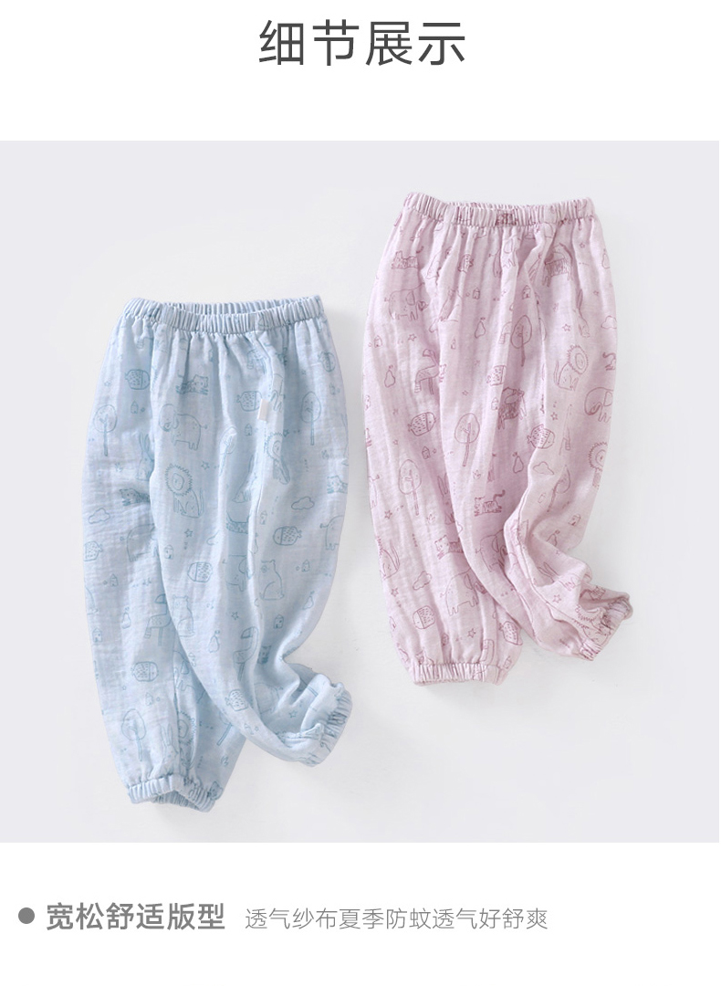 龙之涵 水洗纱布印花防蚊裤 六色可选 柔软舒适 凉爽透气 婴幼儿A类标准