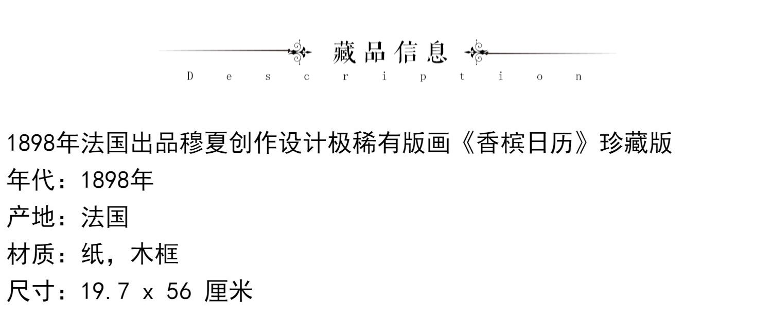 独角鹿西洋古董法国出品穆夏创作设计稀有版画《香槟日历》珍藏版