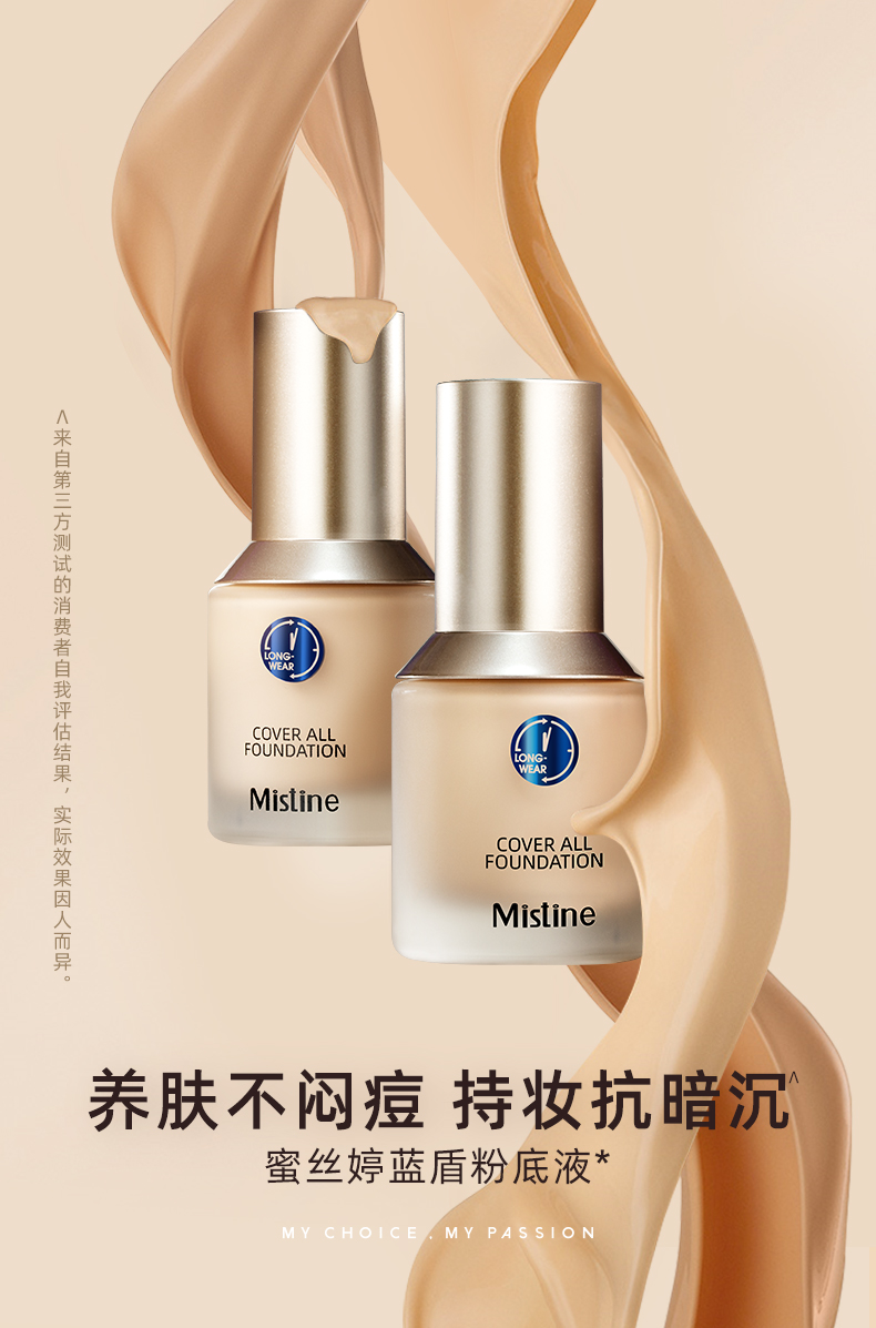 Mistine(蜜丝婷)蓝盾粉底液干油皮遮瑕持久保湿控油定妆粉底液 LF100-瓷白中调