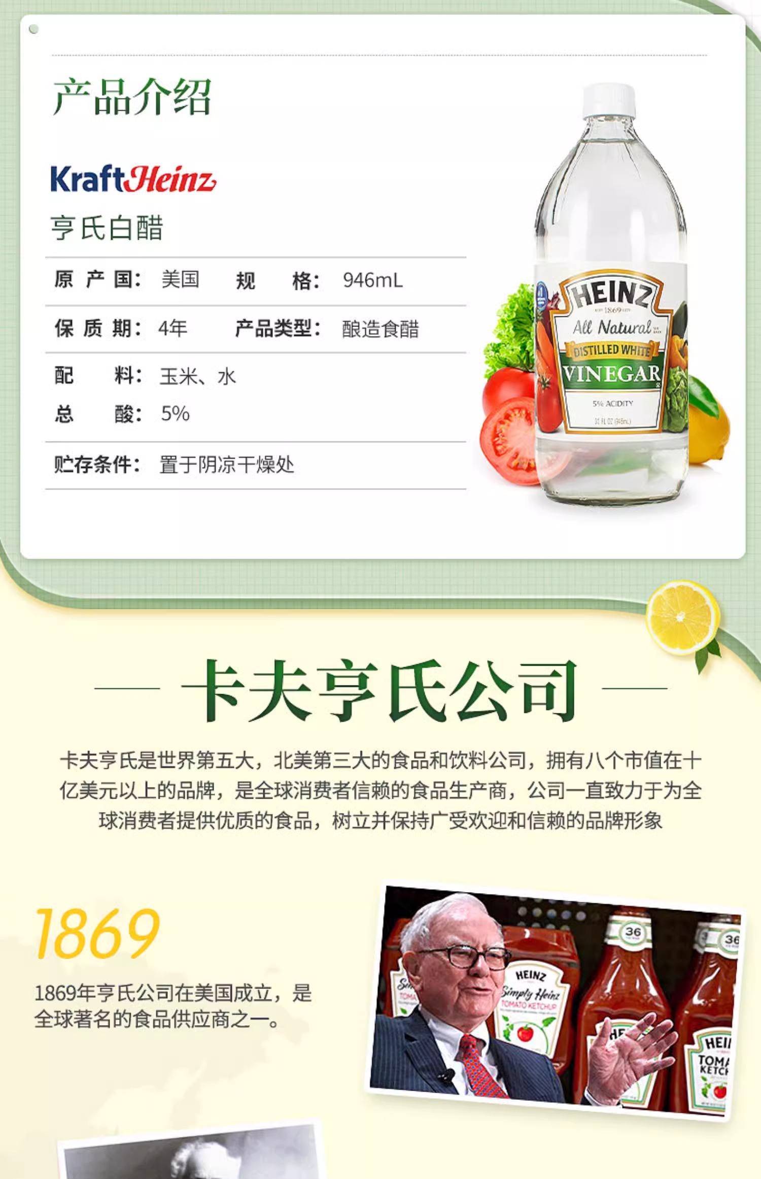 【中欧班列精选】美国进口Heinz亨氏白醋946ml