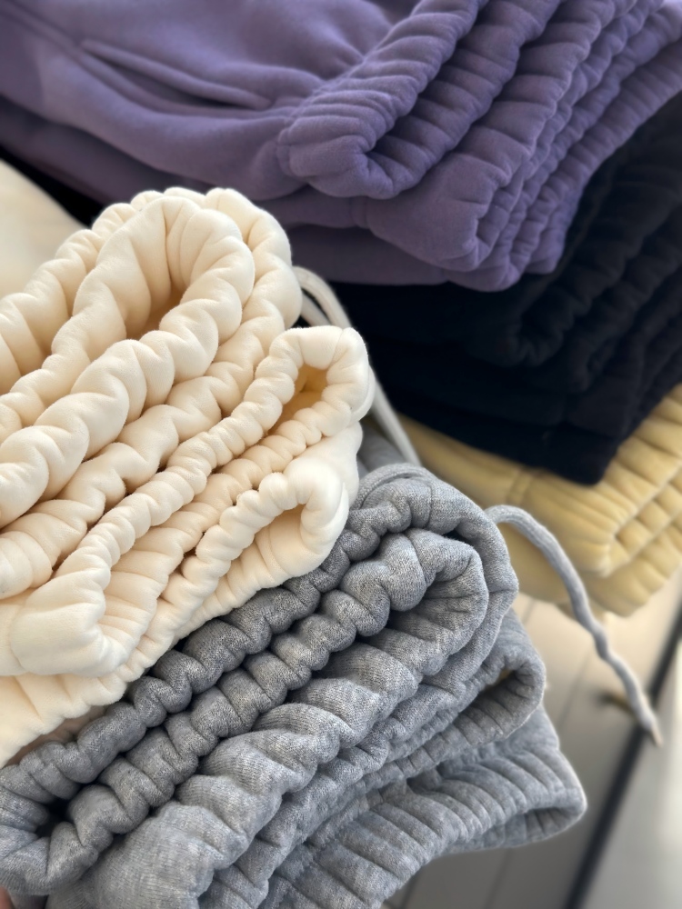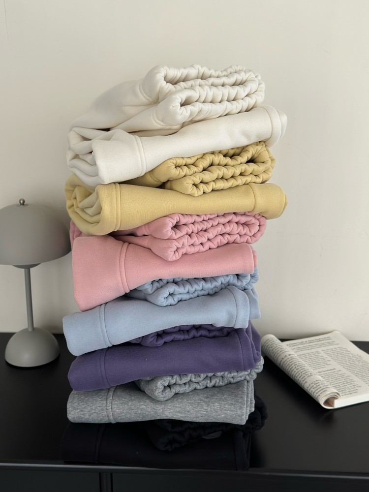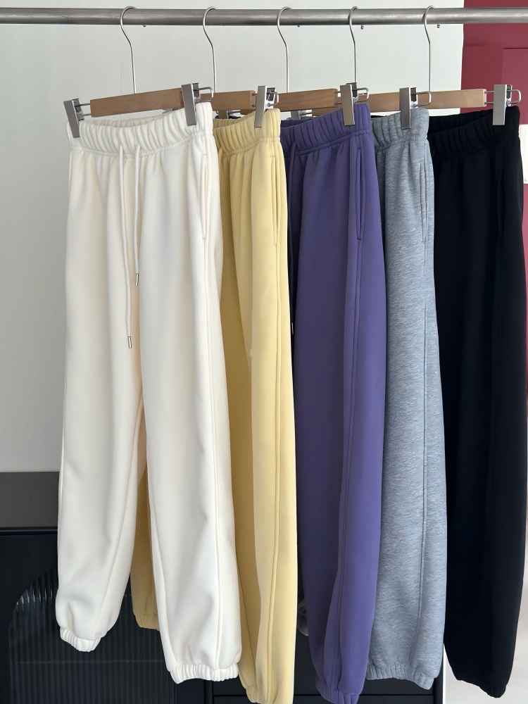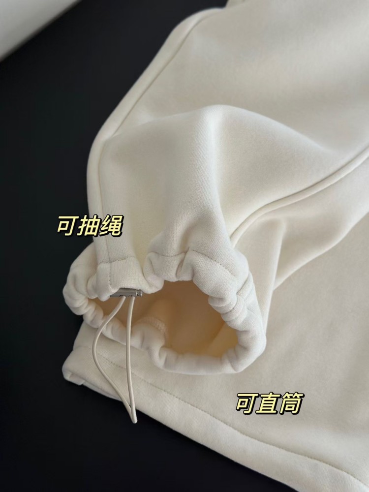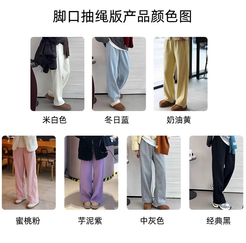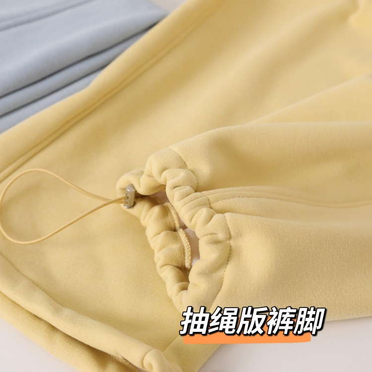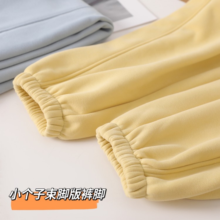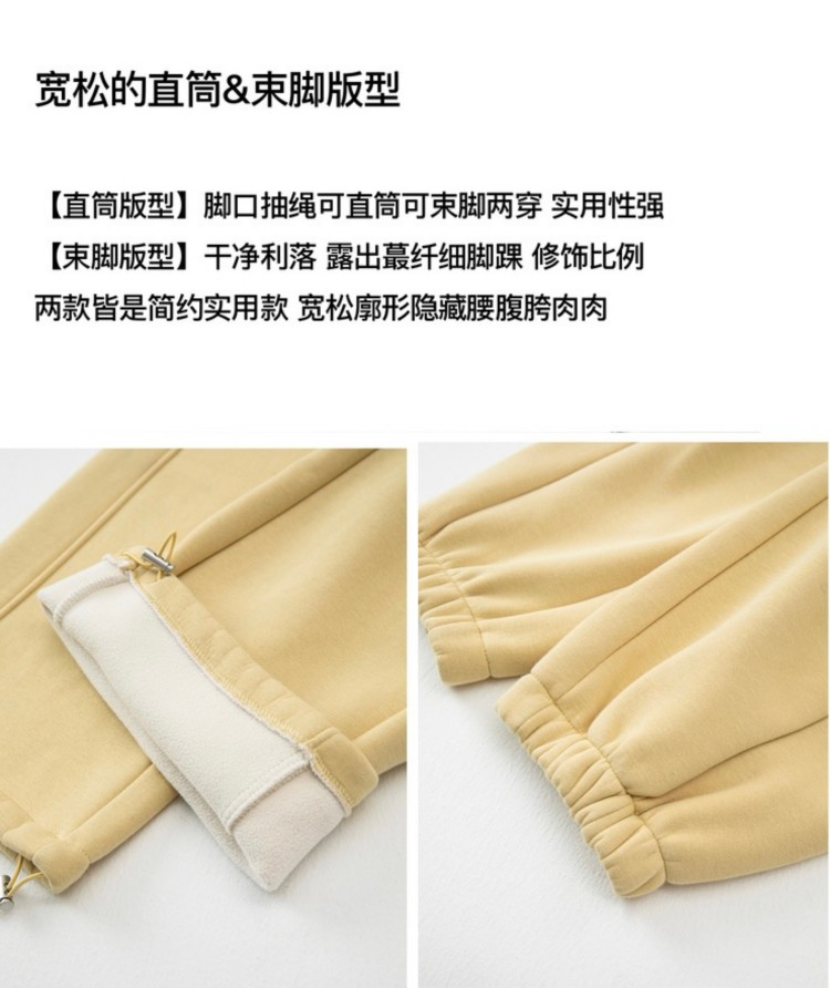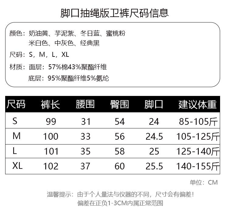【脚口抽绳版颜色】:奶油黄、蜜桃粉、冬日蓝、芋泥紫、米白色、中灰色、经典黑